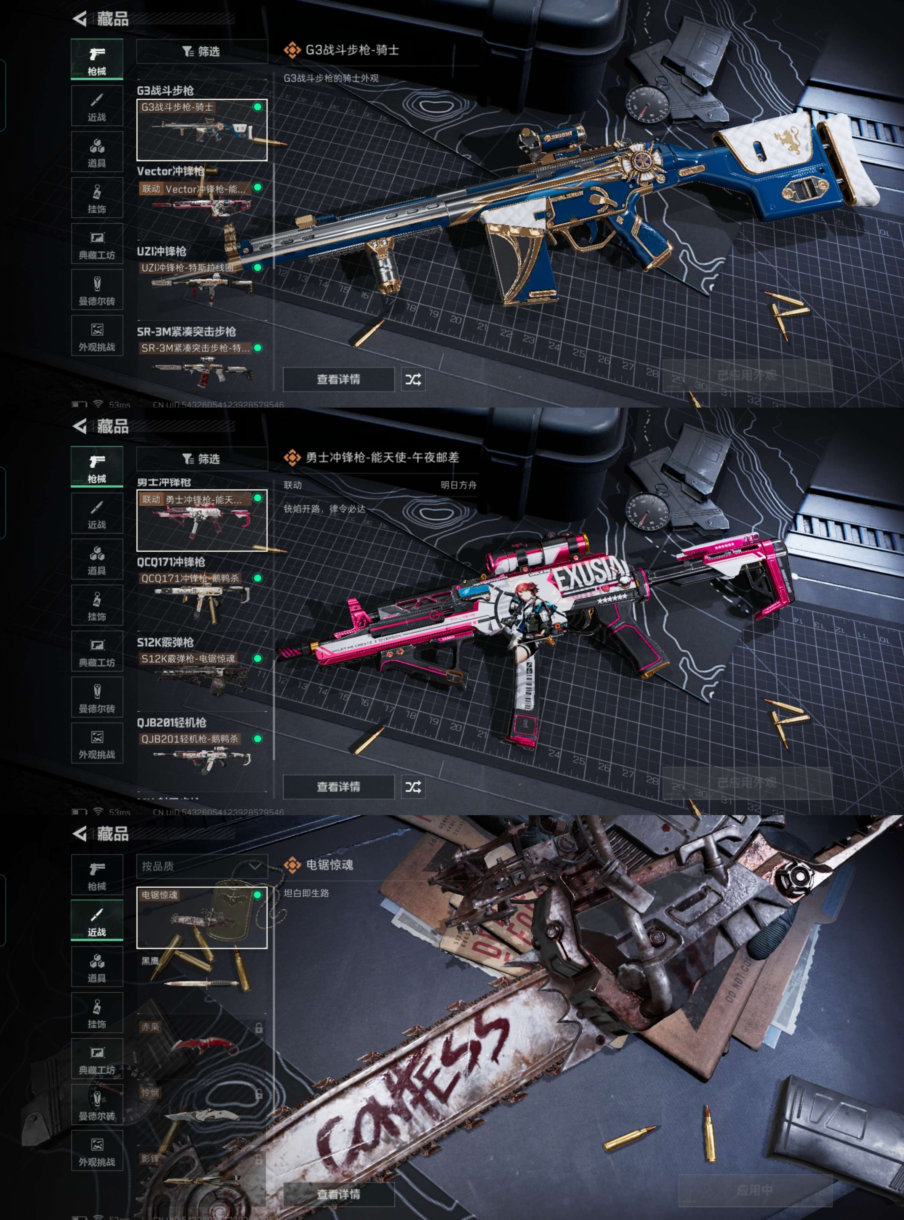 ZMSJ647【满级号 仓库价值127.4M 哈夫币56.150K刀皮电锯惊魂】 三端互通Q-烽火地带等级60-烽火地带段位:青铜 【刀皮】 电锯惊魂 【枪皮】 M4A1突击步枪-阿米娅 ASh-12突击步枪-鹅鸭杀 AK-12突击步枪-特斯拉线圈 SCAR-H战斗步枪-启航 G3战斗步枪-骑士 Vector冲锋枪-能天使-午夜邮差 UZI冲锋枪-特斯拉线圈 SR-3M紧凑突击步枪-特斯拉线圈 勇士冲锋枪-能天使-午夜邮差 QCQ171冲锋枪-鹅鸭杀 S12K霰弹枪-电锯精华 QJB201轻机枪