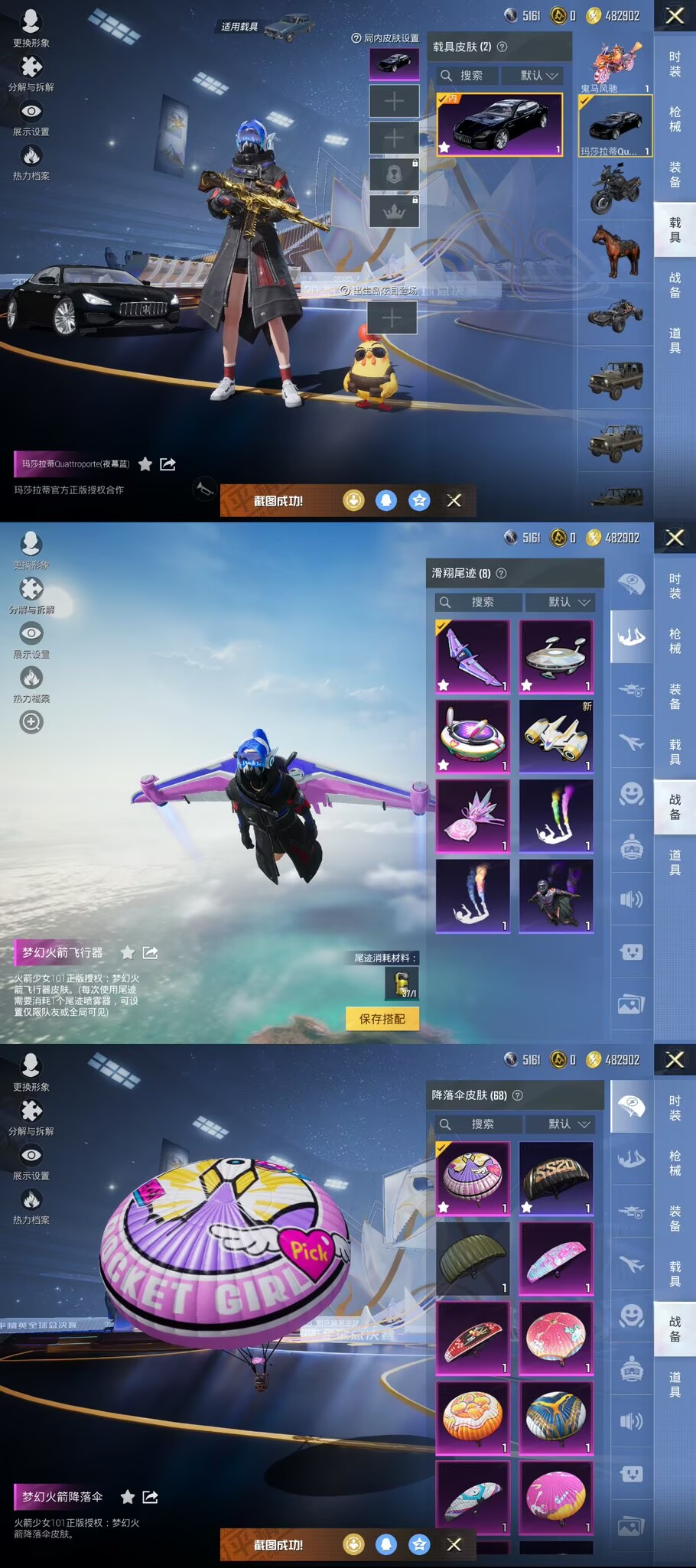 【身法号2载具3粉装4特效 梦幻火箭 奇异狩猎者 蓝螳螂 7级五爪金龙】苹果Q-1稀有2载具3粉装4特效枪11热门137套装196枪皮 65103热力值 12印记 历史超级王牌14星 【1稀有】 奇异狩猎者 【2载具】 玛莎拉蒂Q蓝色 鬼马风驰 【3粉装】 梦幻火箭 飒粉甜心 复仇流浪者 【4特效枪】 M416-五爪金龙 (7级) AKM-绿萝繁花 (5级) Kar98K-巳巳如意 (4级) SV