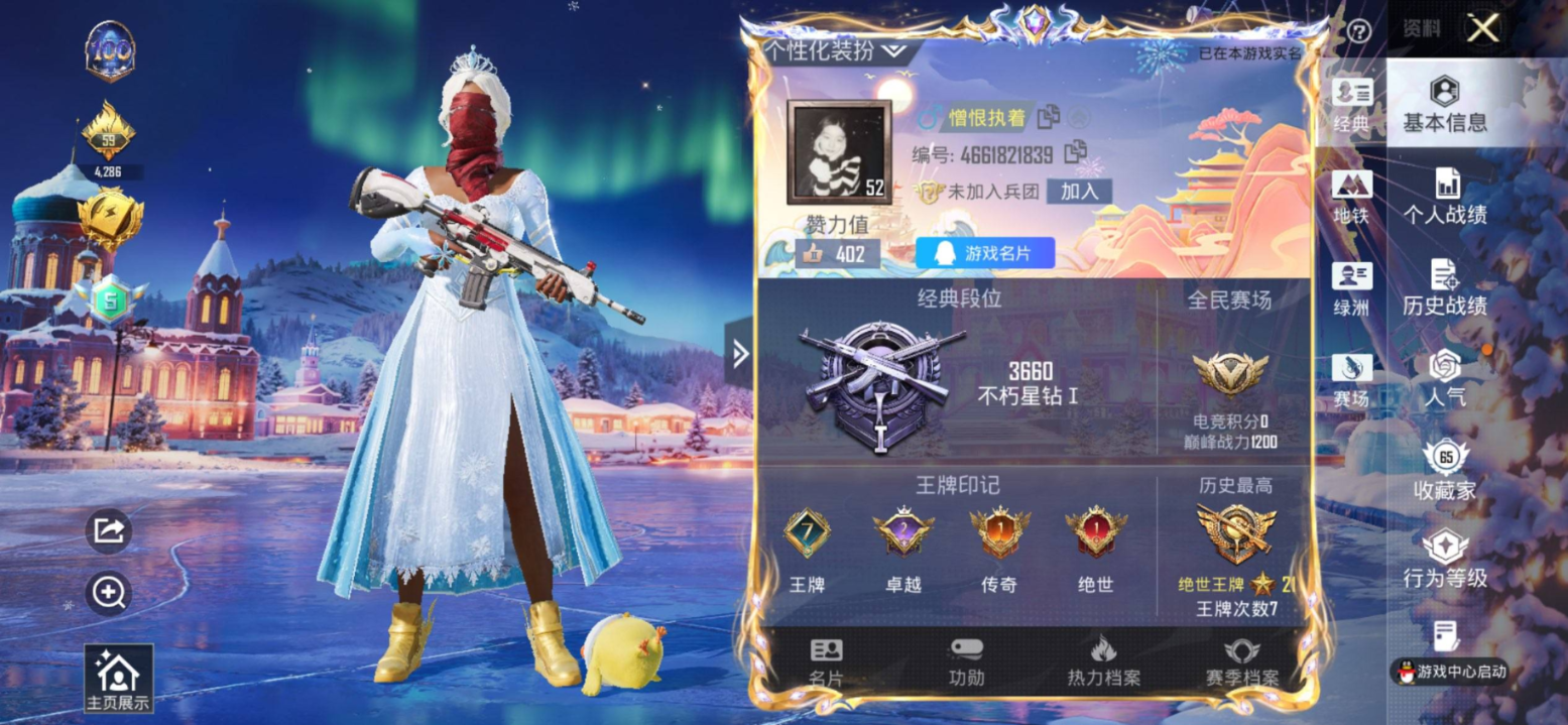 0载具-130套装-192枪皮-苹果手Q-男神号-星际M4-冰雪全套-小熊背包-红眼罩-NV战队服-AG战队服-三个男神口罩都有-恶魔上衣-小金鞋-都市猎人-7王牌印记-6粉装-12特效枪-57206热力值-130套装-192枪皮-2卓越印记-1传奇印记