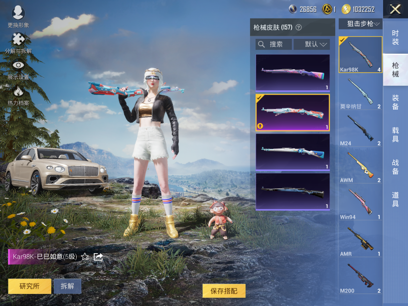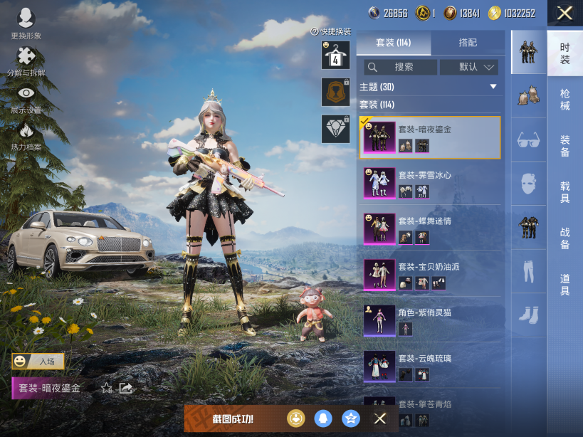 【1载具5粉装3特效】苹果Q-4稀有1载具5粉装3特效枪9热门114套装157枪皮 49736热力值 11印记 历史超级王牌12星 【4稀有】 AKM-缤纷海域 浪漫天命 派对舞王 派对舞王(金靴子) 【1载具】 宾利添越(浅瞪羚棕) 【5粉装】 蝶舞迷情 宝贝奶油派 未来歌姬 暗夜鎏金 霁雪冰心 【3特效枪】 Kar98K-巳巳如意 (5级) DP-28-豹影疾电 (5级) M417-第五大道