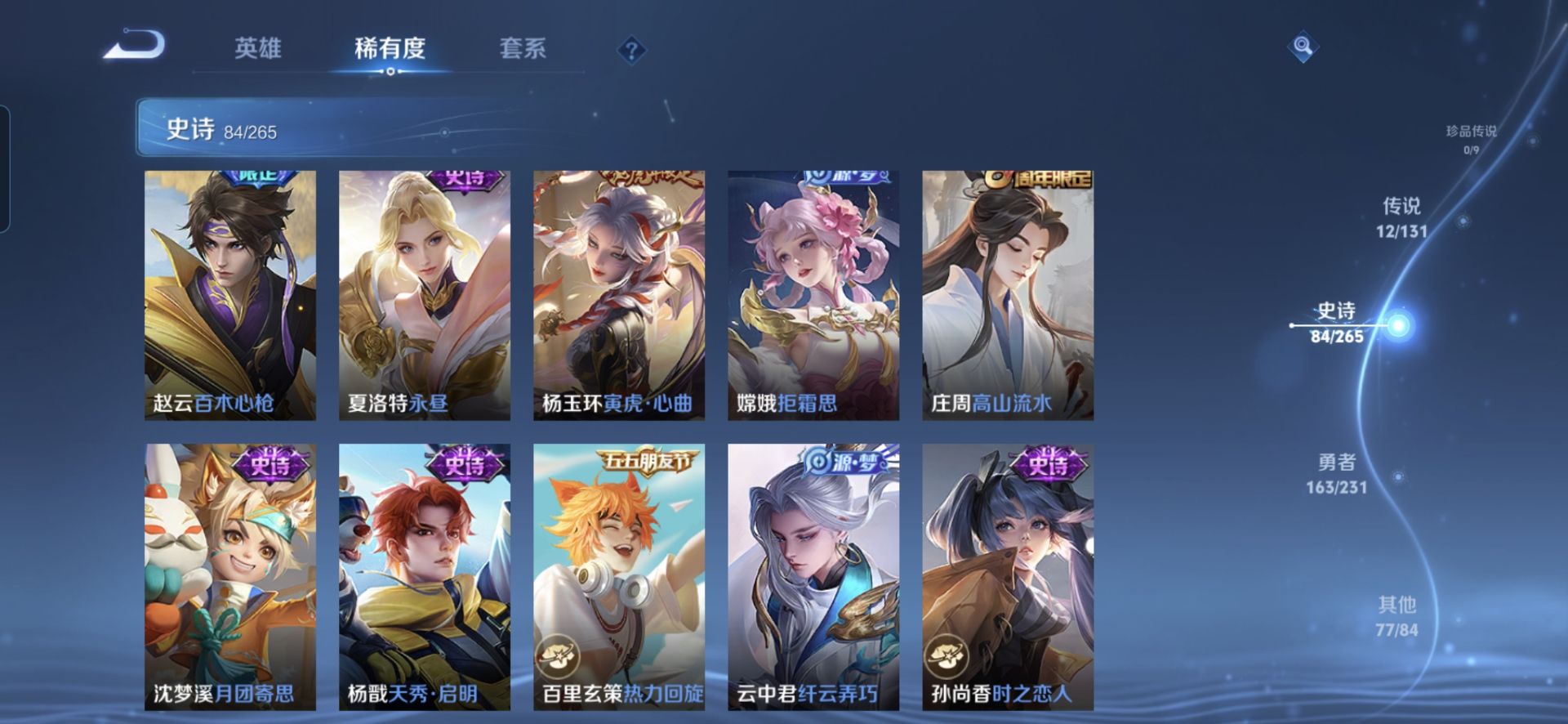 【史诗皮肤】 蔬乡物语 蔬乡物语 破空之剑 撼地雄心 战舞者 百相守梦 青龙志 布丁狗之约 谧流熔炉 电玩小子 涂山容容 至尊宝 鸭鸭历险记 龙之律动 戍鼓铭心 陌上桑 寅虎·心曲 遇见神鹿 谪仙醉月 百相守梦 踏浪烽翎 夏日便利