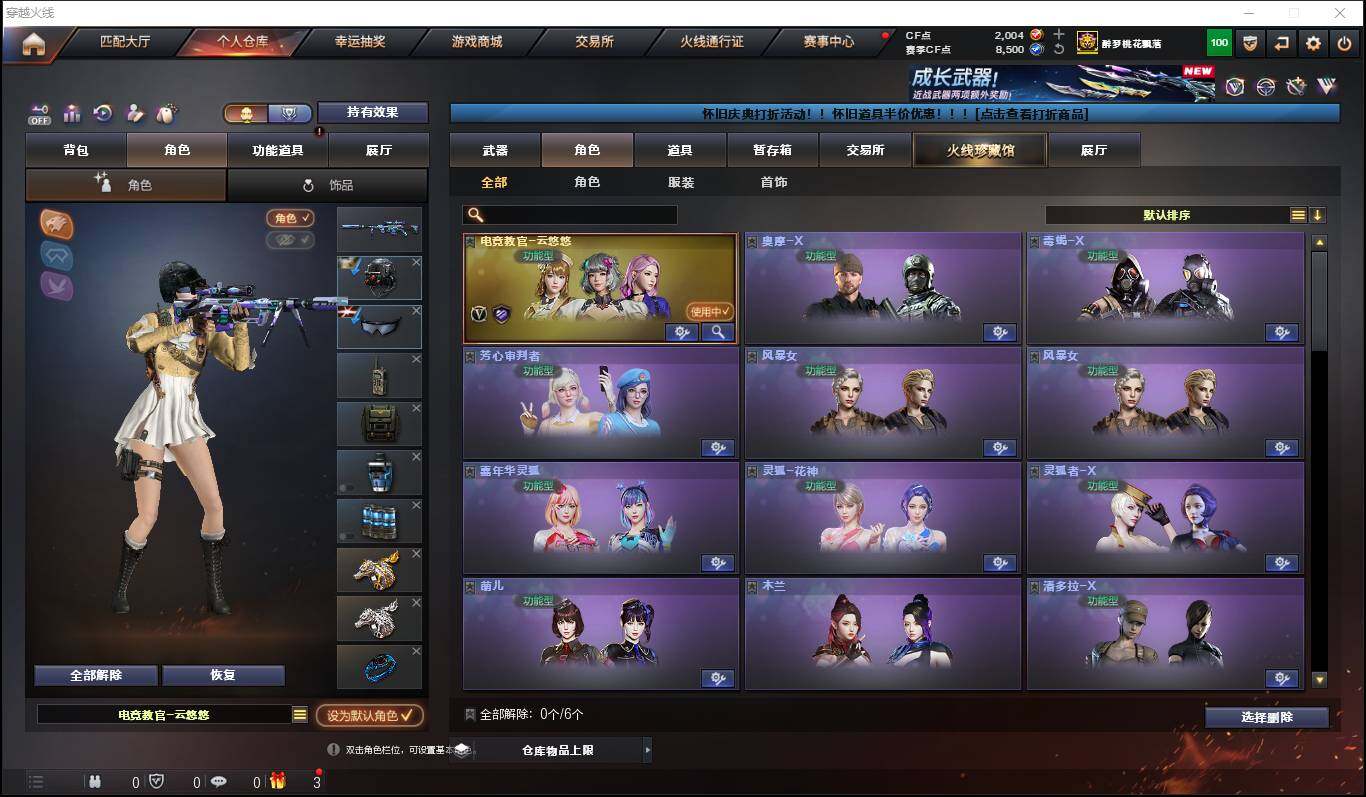 【角色】:电竞教官-云悠悠,芳心审判者,风暴女*2,嘉年华灵狐,灵狐-花神,灵狐者-X,萌儿,潘多拉-