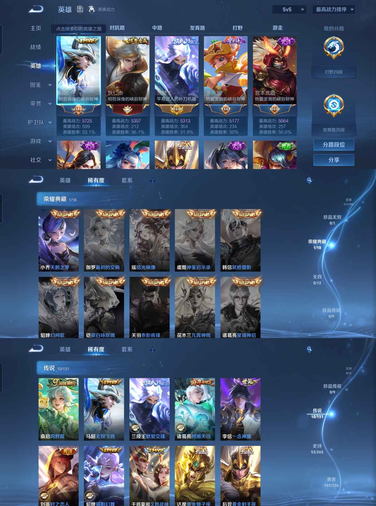 211皮肤V7 1典藏 10传说 金标兰陵王5313战力