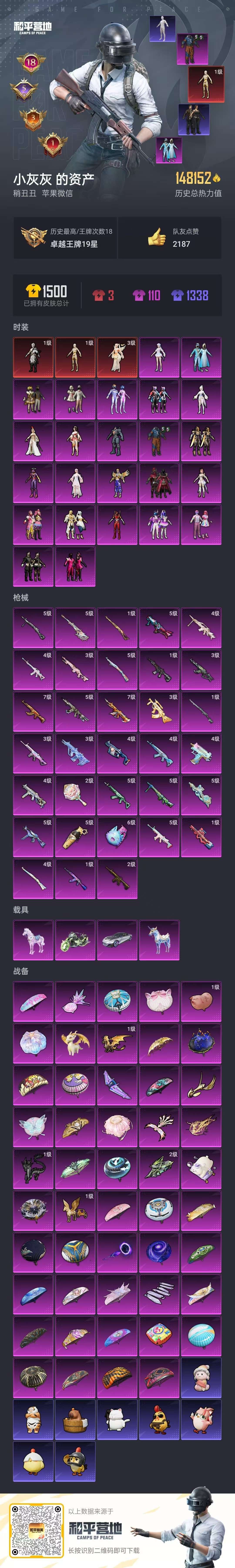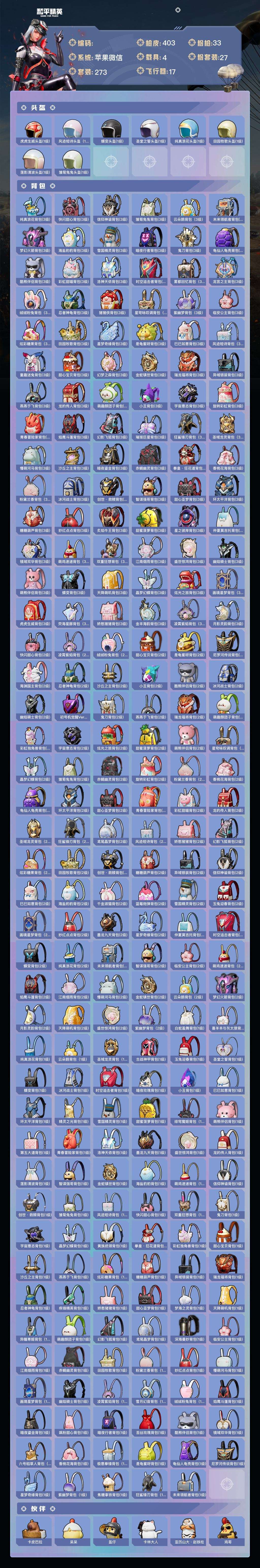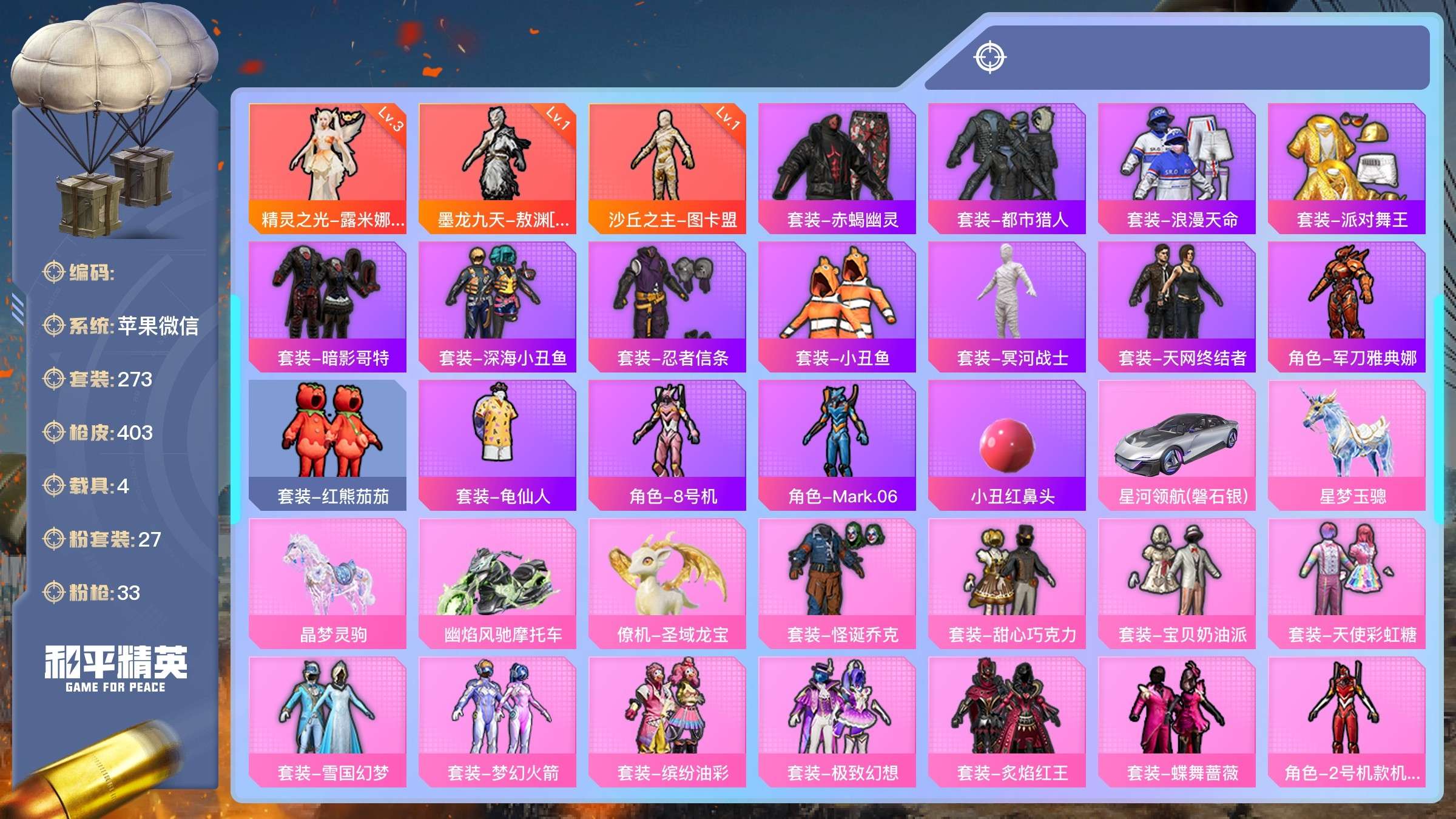 a4216/苹果v/极品身法套装号/热力值:148152,3神装,24粉装,33粉枪,4载具,49