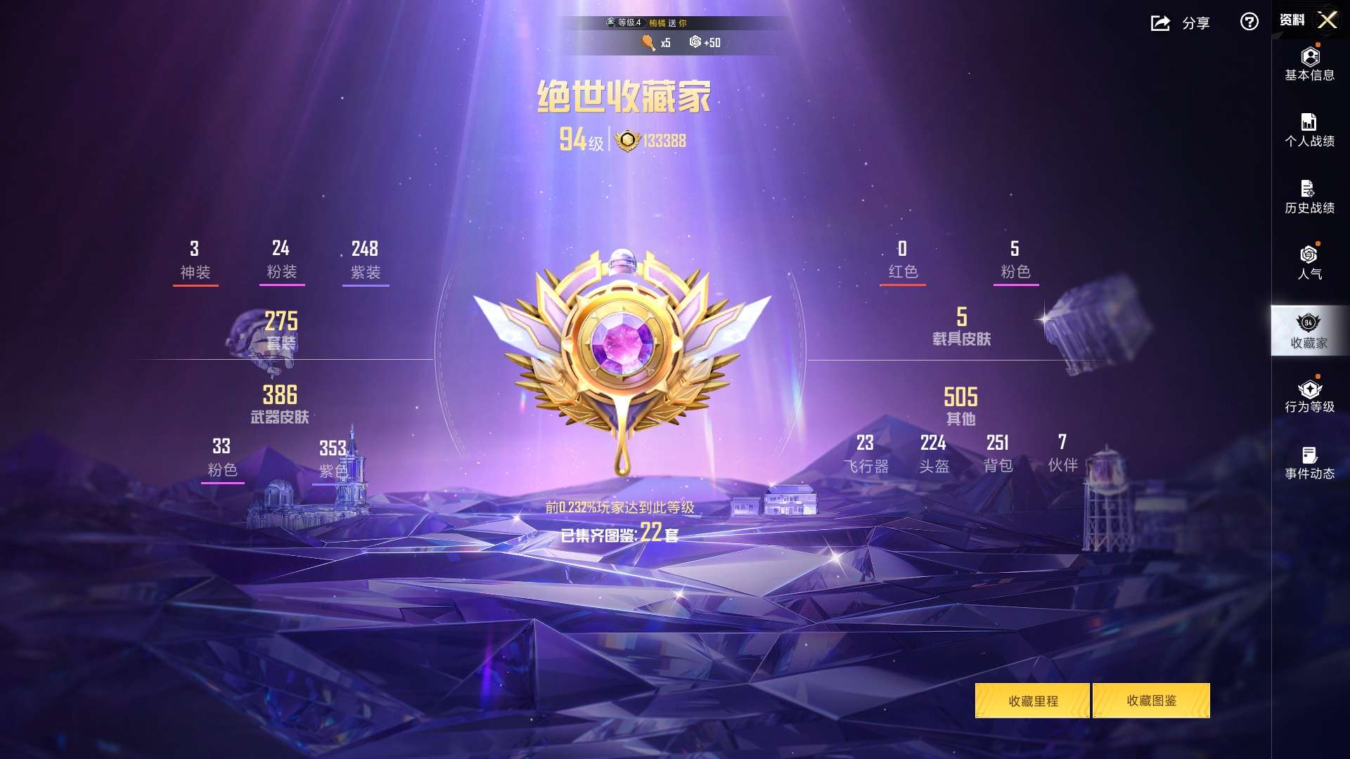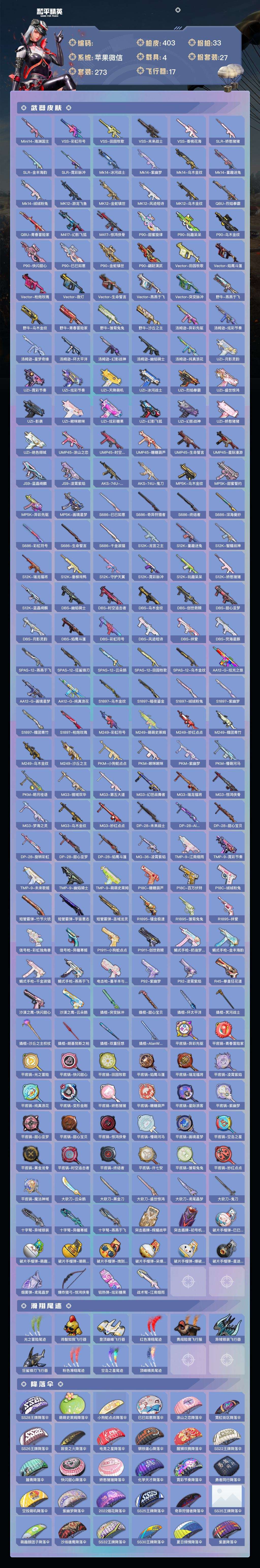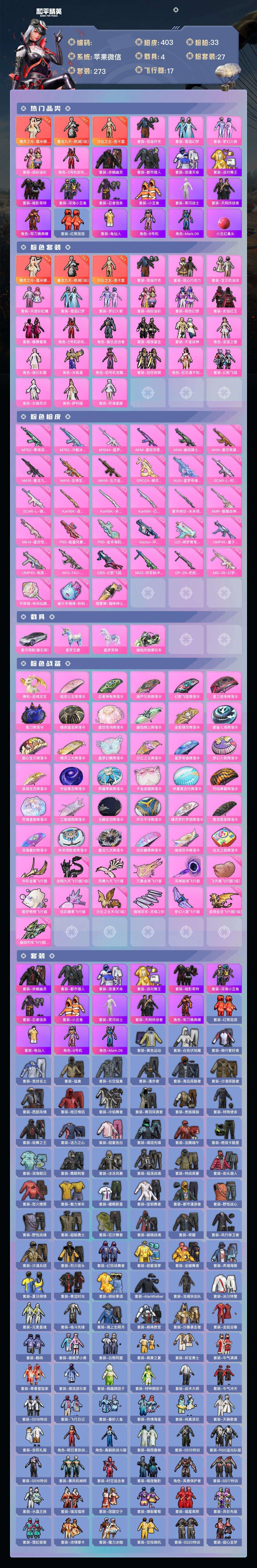 a4216/苹果v/极品身法套装号/热力值:148152,3神装,24粉装,33粉枪,4载具,49