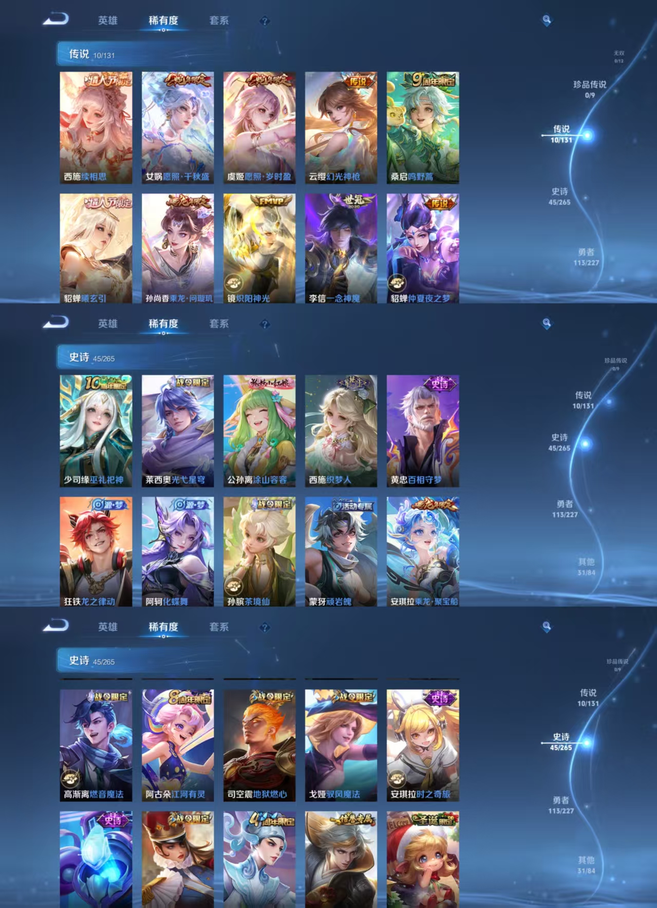 【传说皮肤】 鸣野蒿 乘龙·问璇玑 曦玄引 续相思 幻光神枪 愿照·千秋盛 愿照·岁时盈 仲夏夜之梦 炽阳神光 一念神魔