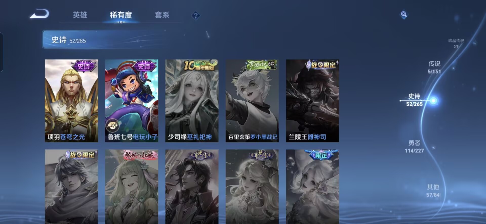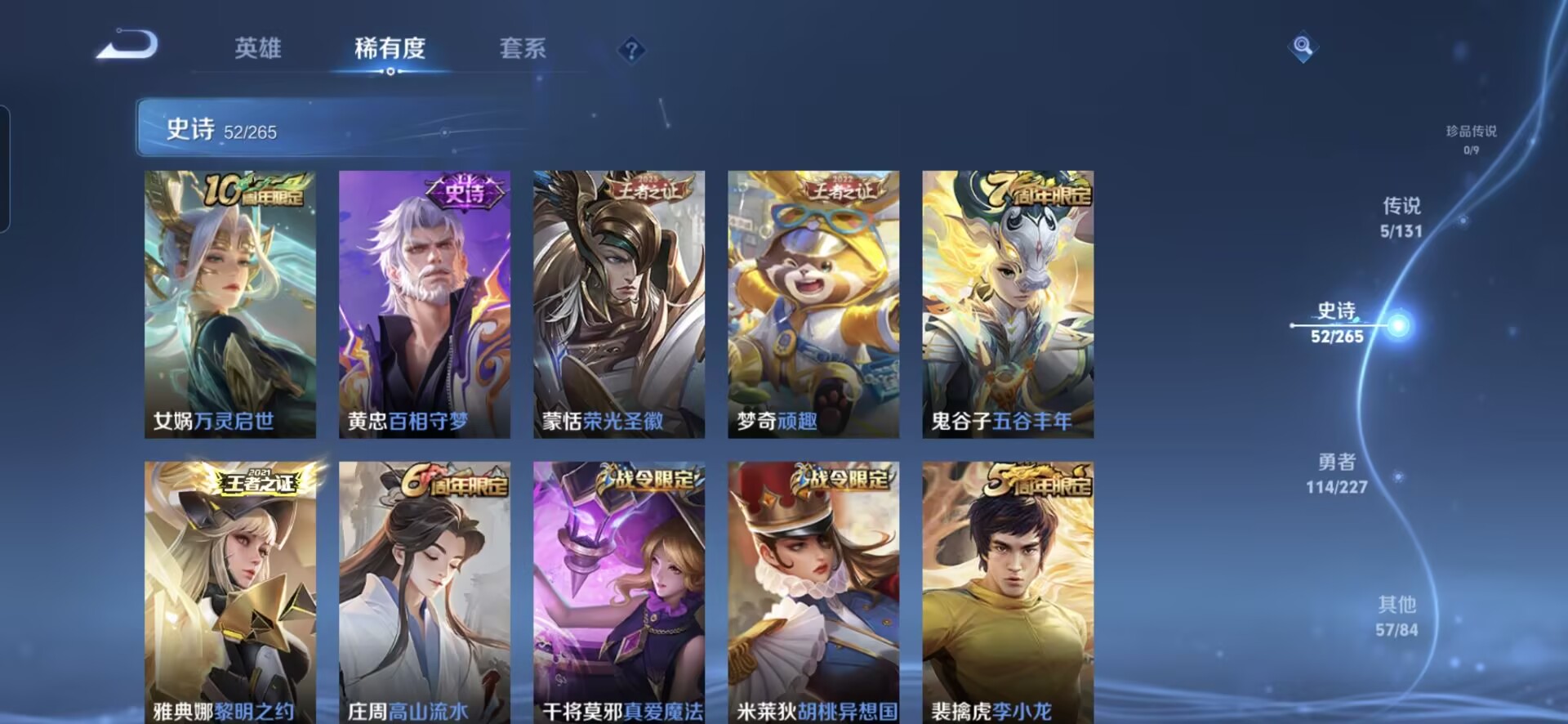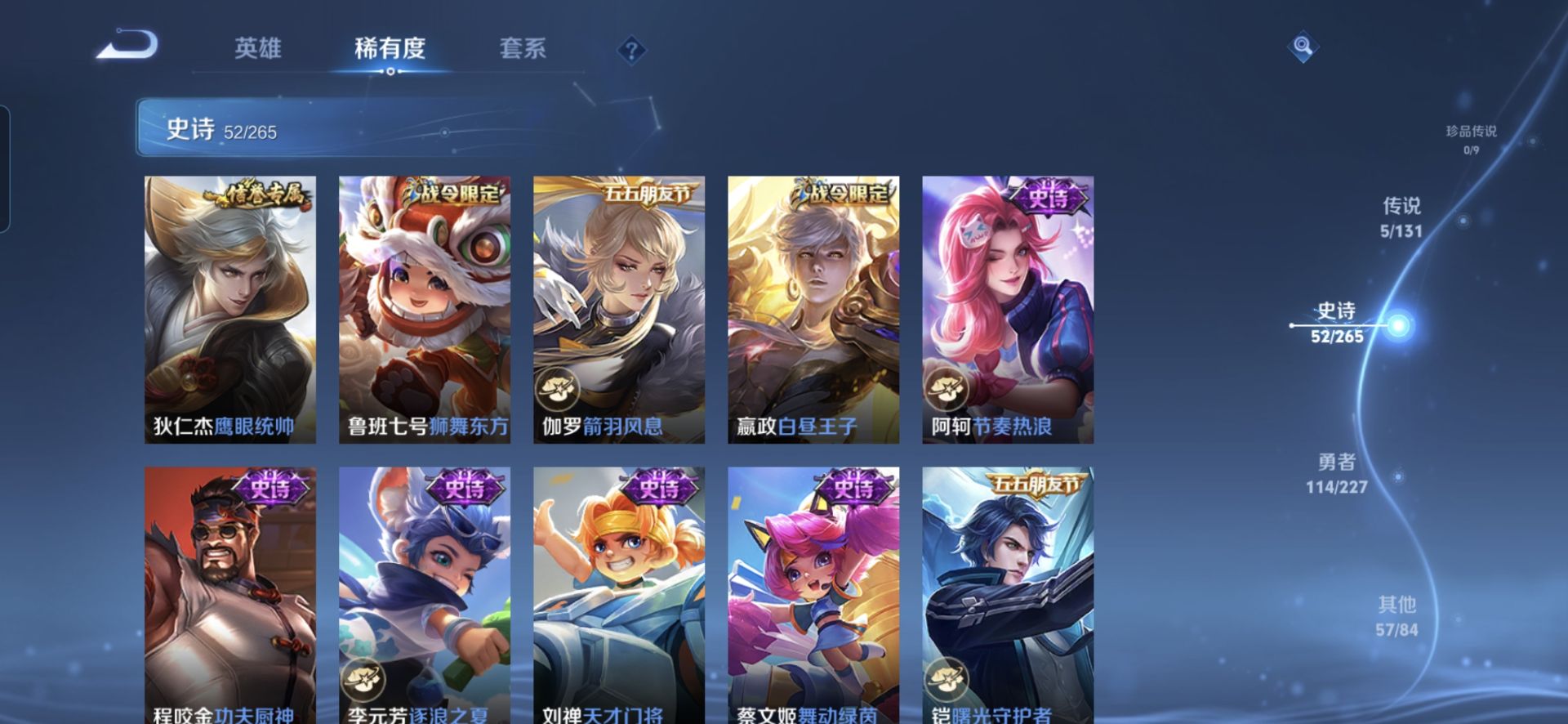 229皮肤-125英雄 v6 传说5 典藏1 星传说2 未来机甲 金色仲夏夜