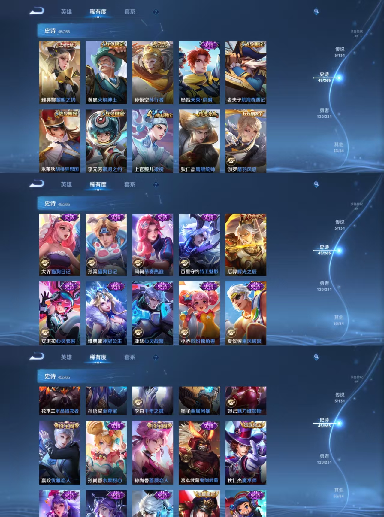 绝世王者-127英雄-221皮肤-3传说-45史诗