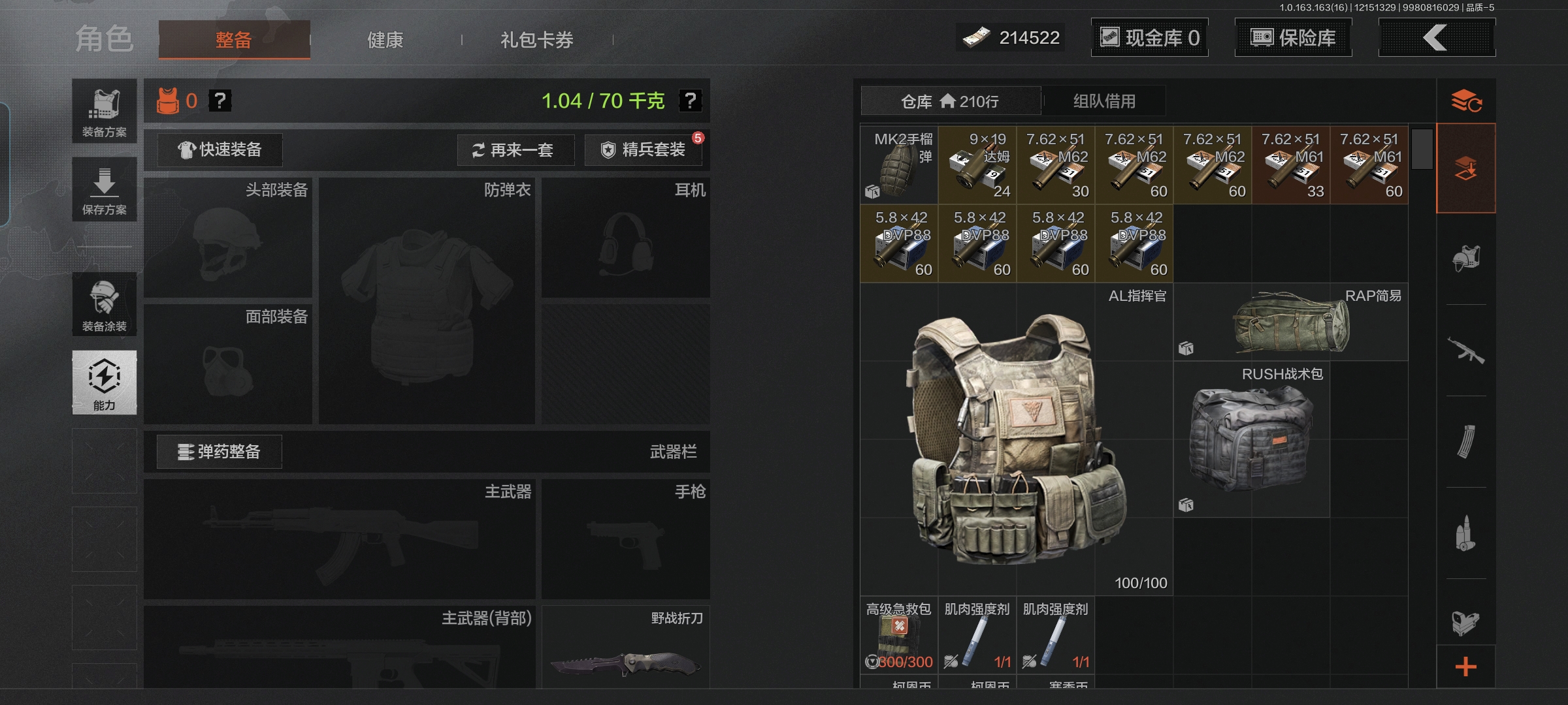 MWT4022【暗区传说】安卓Q-等级30-仓库价值686.2k-科恩币214k-【枪皮】 旗帜·AEK 浮鳞影青·QBZ192 【近战武器】 野战折刀 开山刀 工兵铲