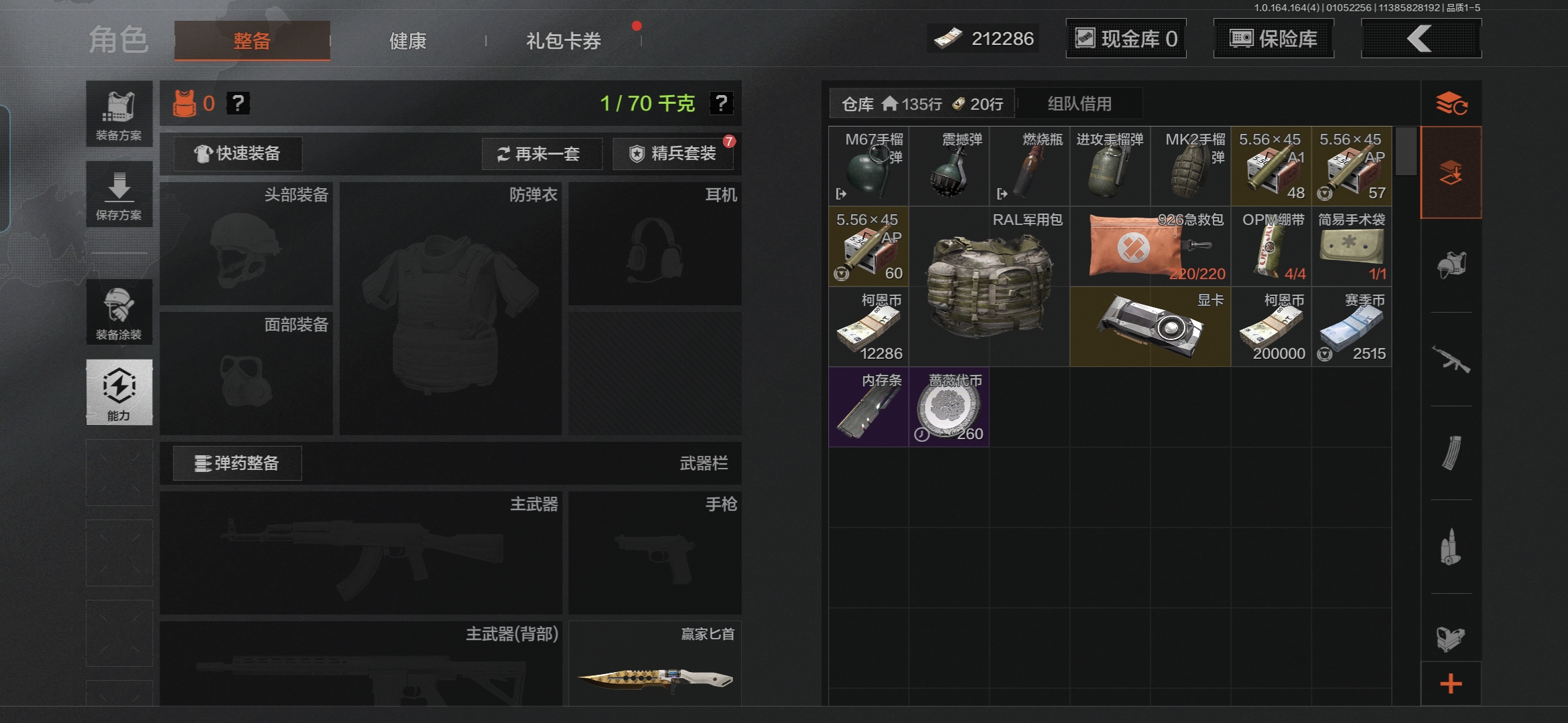 MWT4229安卓Q-等级30-仓库价值354.5k-科恩币212k-【套装】 和平先锋作战套装 金狮护身. 转运套装 高地武士.套装 王国卫队礼装 【枪皮】 旗帜 . AEK 旧王圣谕.QBZ191 利齿风暴 .MPX 旧王圣谕.VSS 【近战武器】 赢家匕首 开山刀 工兵铲