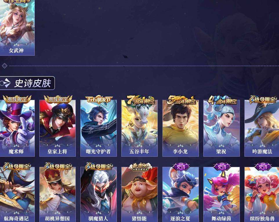 安卓Q-V0-永恒钻石III段位-116英雄-167皮肤-26史诗【限定皮肤