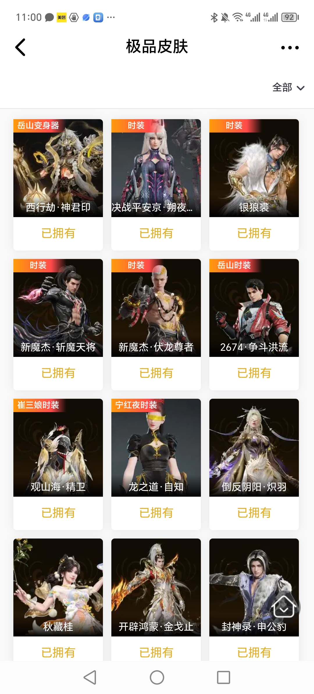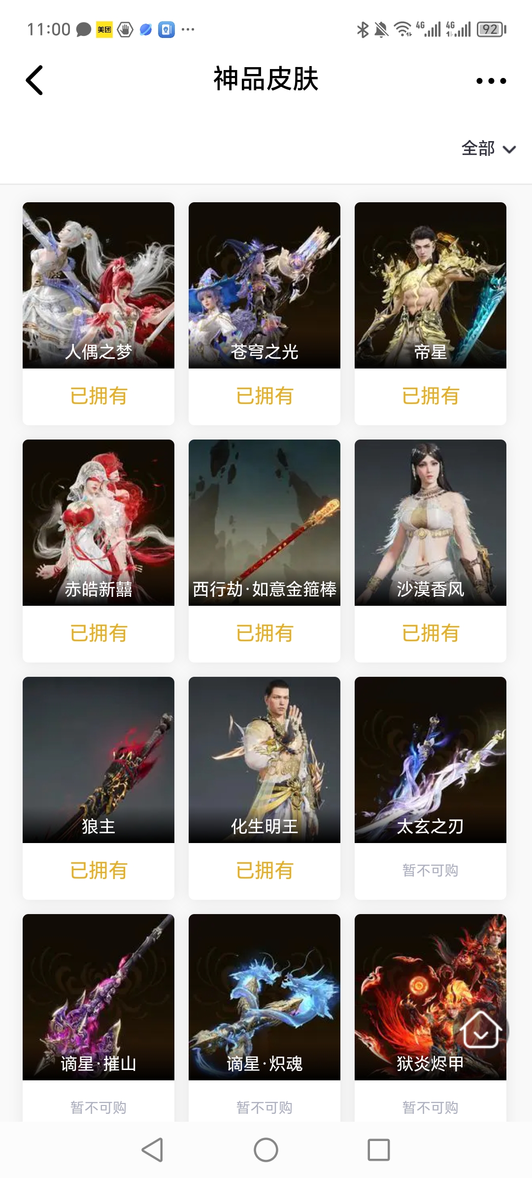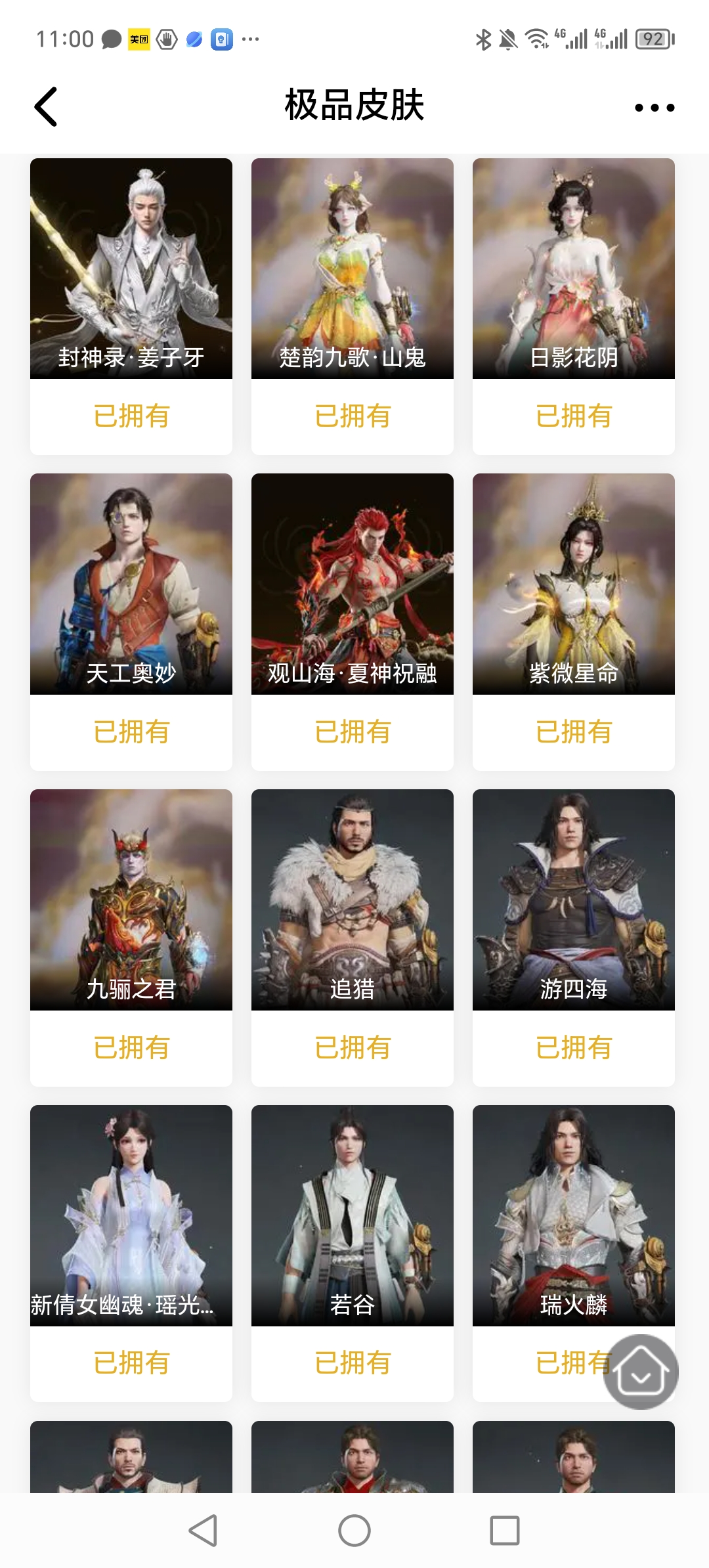 【极品皮肤】倒反阴阳·炽羽 秋藏桂 开辟鸿蒙·金戈止 封神录·申公豹 封神录·姜子牙 楚韵九歌·山鬼 天工奥妙 日影花阴 观山海·夏神祝融 西行劫·神君印 紫微星命 九骊之君 追猎 游四海 新倩女幽魂·瑶光沐月 若谷 瑞火麟 麟鹿大铠 华夏宝甲·汉光 弘毅袍 贵胄少女 赤雾烟霞 赤丹朱湛 碧水青天