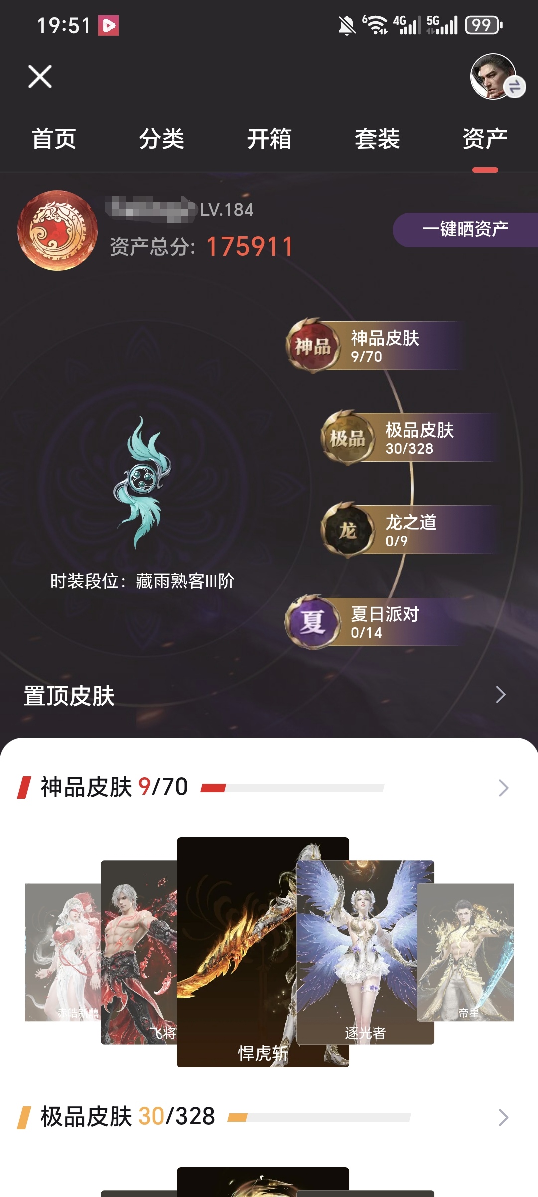 9红 30金 悍虎斩帝星飞将戟 【游戏等级】184【大区】国服