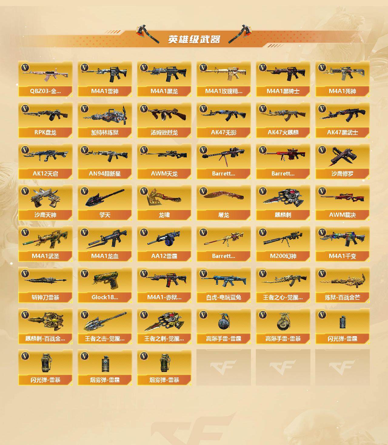 【热门武器】:QBZ03-金色蔷薇,M200-幻神,死亡之眼*5,白虎-电玩蓝兔,M4A1-黑骑士*2,汤姆逊-烈龙*6,RPK-盘龙*6,加特林-炼狱*3,沙鹰-修罗*4