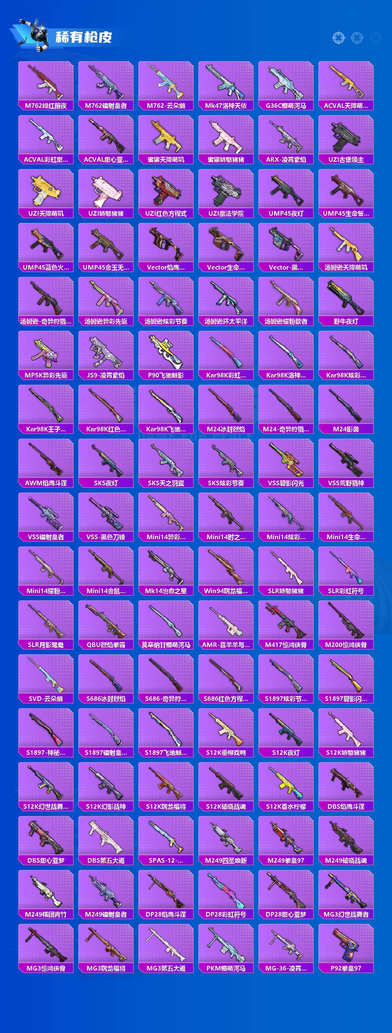 【粉色枪皮等级】:M416-电玩时刻(五级),Kar98K-巳巳如意(五级),DP-28-豹影疾电(五级)