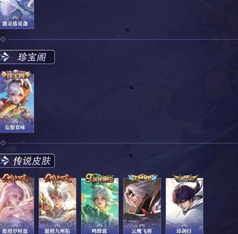【传说皮肤】:澜愿照九州拓,虞姬愿照岁时盈,桑启鸣野蒿,李白诗剑行,曜云鹰飞将