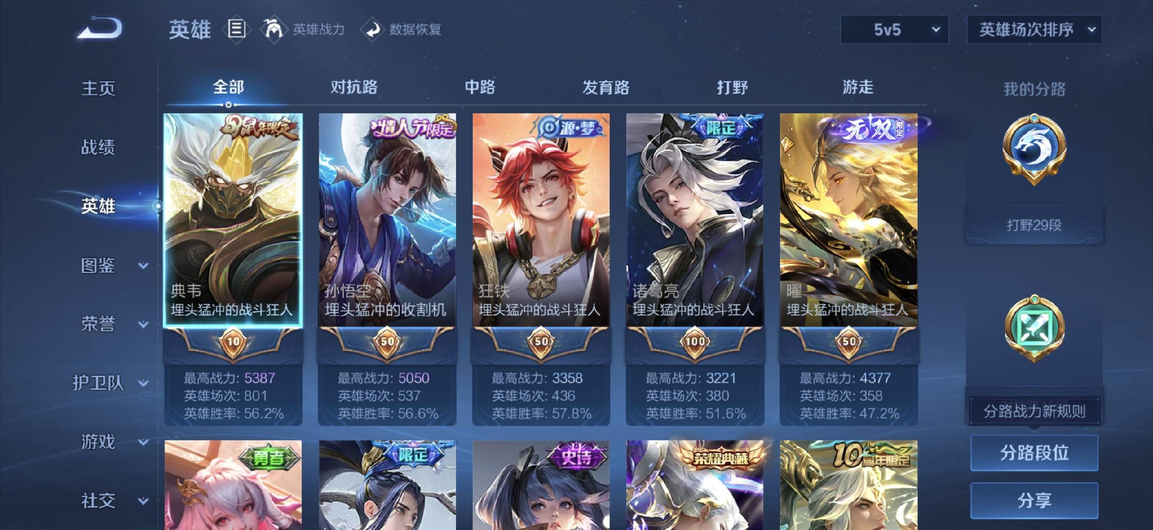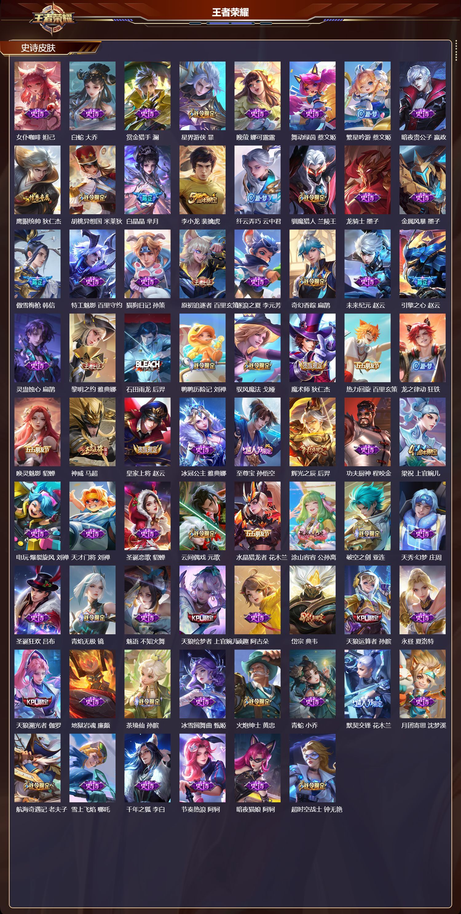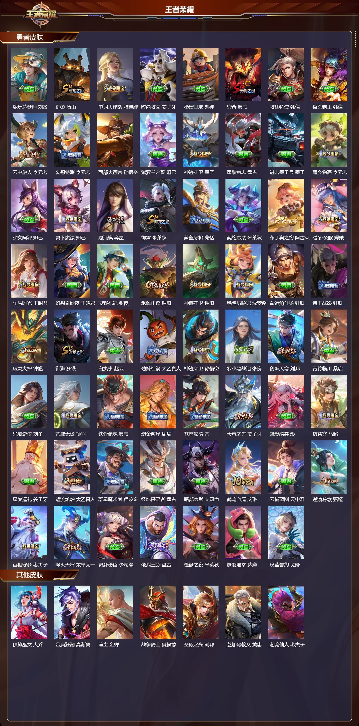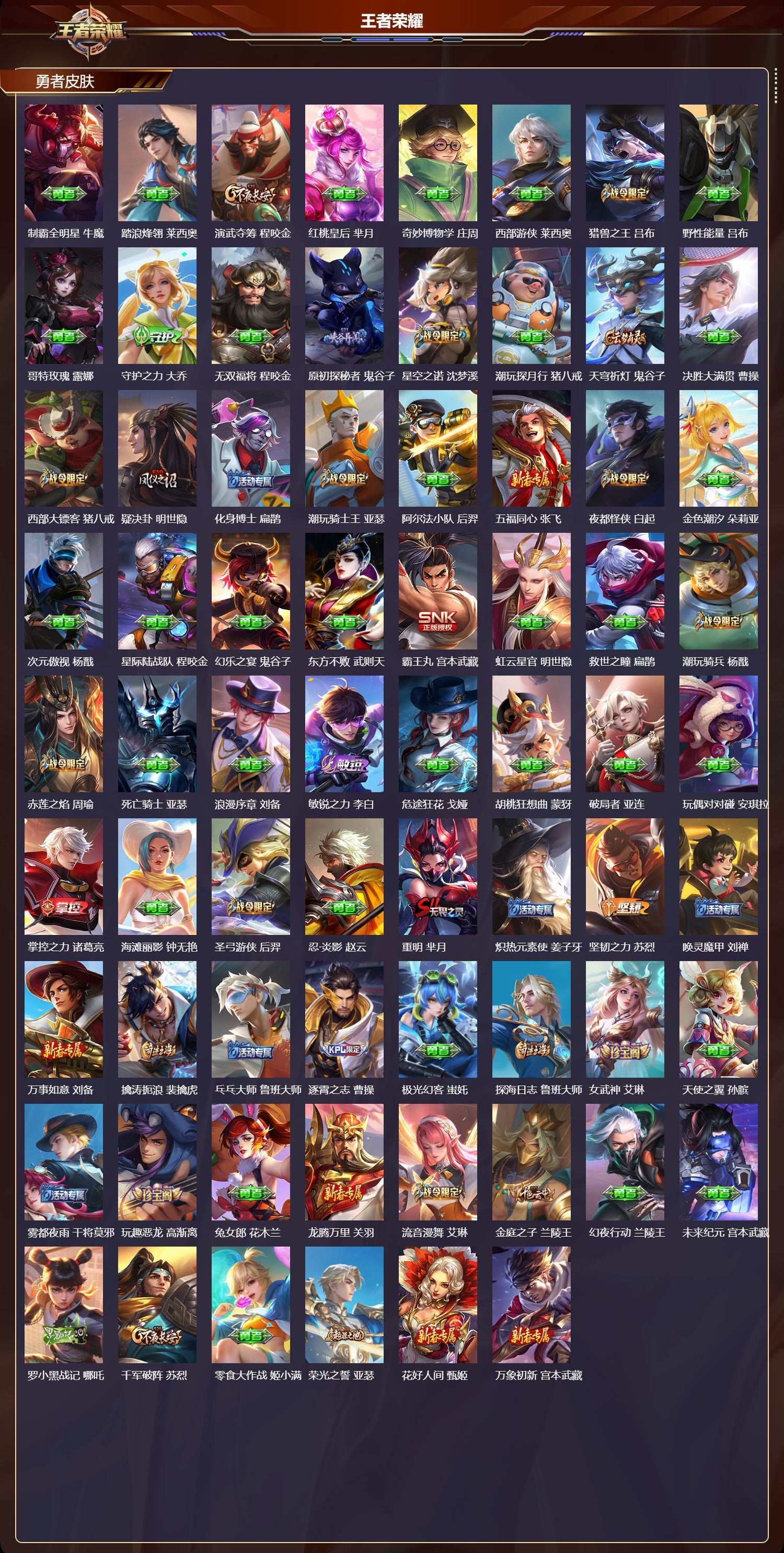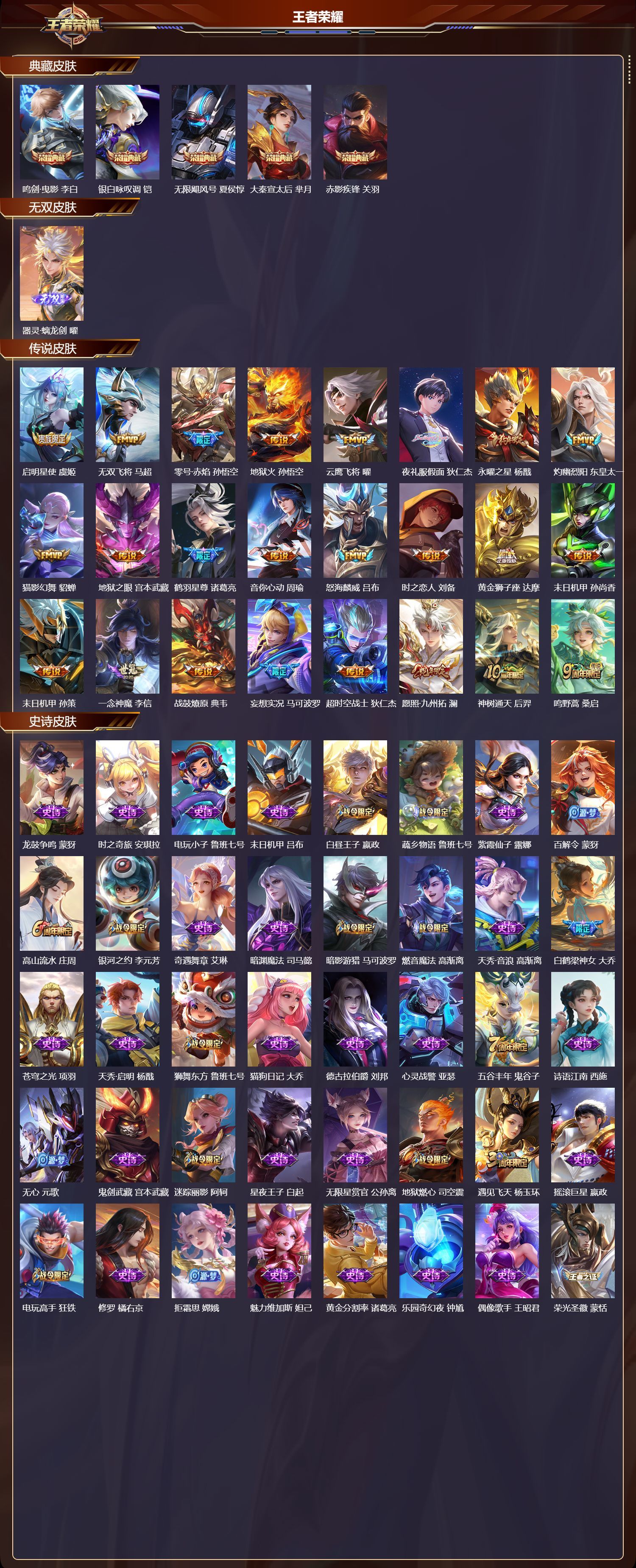 安卓v/无双王者/423皮肤/127英雄/5典藏/0珍品无双/1无双/0珍品传说/24传说/133