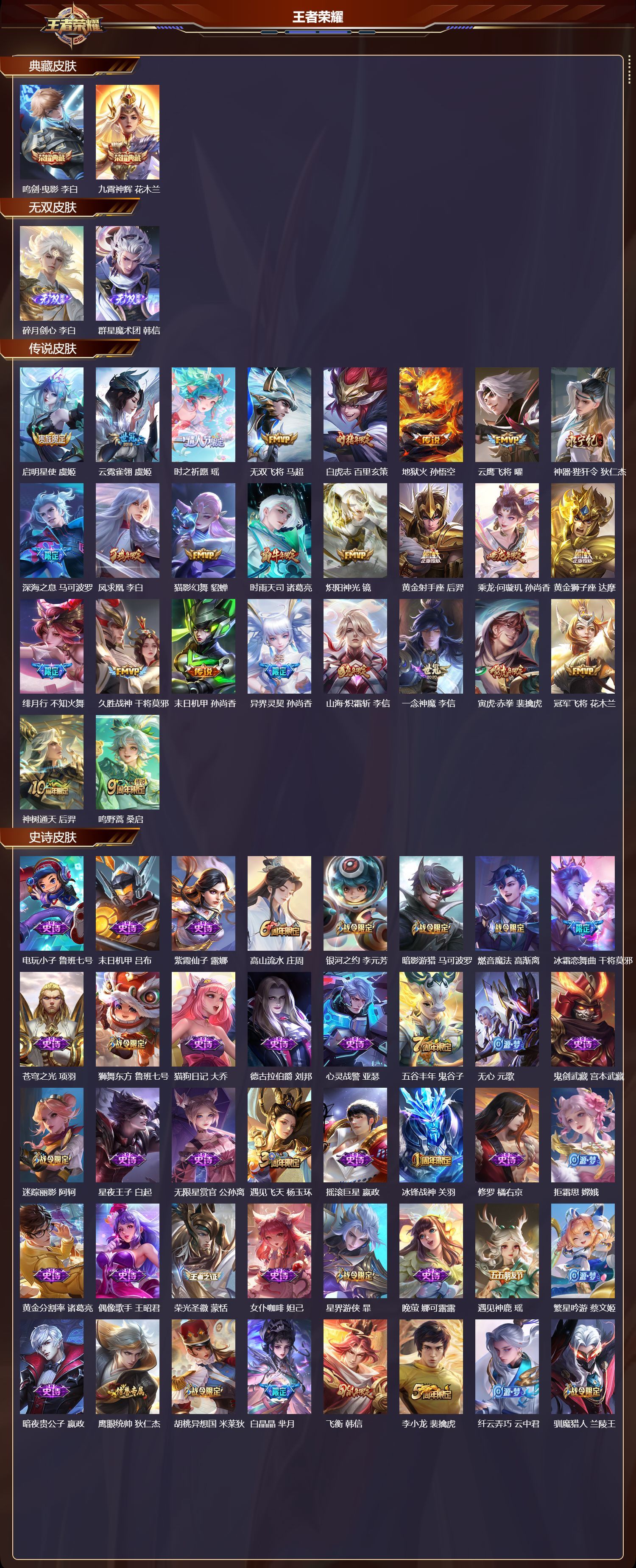 苹果QQ/至尊星耀/321皮肤/127英雄/2典藏/0珍品无双/2无双/0珍品传说/26传说/92史