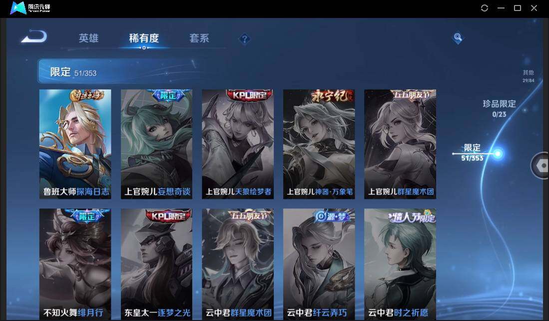 【W4743】安卓QQ-有二次-贵7-125英雄-152皮肤-9传说-1星元-