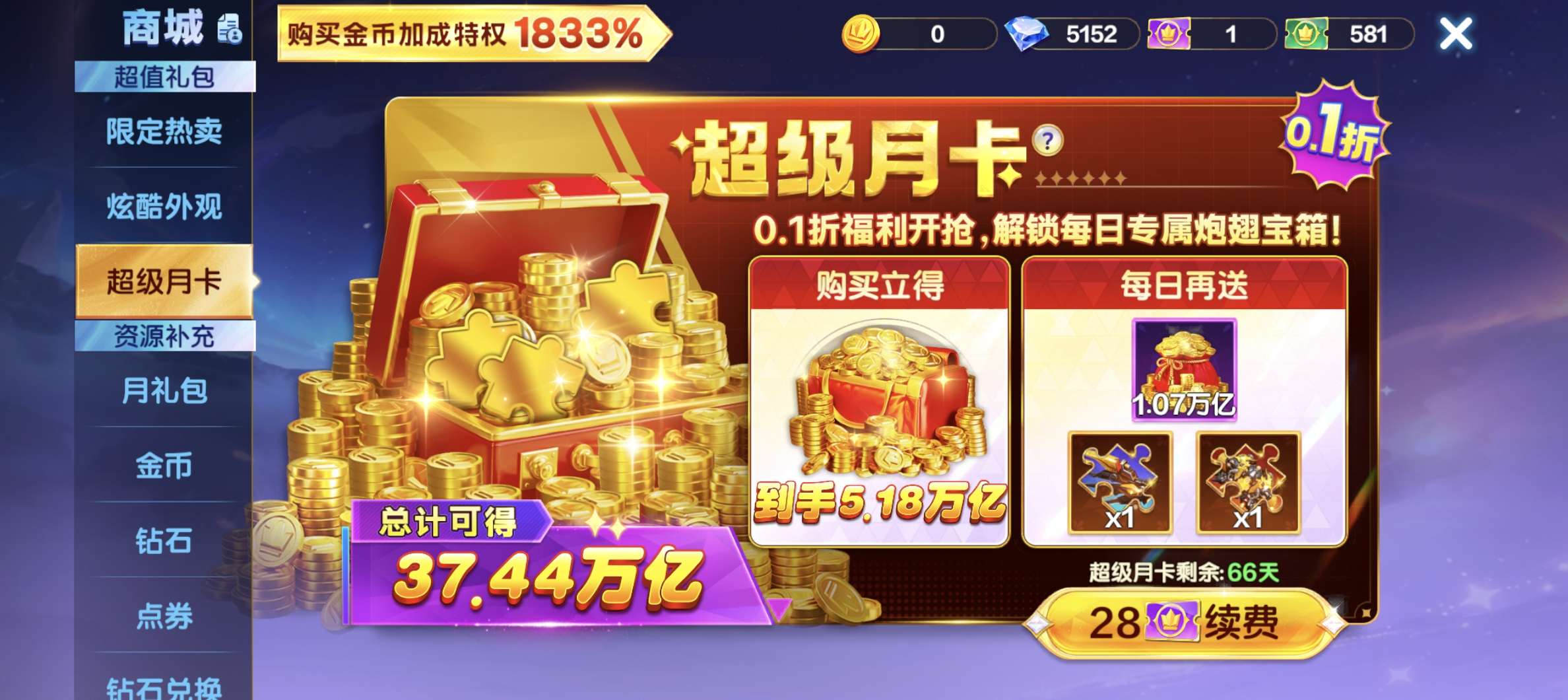 官方s3 多天神有副炮月卡还有2个月每天3万亿