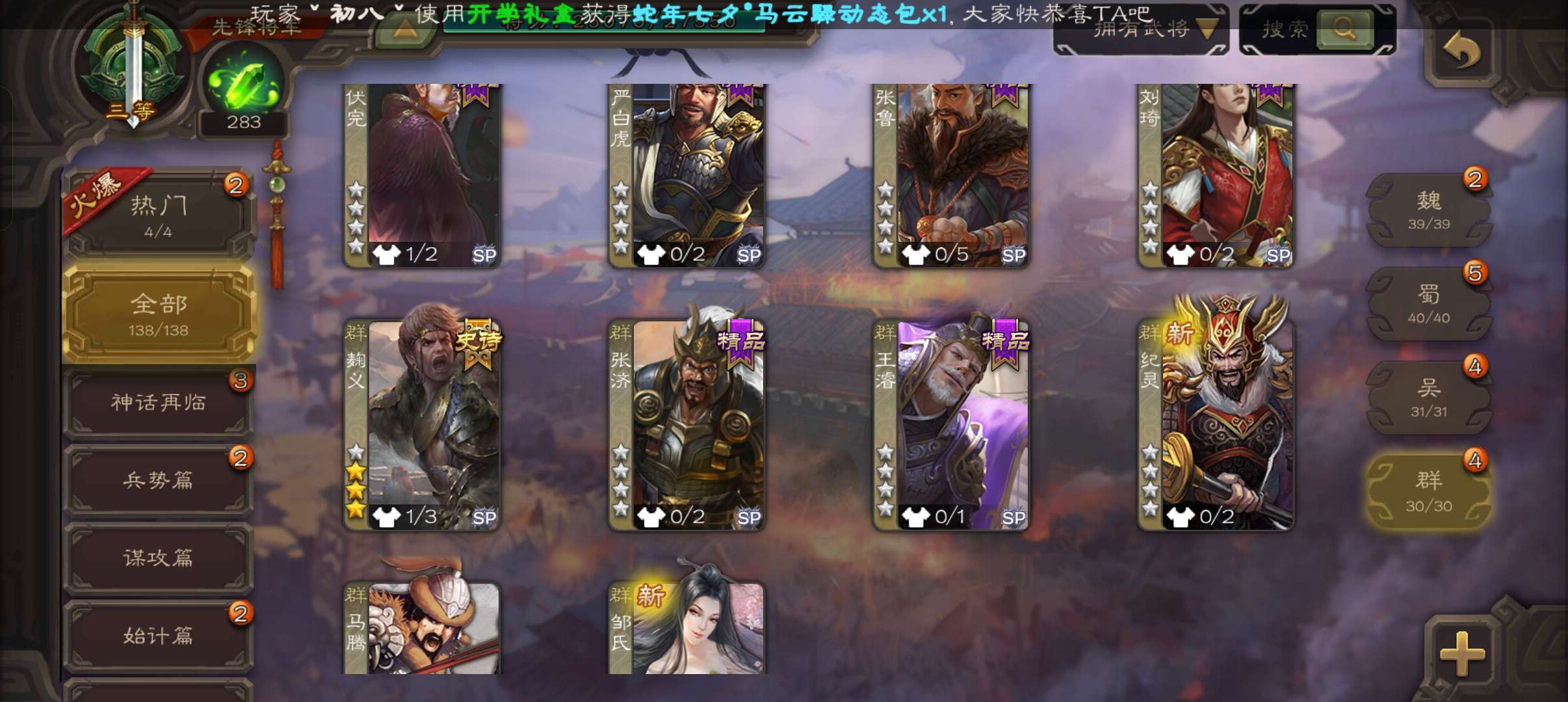 史诗武将数量: