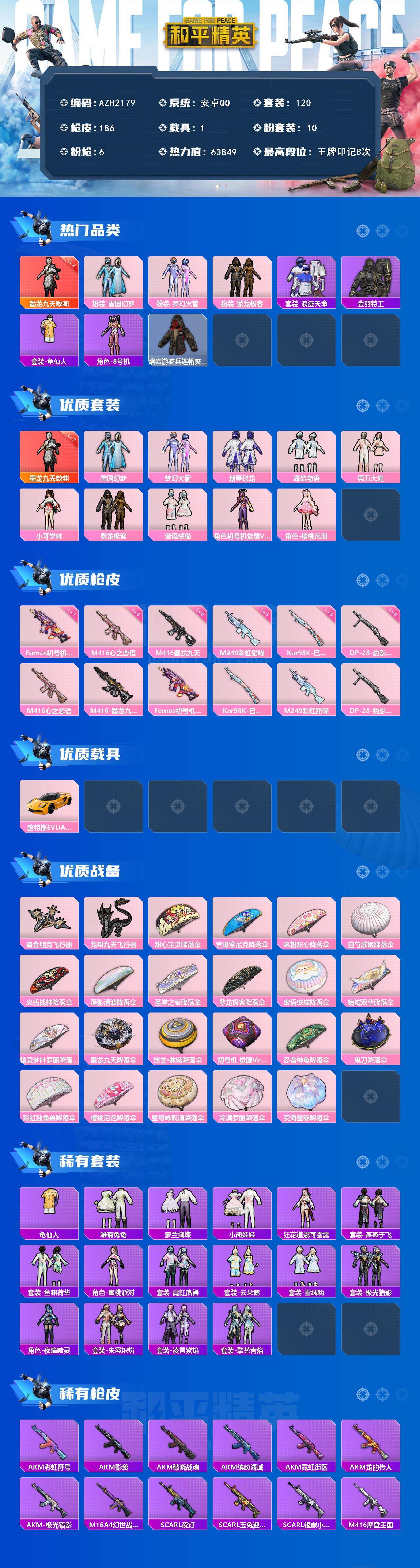 【AZH2179】安卓 手Q【二级敖渊 雪国梦幻火箭 满级Famas-初号机 觉醒Ver. 1载具】1神装-10粉装-6特效枪-1载具-3粉色飞行器-63849热力值-8王牌印记-120套装-186枪皮