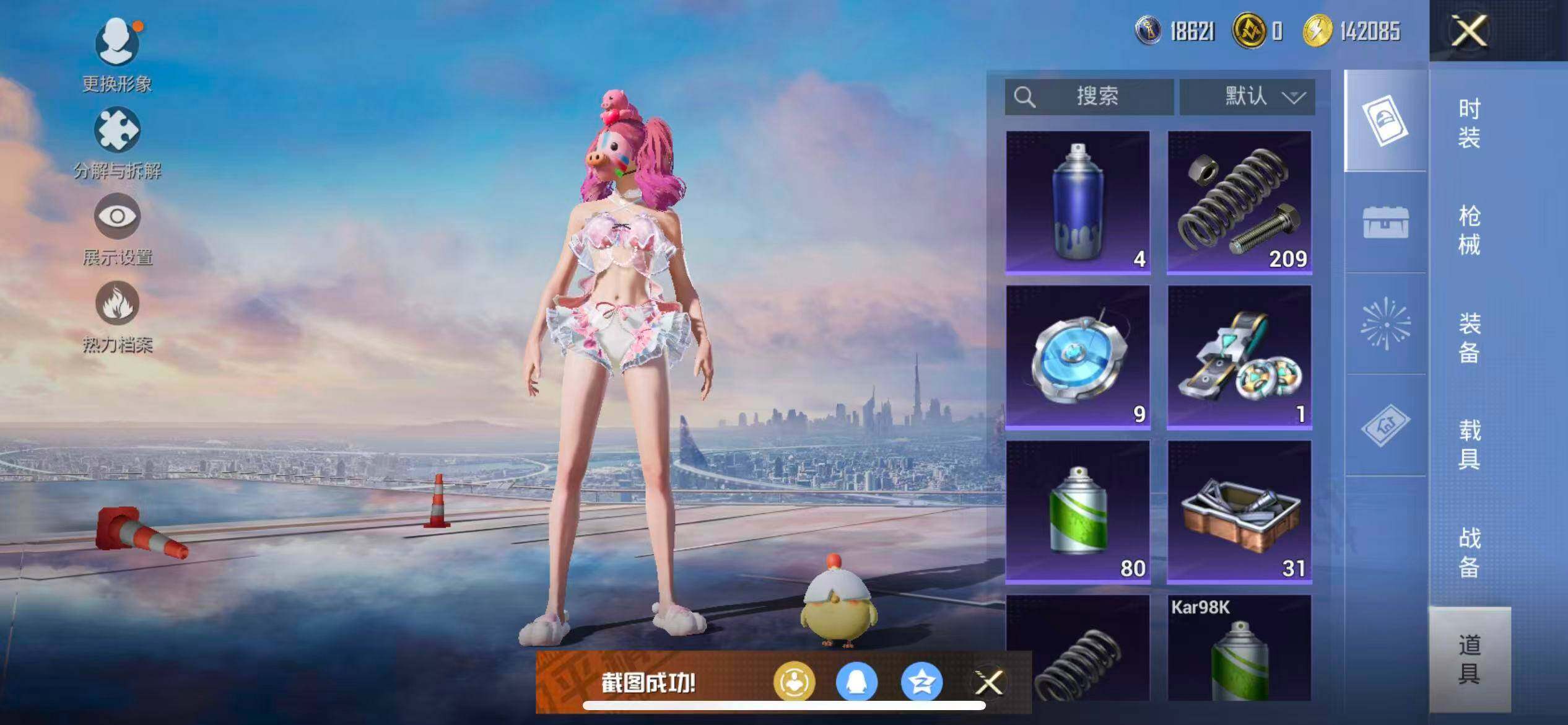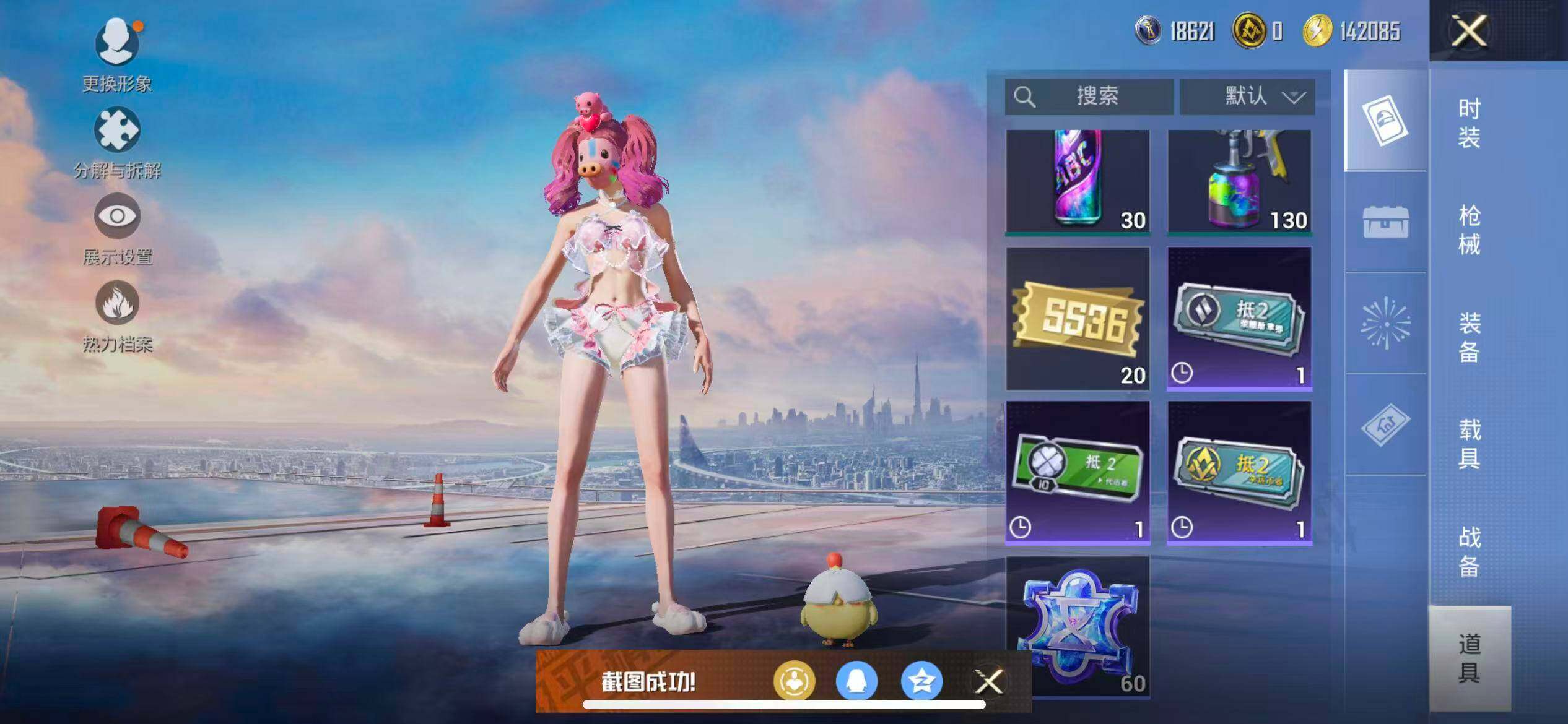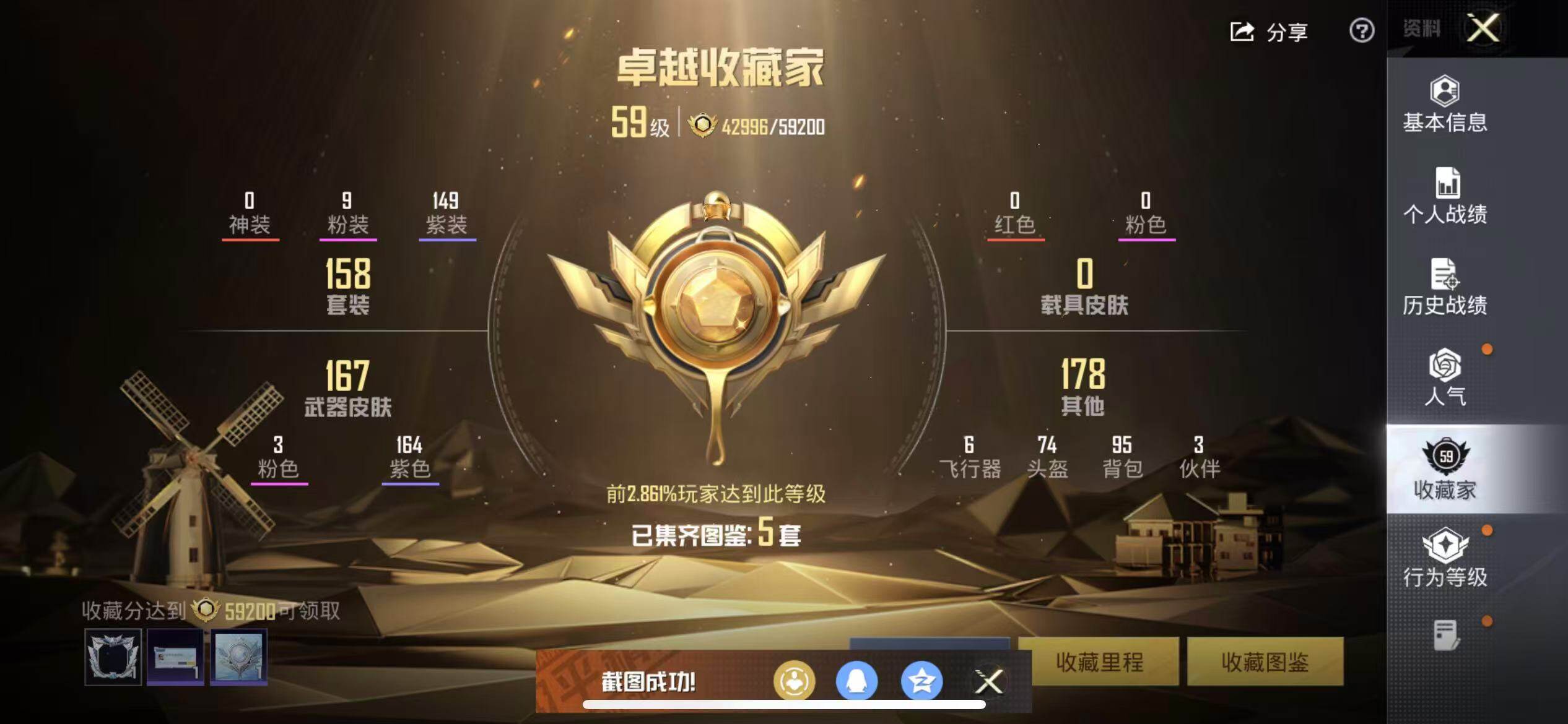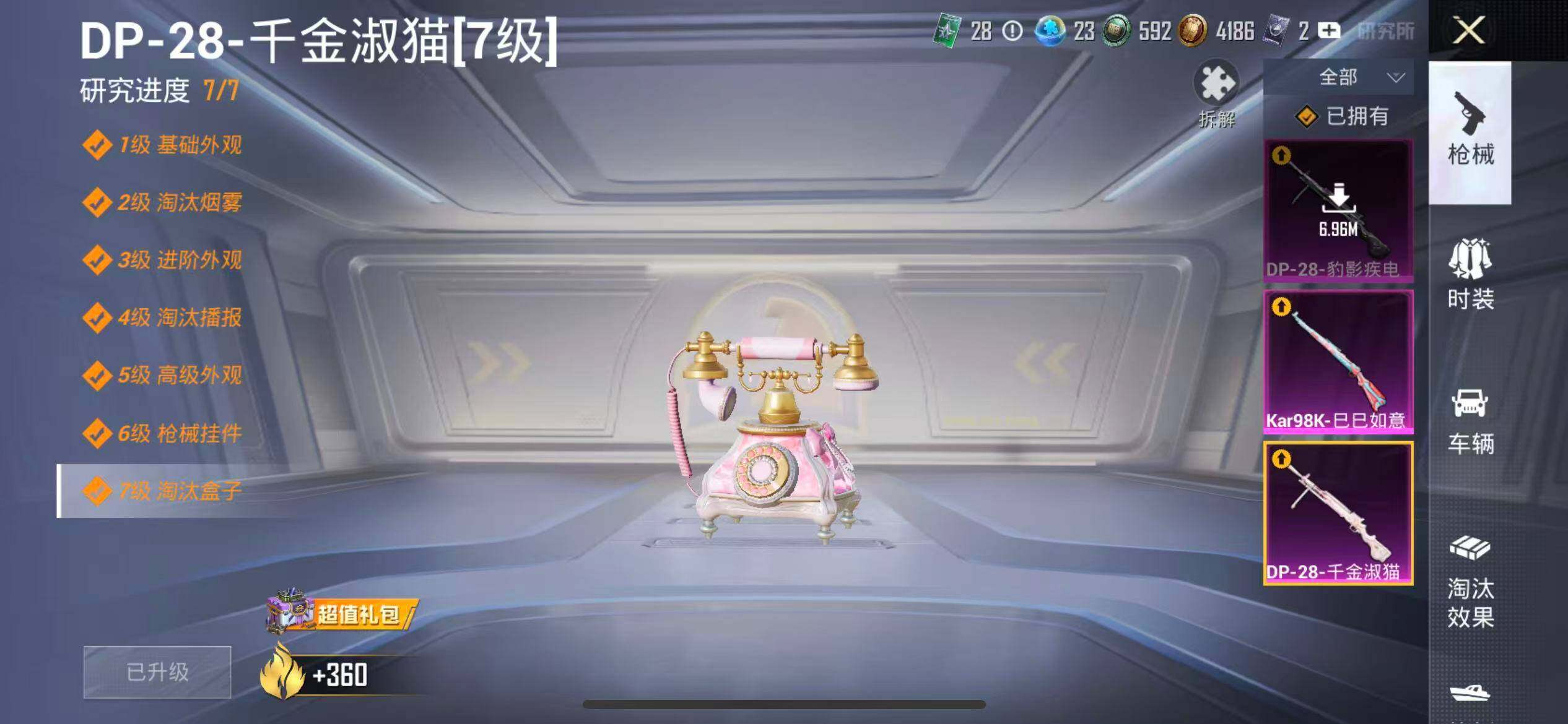 苹果 手Q-9粉装-3特效枪-0载具-2粉色飞行器-57760热力值-11王牌印记-158套装-184枪皮