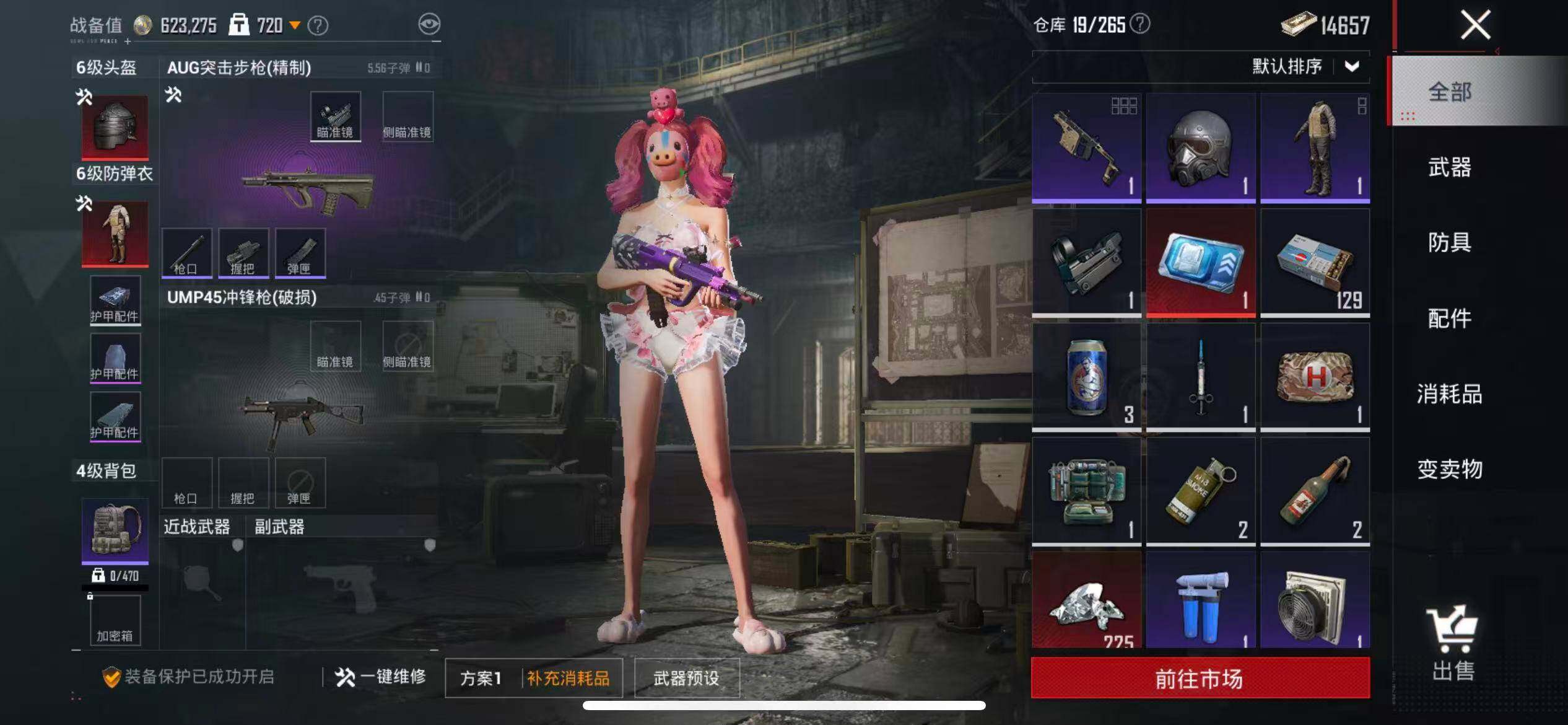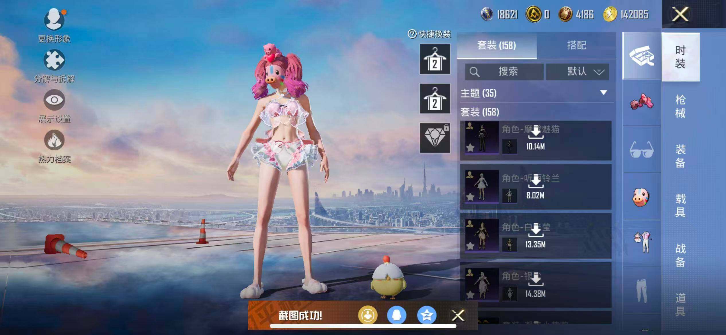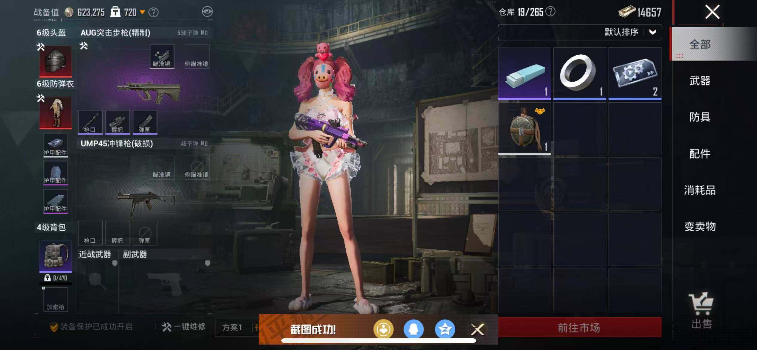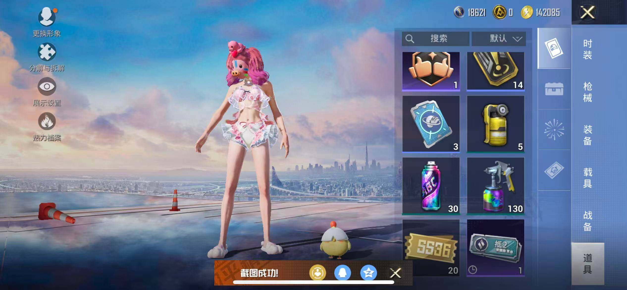 苹果 手Q-9粉装-3特效枪-0载具-2粉色飞行器-57760热力值-11王牌印记-158套装-184枪皮
