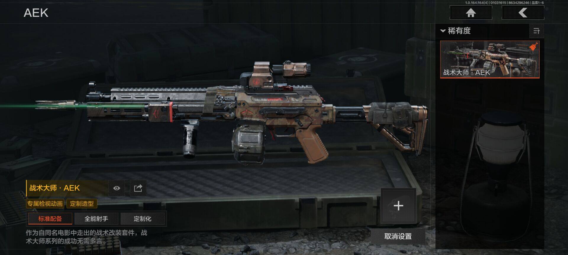 【AQD72】等级:30/段位:王牌/仓库价值(百万):66.5/柯恩币:21847000/苍穹利爪/工兵铲/脉冲马克西姆/战术大师AEK/战术大师AN94/旧王圣谕VSS/旧王圣谕QBZ191