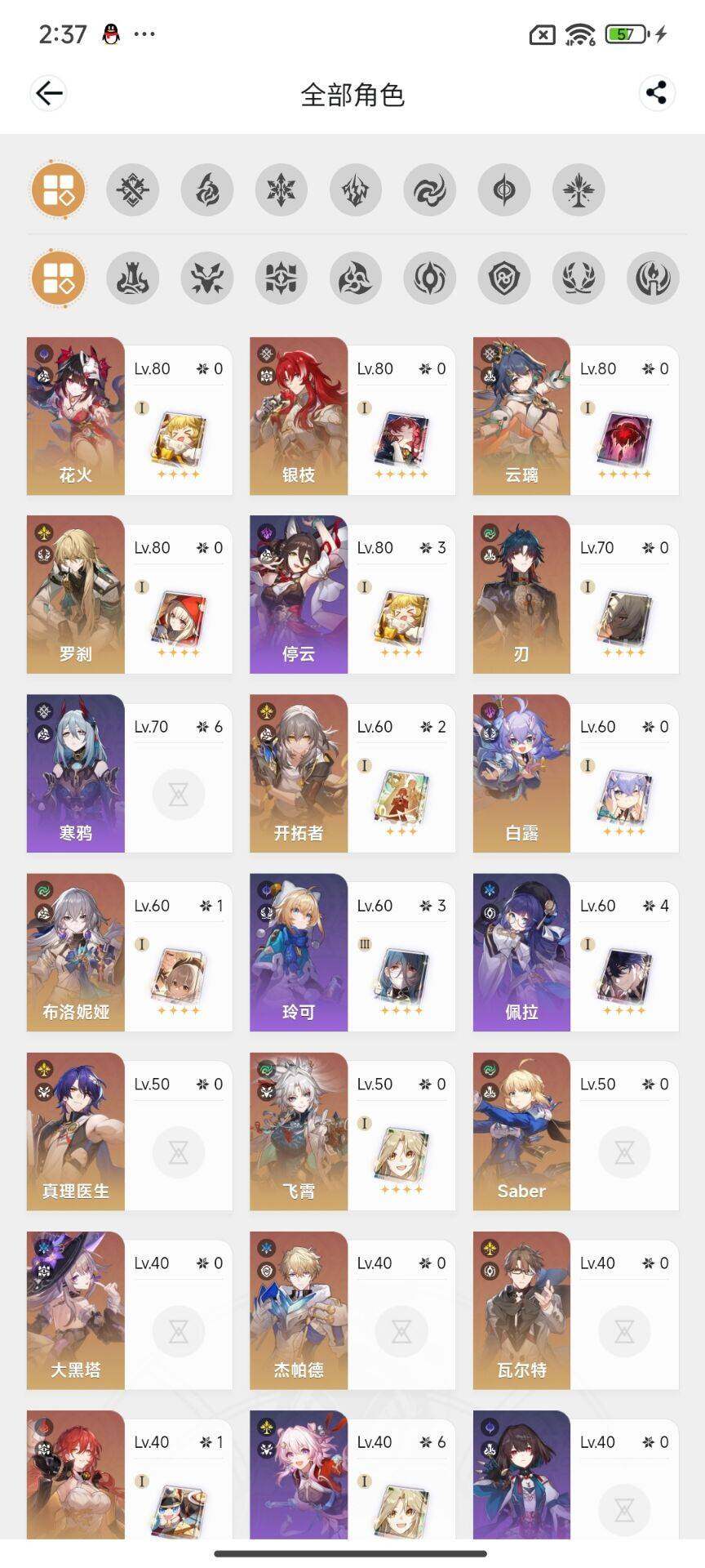 【XQD4】等级:65/总黄数:21/女主/角色黄数:20/Archer/阮·梅/姬子/瓦尔特/杰帕德/大黑塔/Saber/飞霄/真理医生/布洛妮娅/白露/刃/罗刹/云璃/银枝/花火/1命丹恒•腾荒