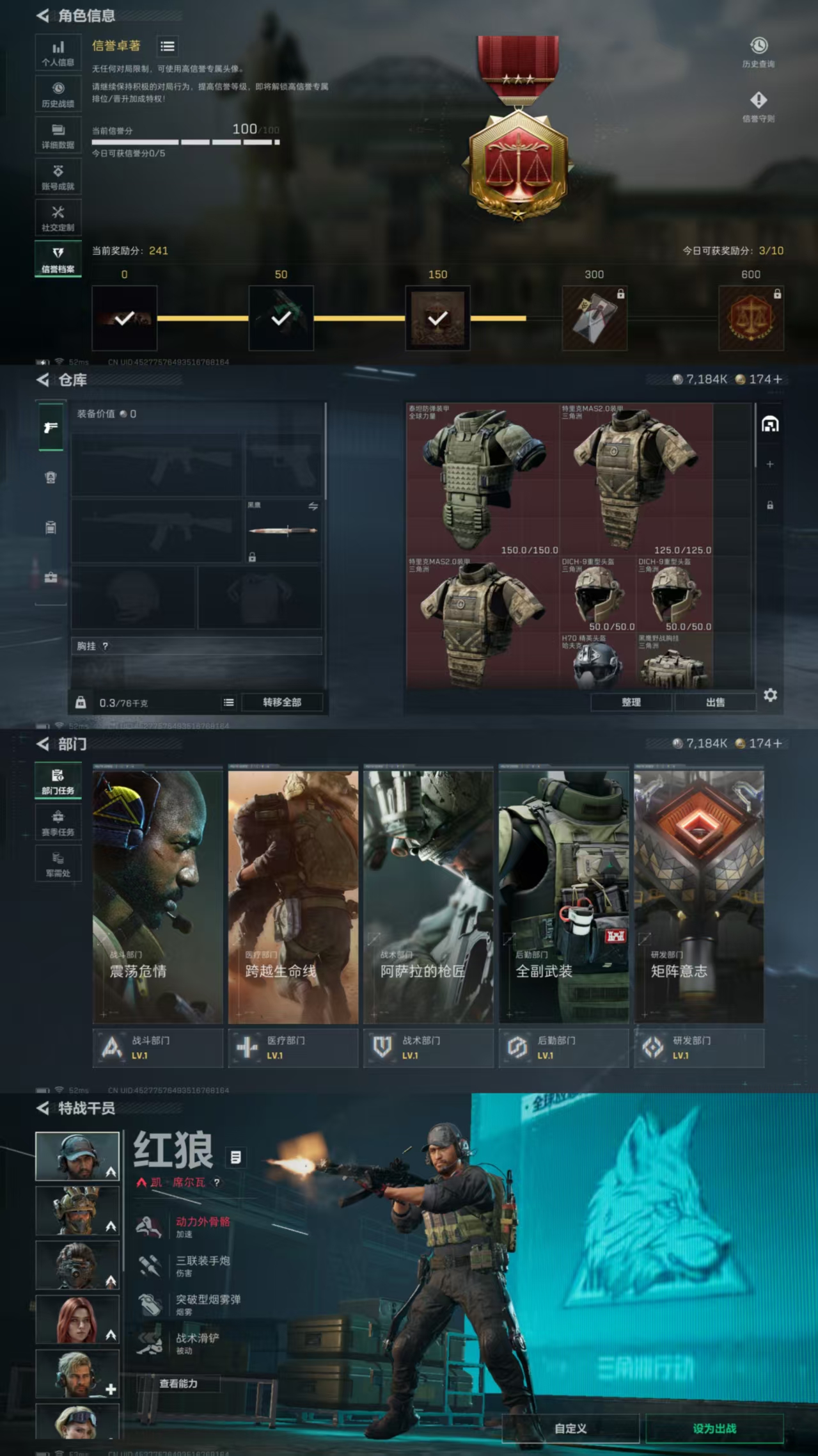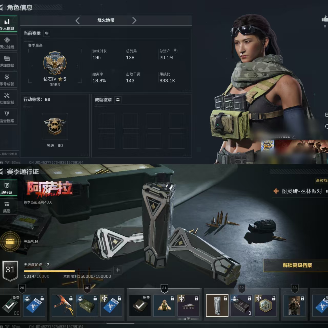 总价值20M-哈夫币7184K-烽火地带等级60-烽火地带段位