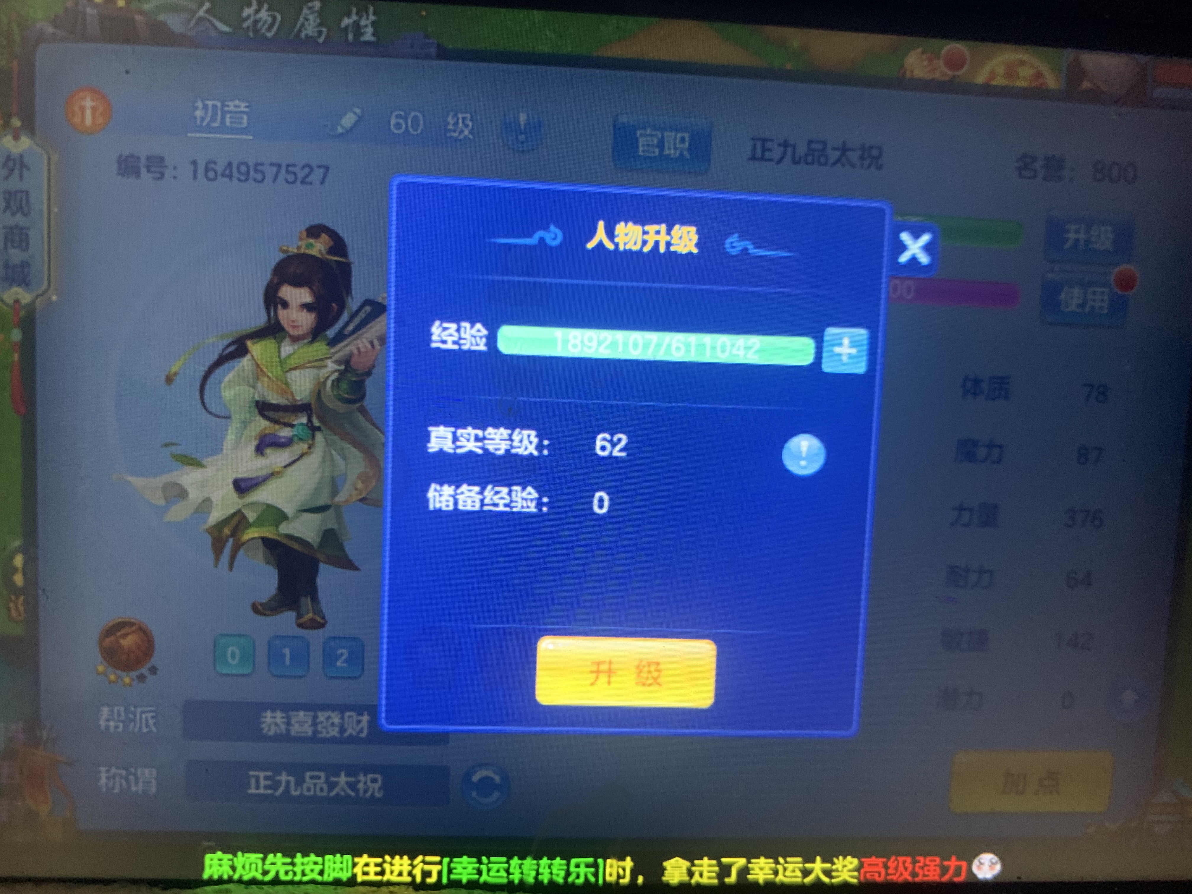 角色等级: