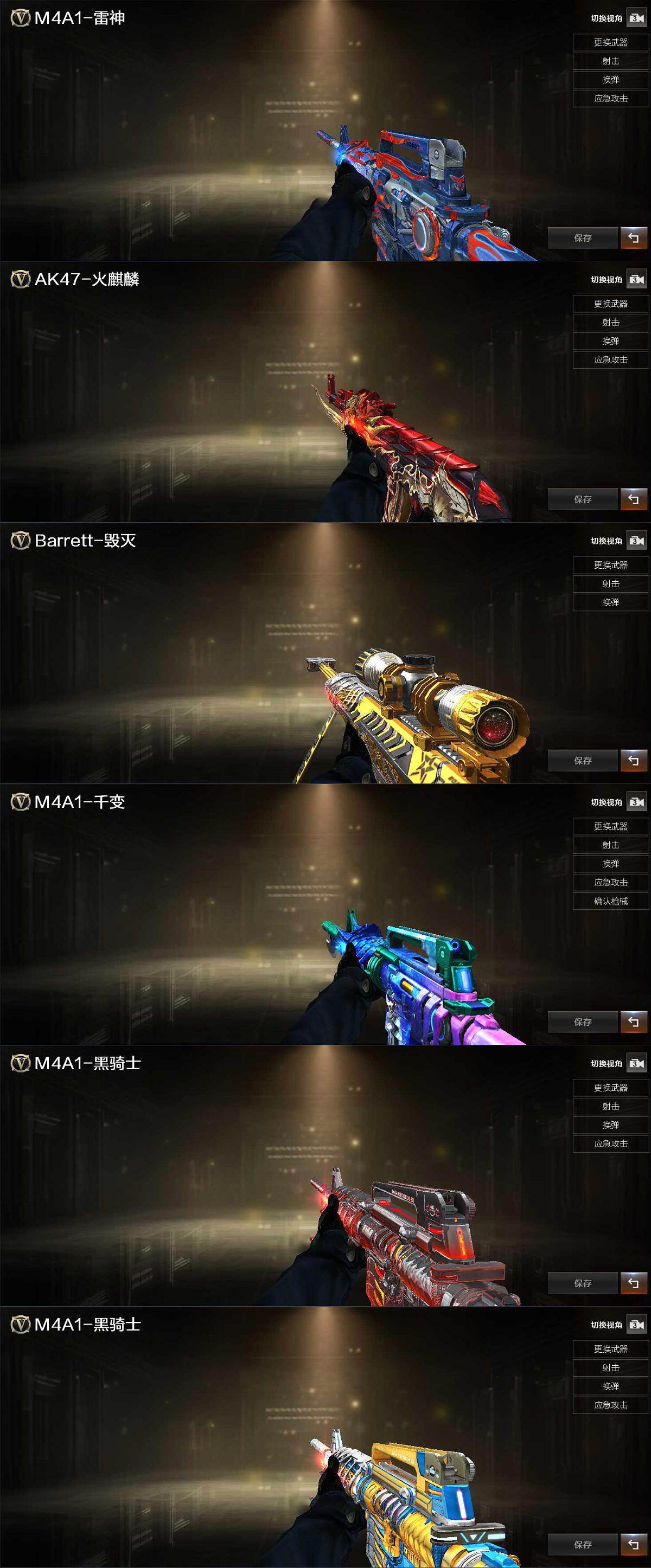 【热门武器】:QBZ03-金色蔷薇,Scar Light-白虎,M200-幻神,Kar98K-星神,M4A1-黑骑士,RPK-盘龙*6,加特林-炼狱,COP-堕天神,沙鹰-修罗*5,金刚伞