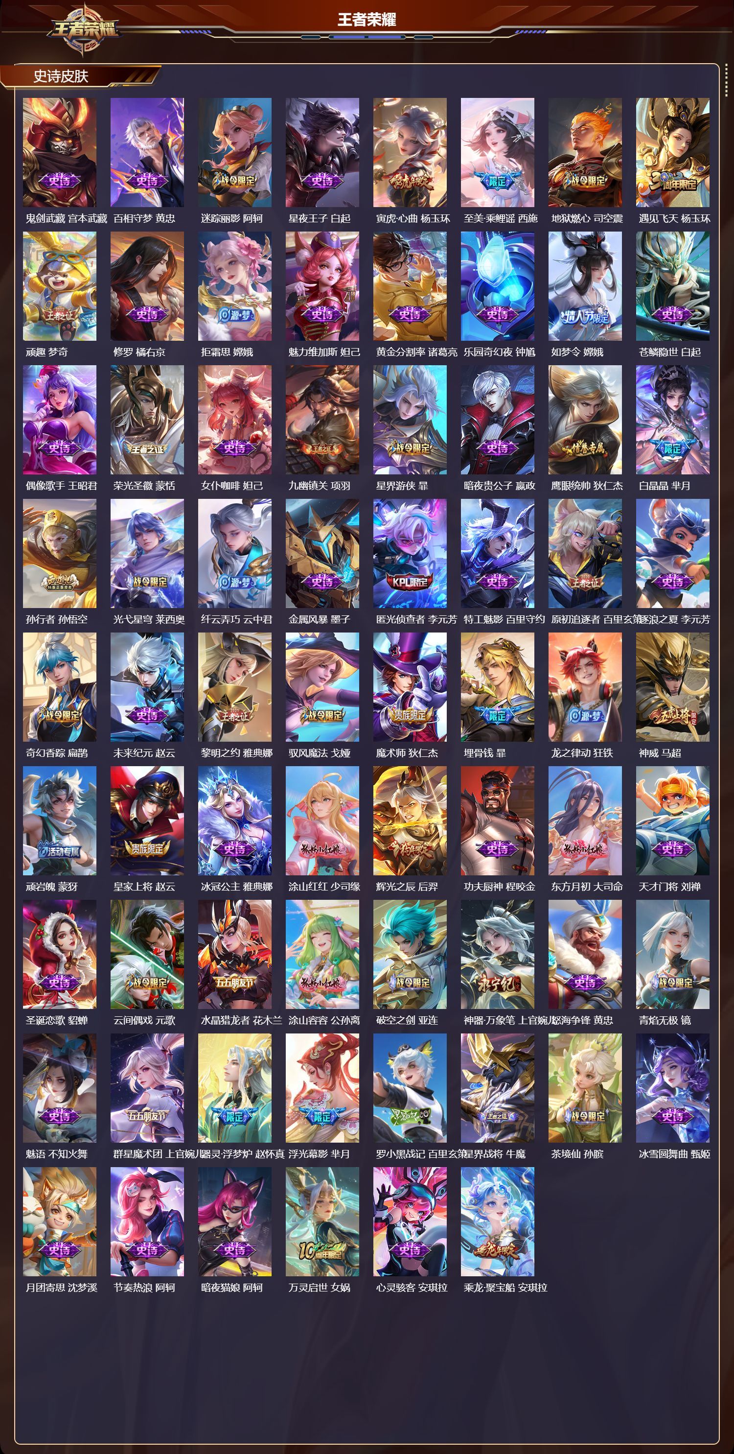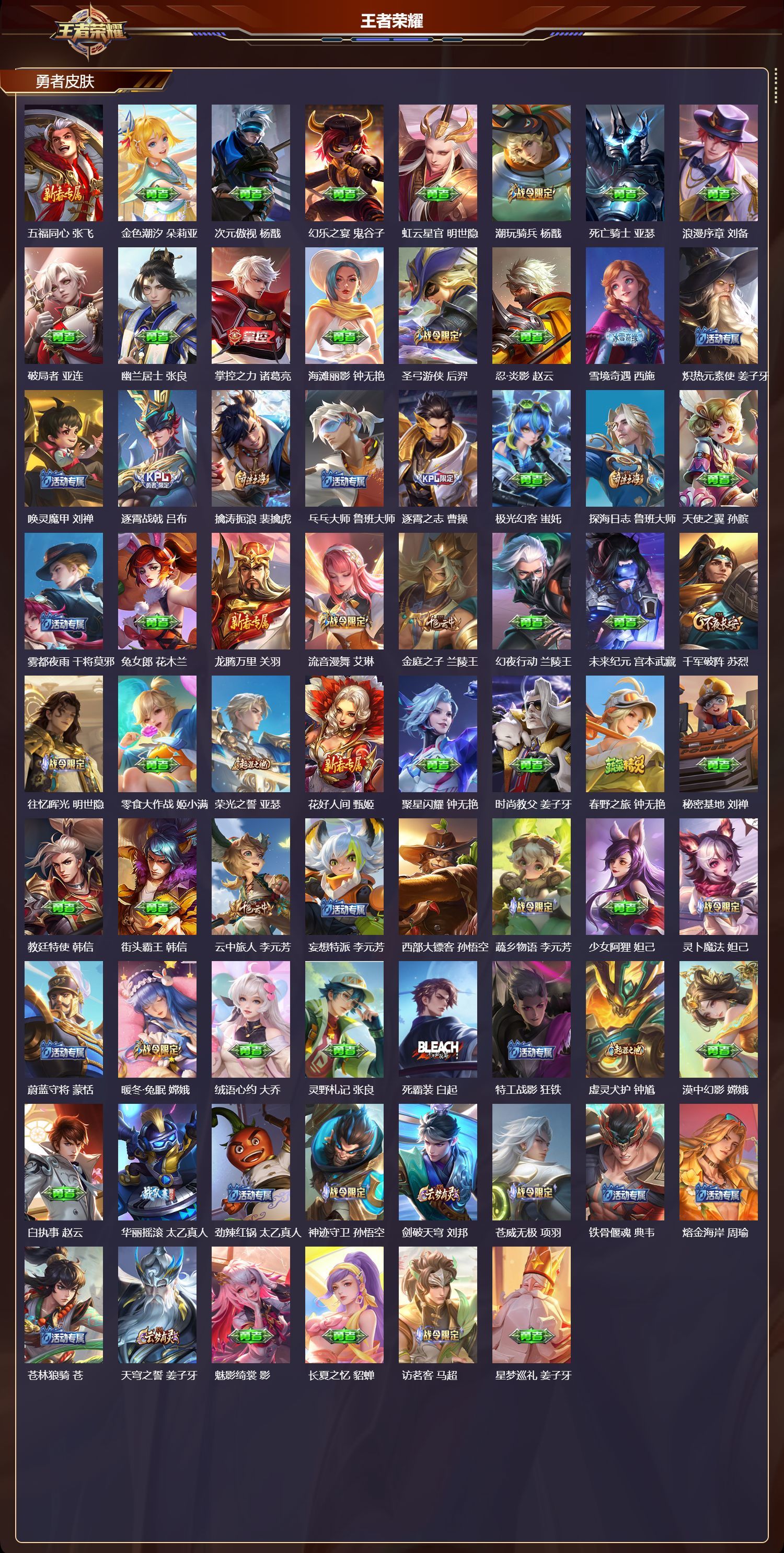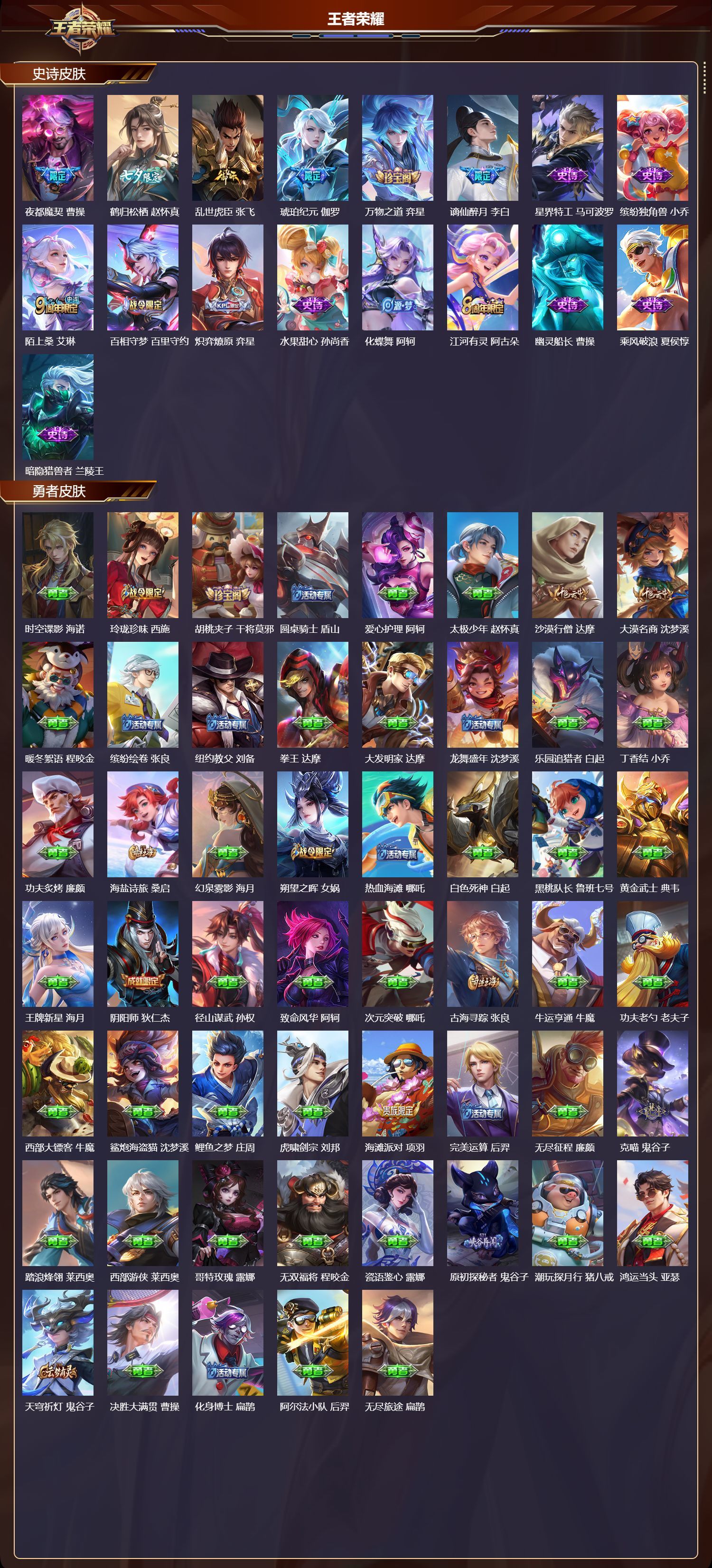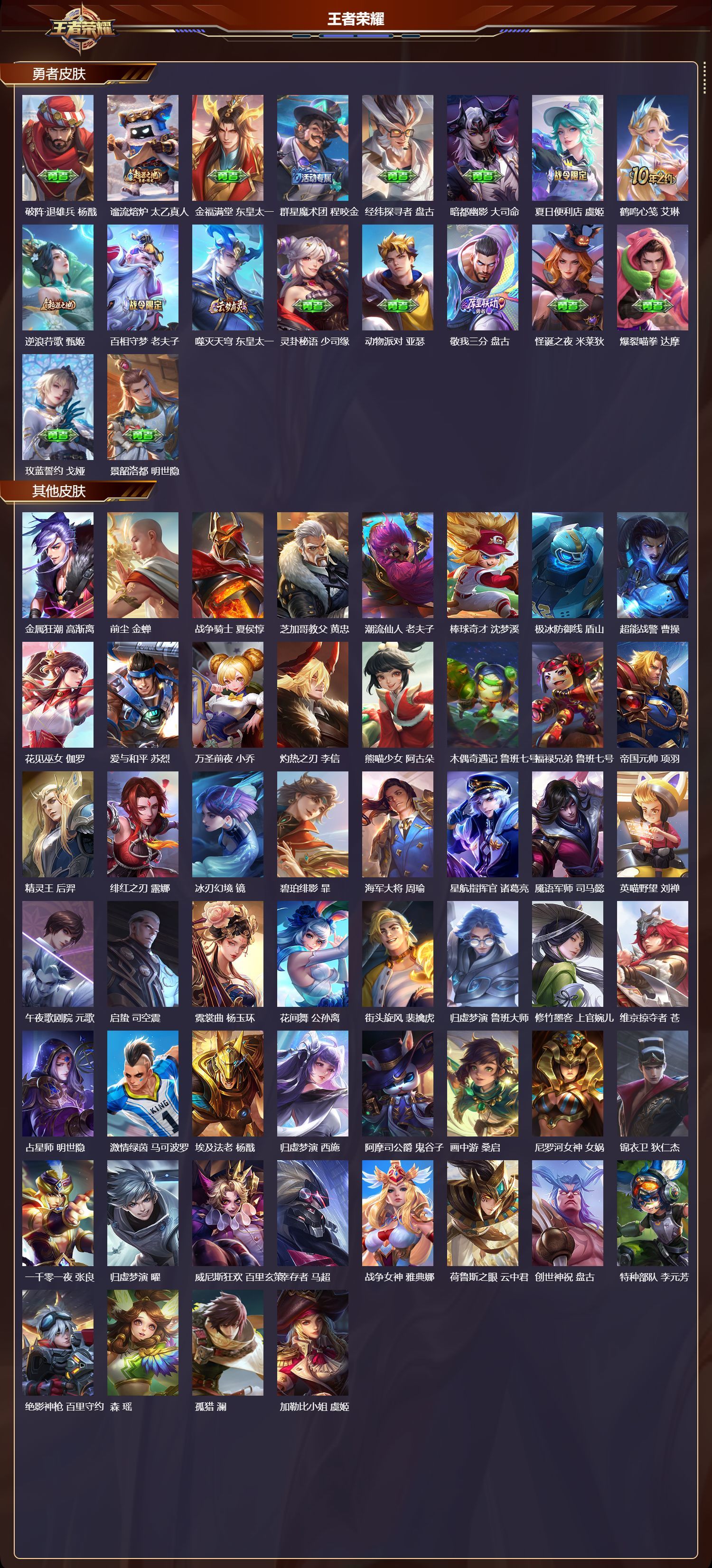 安卓QQ/至尊星耀/354皮肤/127英雄/2典藏/0珍品无双/1无双/3珍品传说/44传说/107