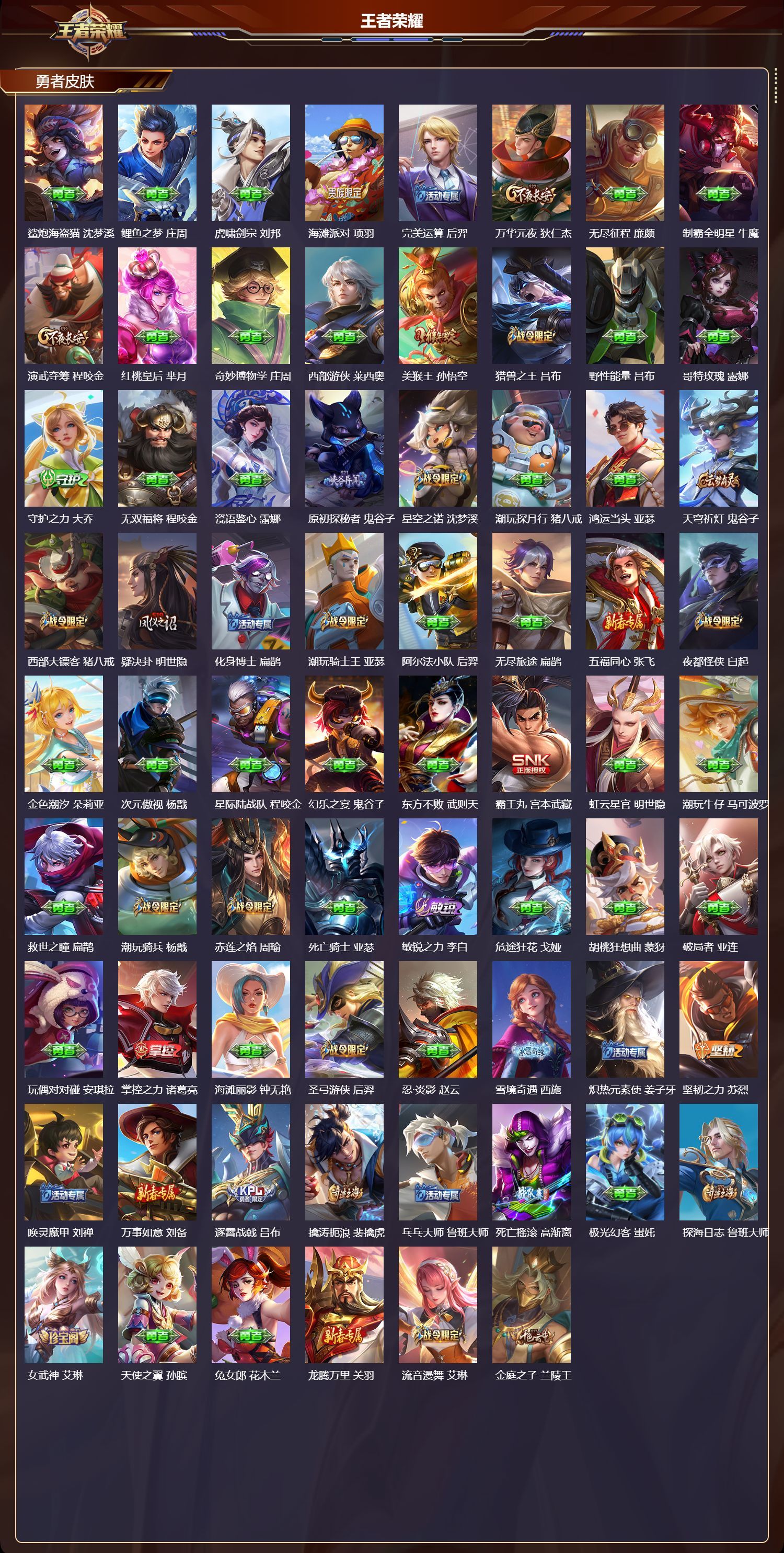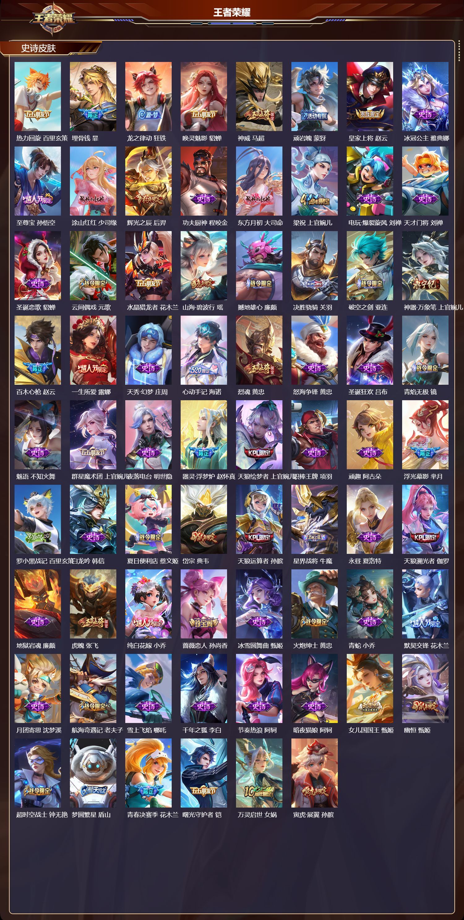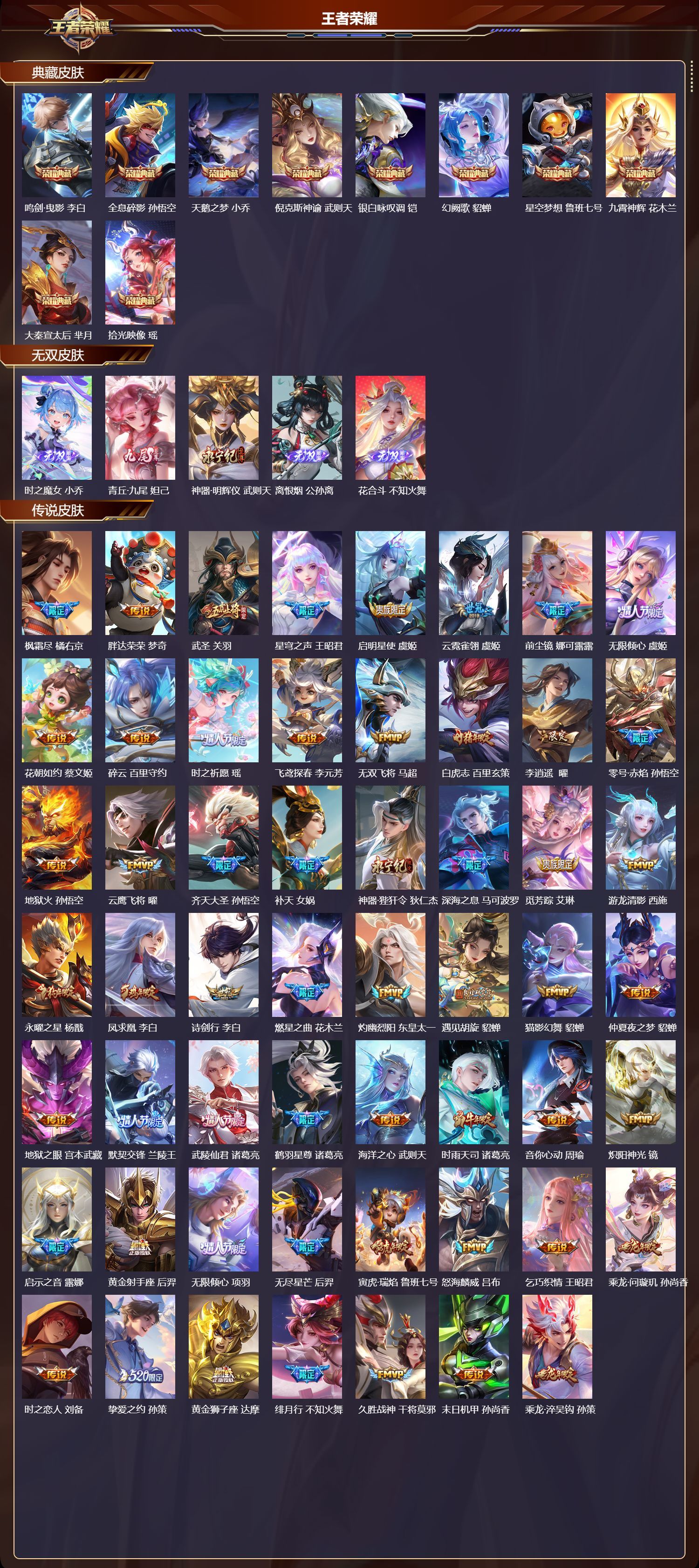 安卓QQ/荣耀王者/561皮肤/128英雄/10典藏/0珍品无双/5无双/0珍品传说/88传说/20