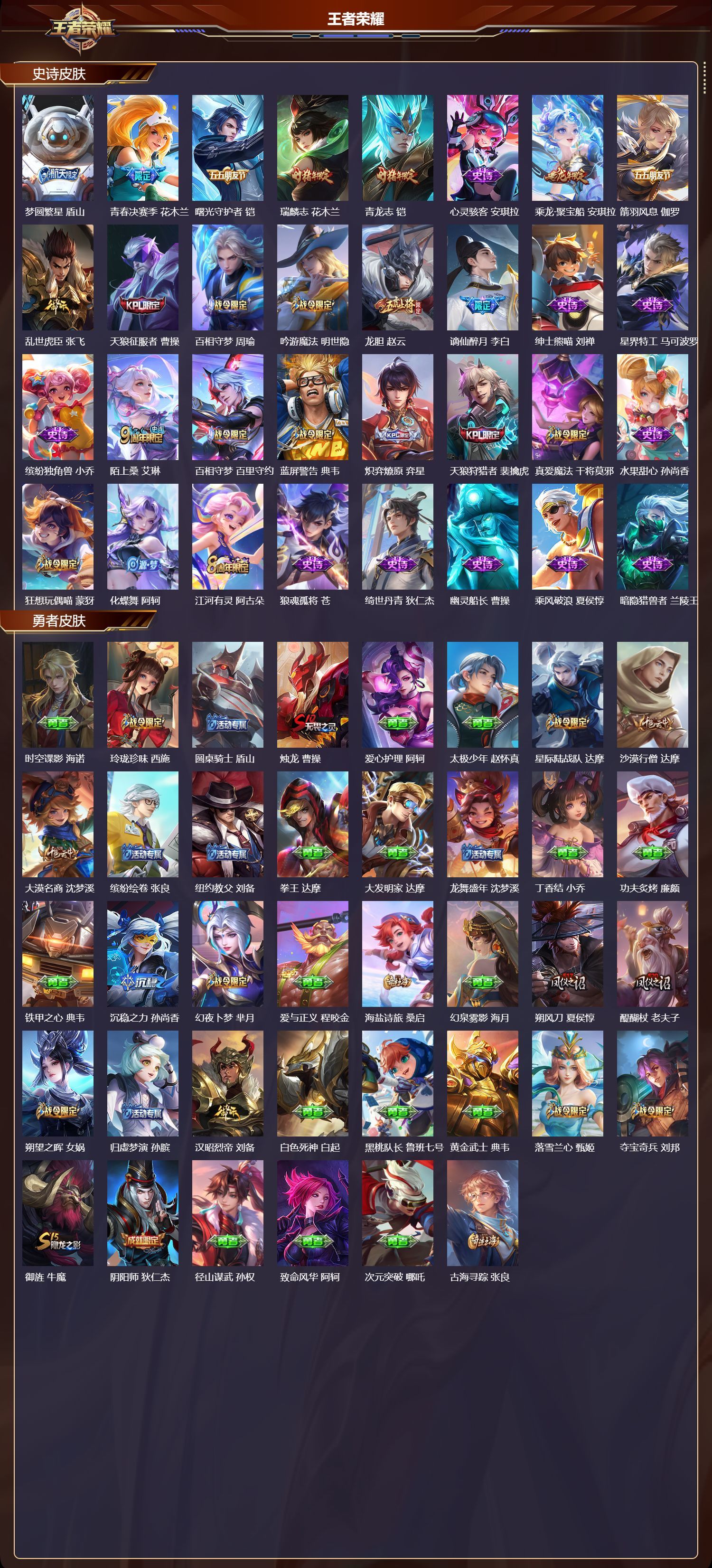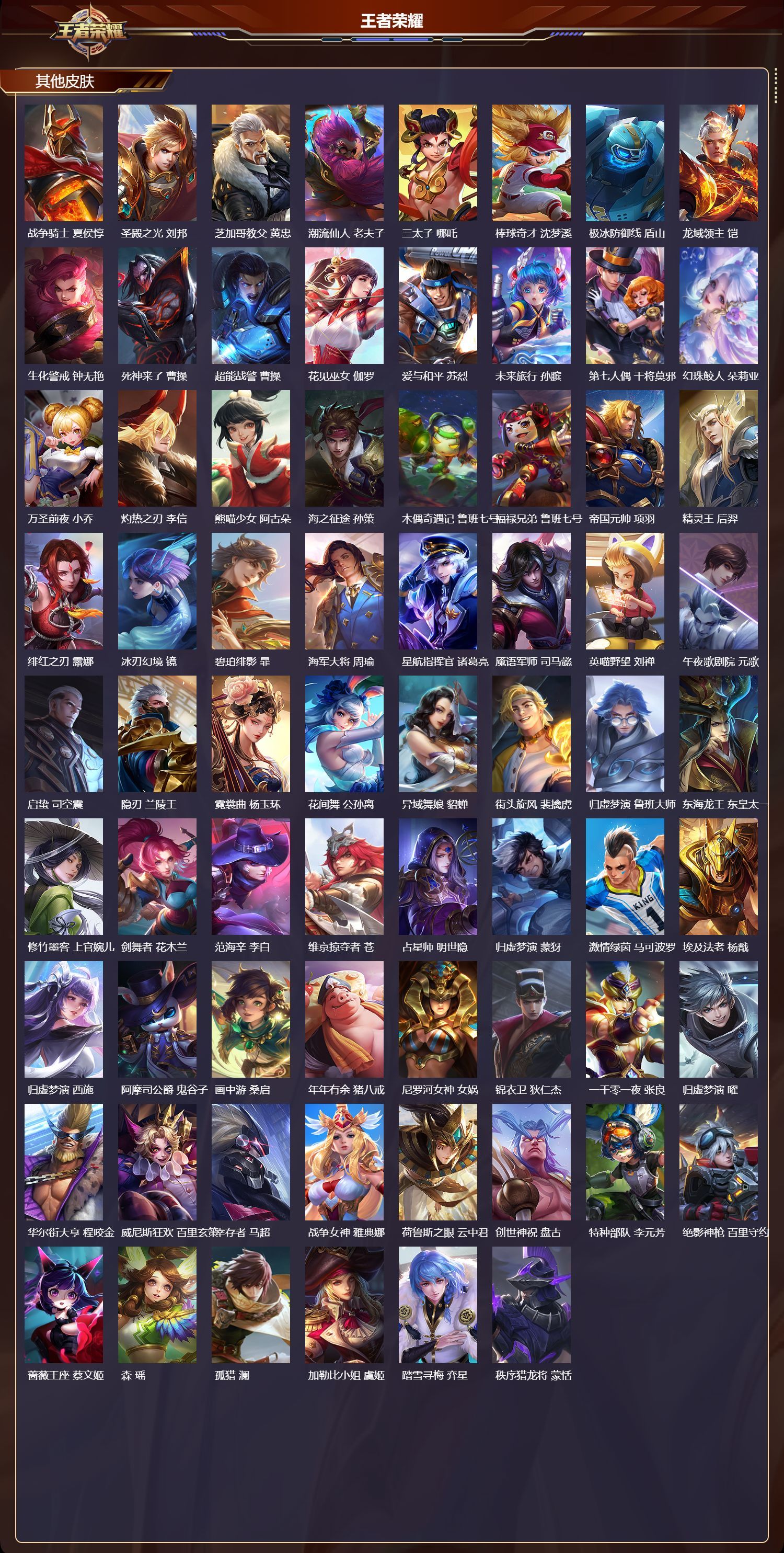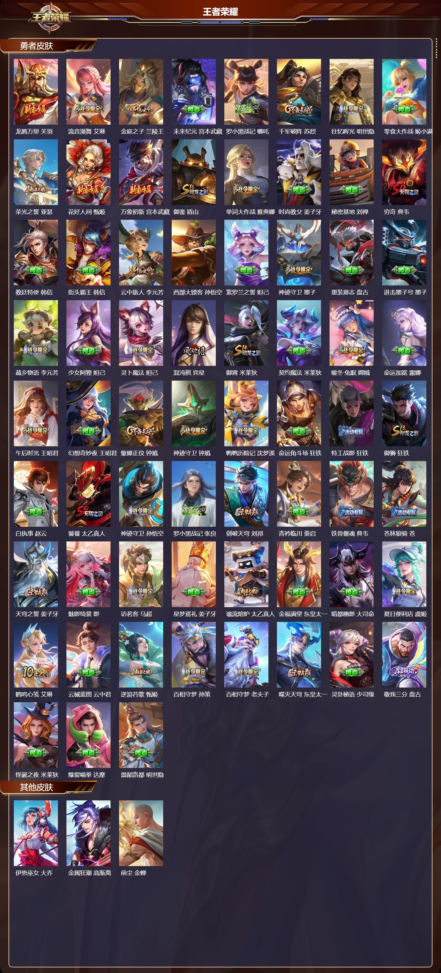 苹果QQ/荣耀王者/497皮肤/128英雄/3典藏/0珍品无双/3无双/1珍品传说/60传说/175