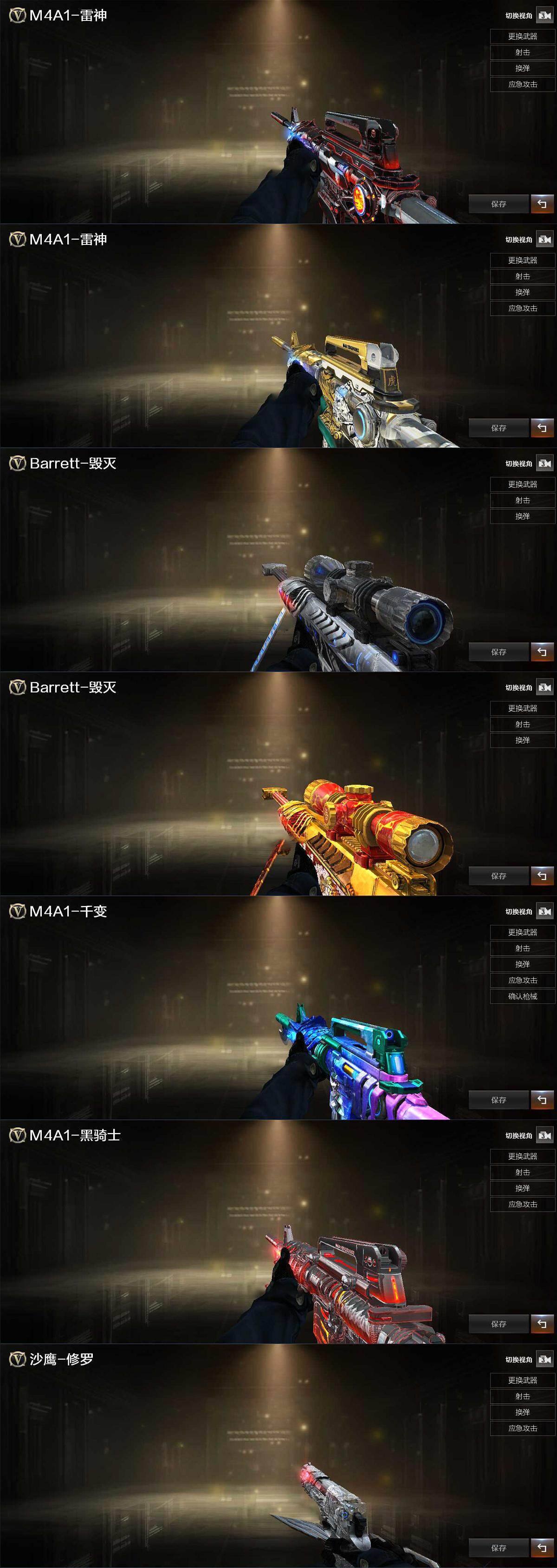 【皮肤】:雷神-暗月,雷神-虎将,毁灭-星空,毁灭-黑大圣皮肤,M4A1-千变-孔明皮肤,黑骑士-暗月,修罗-星空