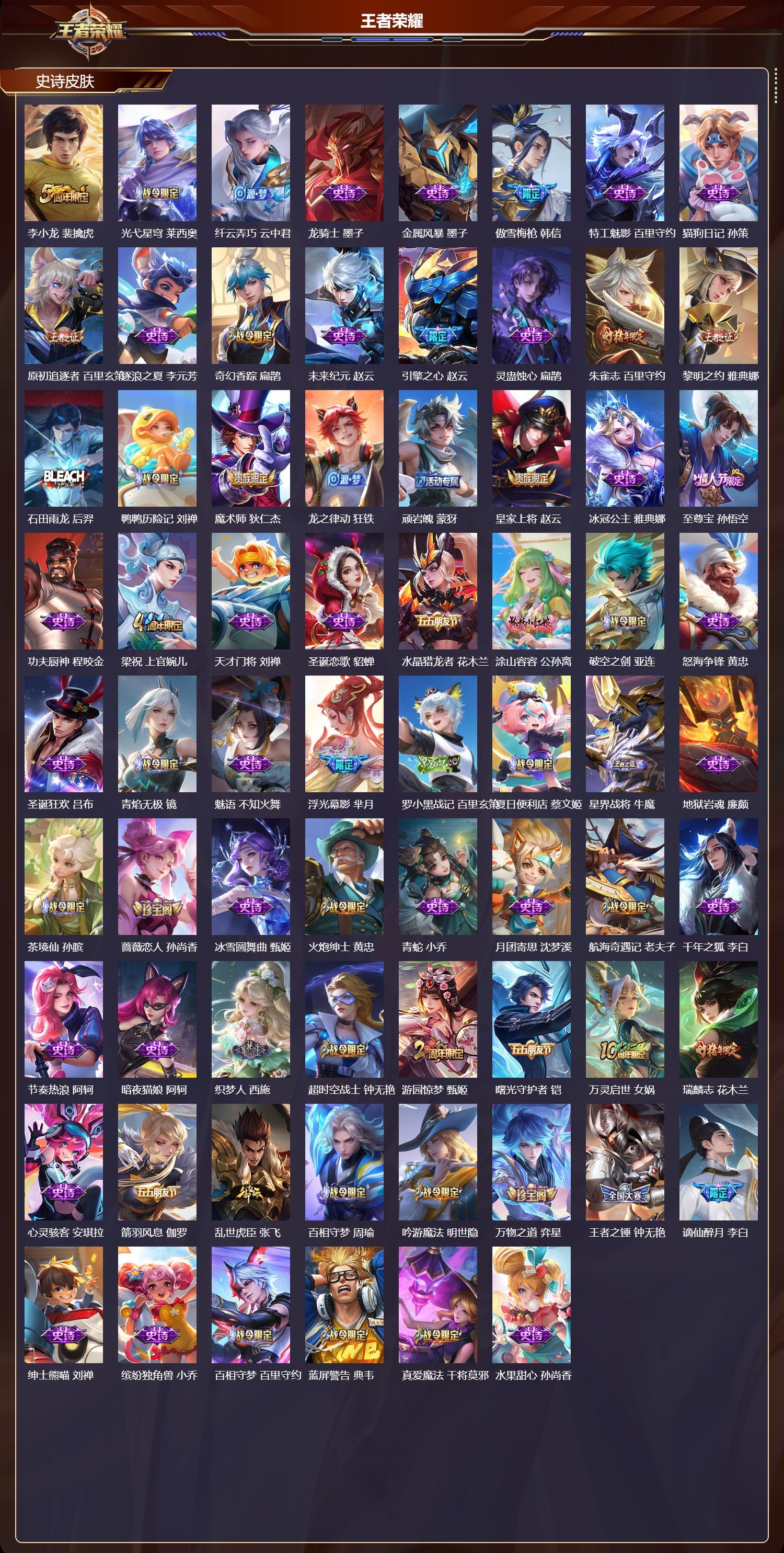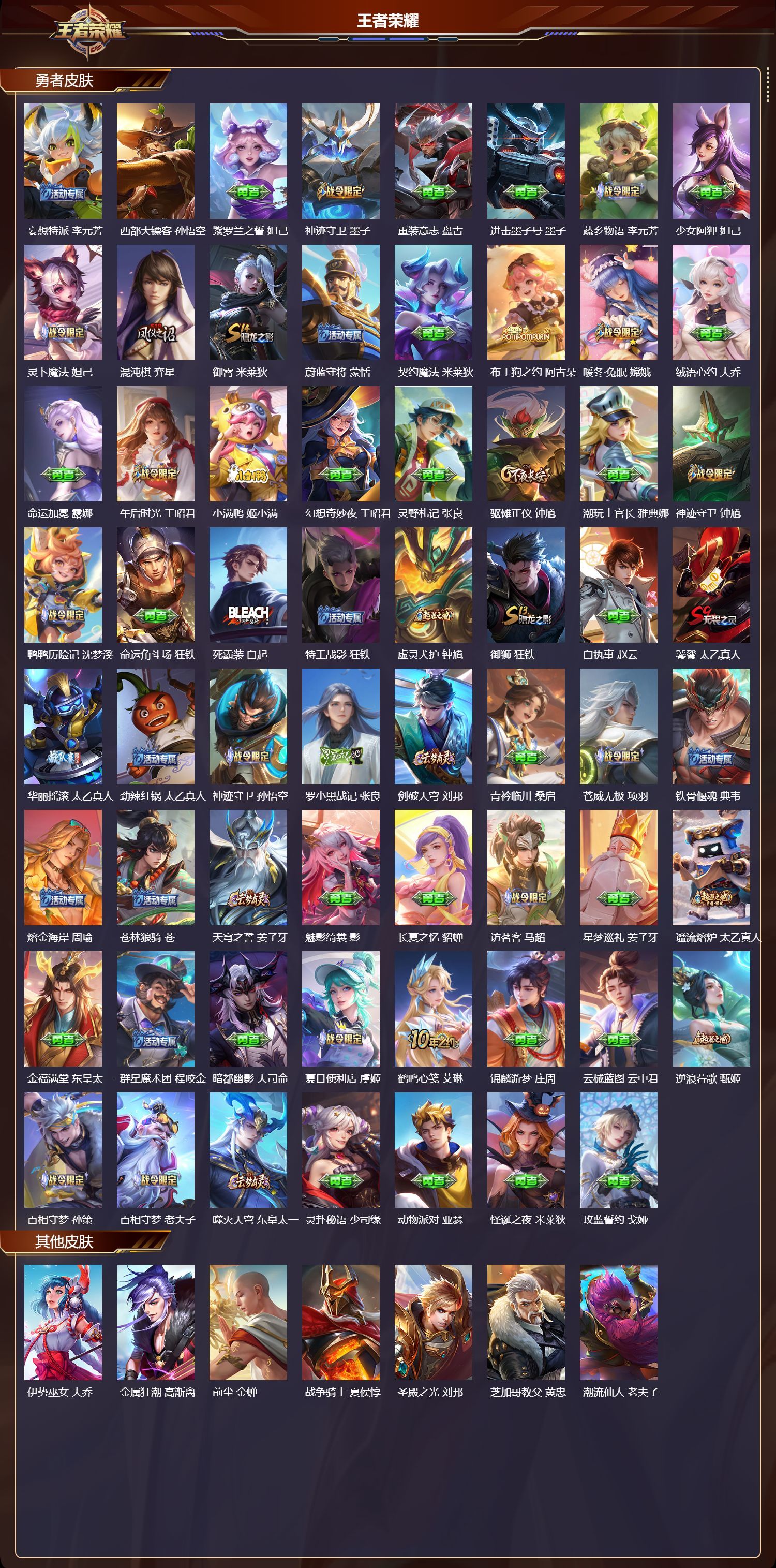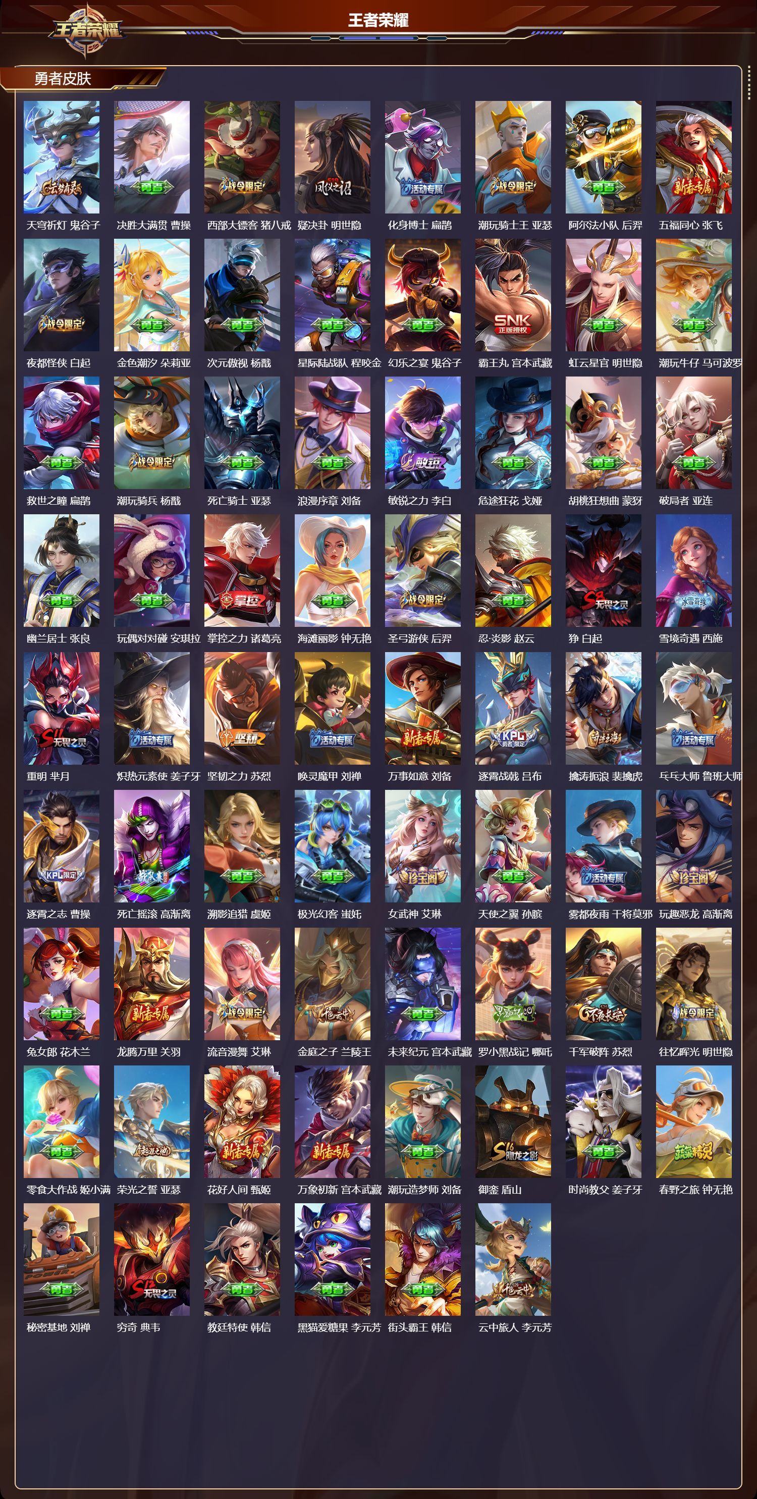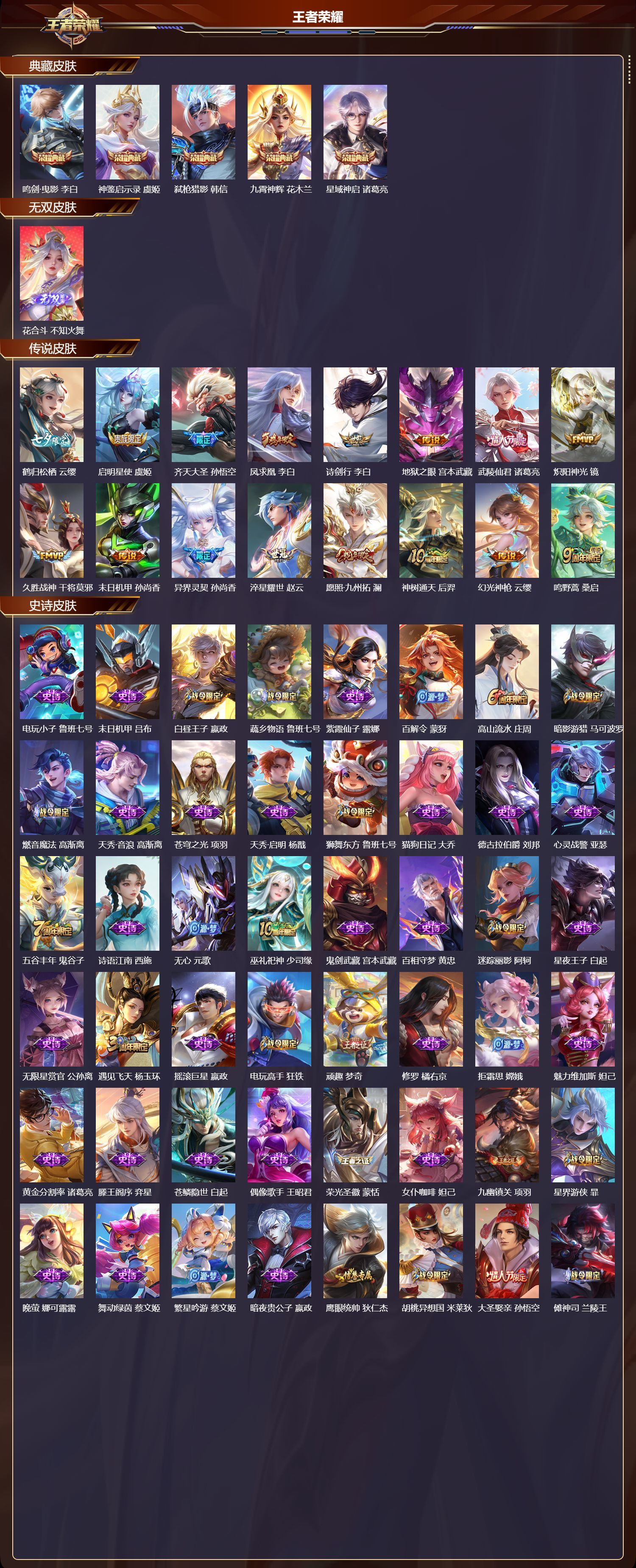安卓QQ/至尊星耀/423皮肤/128英雄/5典藏/0珍品无双/1无双/0珍品传说/16传说/123
