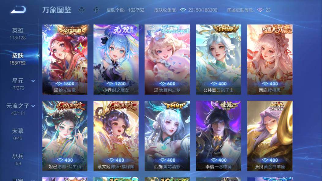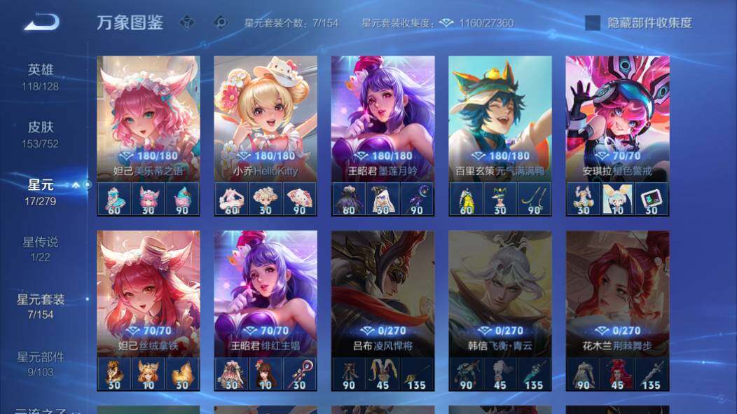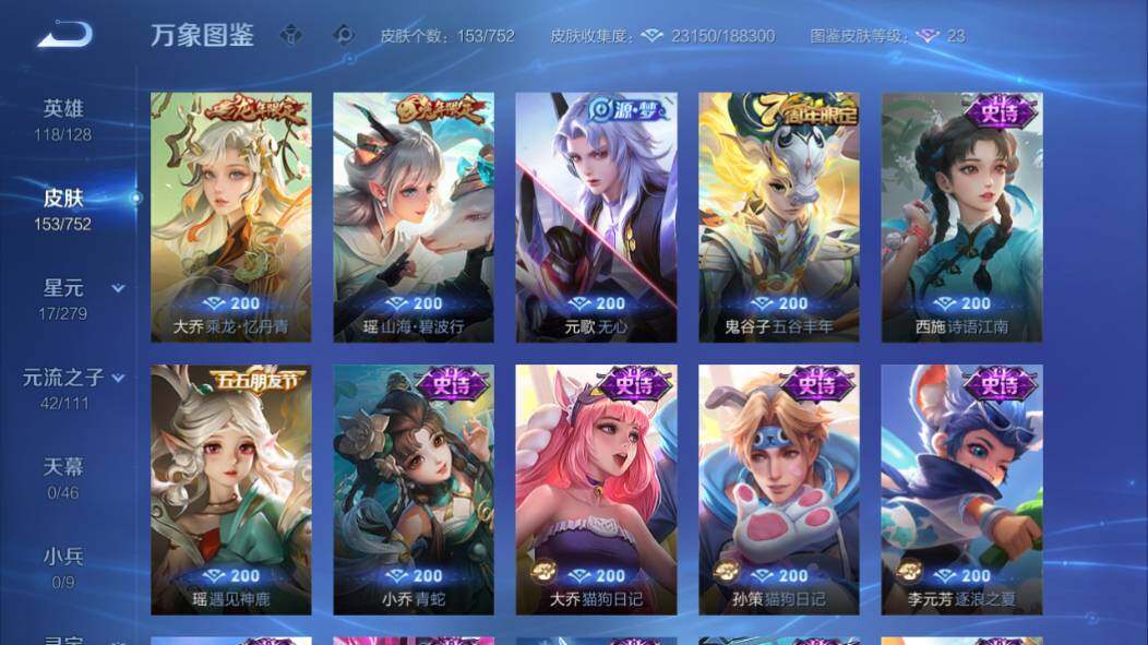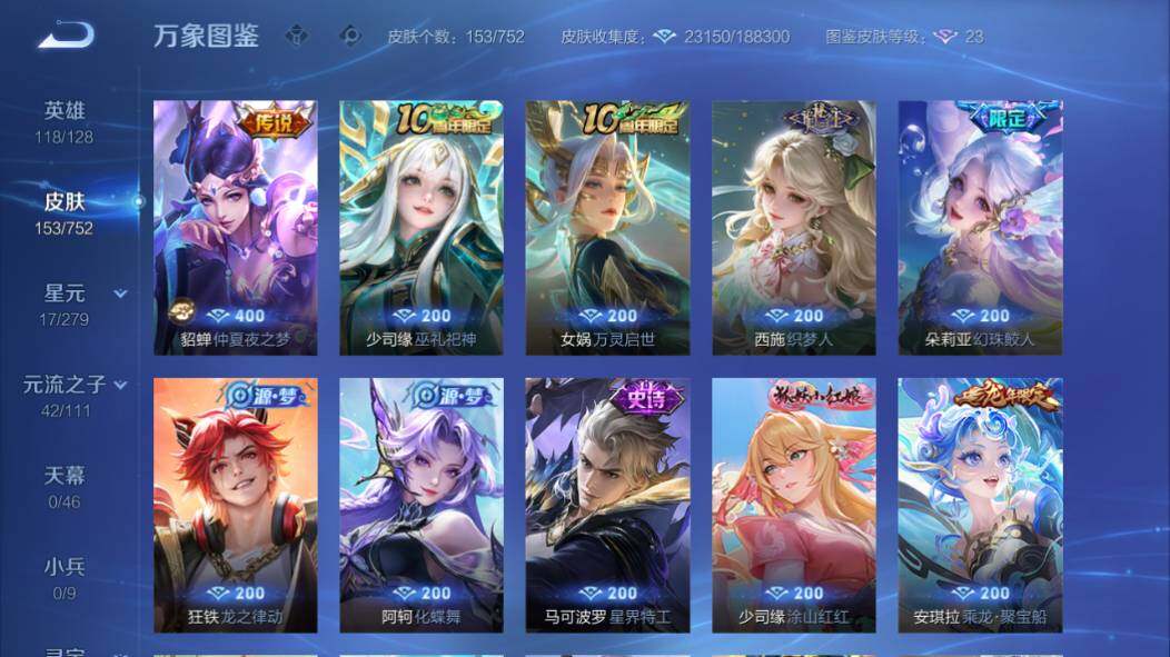 精品女号 安卓Q-V7-118英雄-153皮肤-1典藏皮肤-1无双-1珍品传说