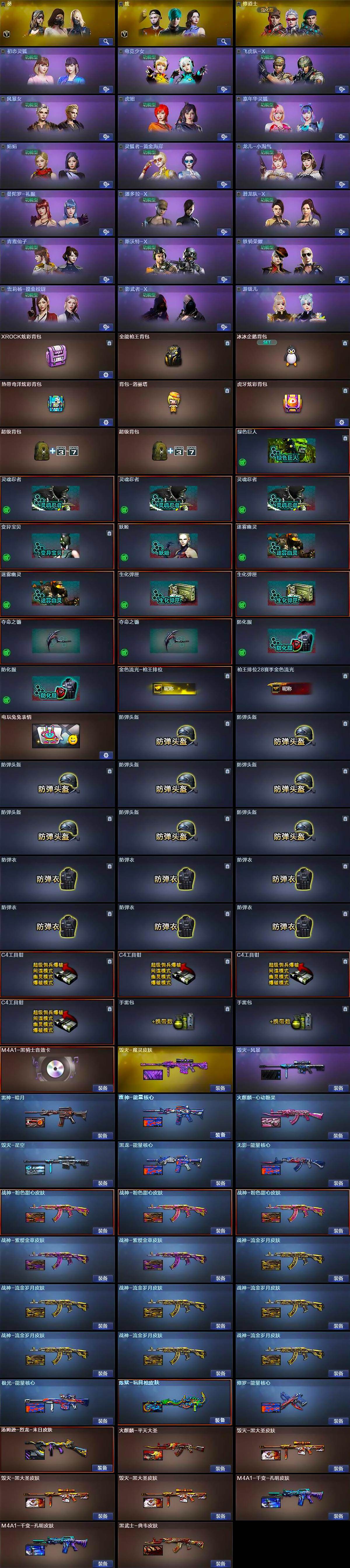 【热门武器】:QBZ03-金色蔷薇,死亡之眼*2,白虎-电玩蓝兔,Cat-刀锋,M4A1-黑骑士*2,汤姆逊-烈龙*6,RPK-盘龙*6,加特林-炼狱*2,斯泰尔-蝴蝶,羊驼玩偶,沙鹰-修罗*3