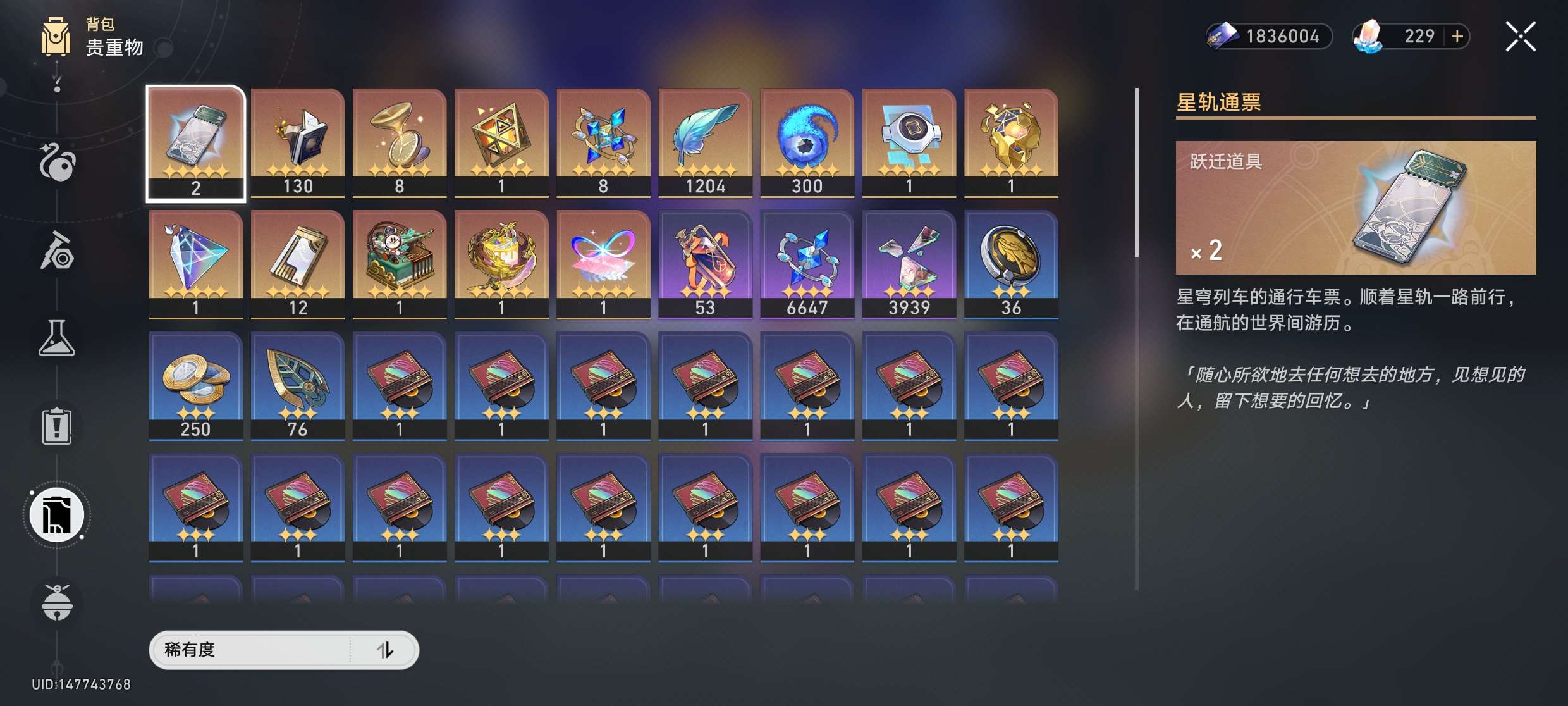 117黄,81角色黄,36光追黄,6命遐蝶、2命白厄、2命大黑塔、1命提宝,混沌虚构末日均可满星