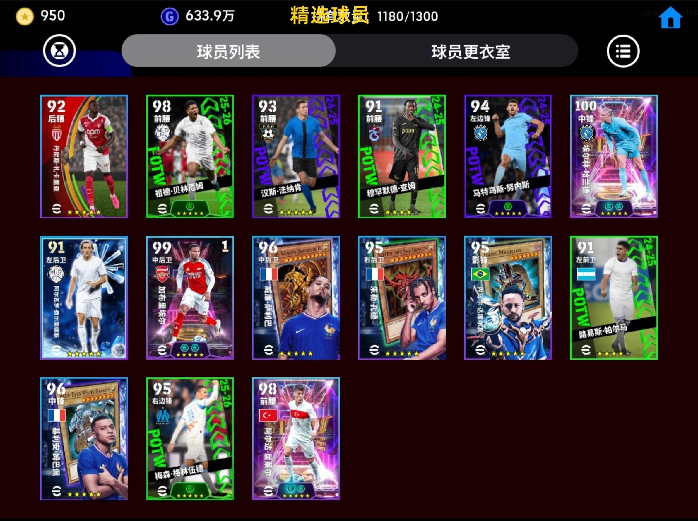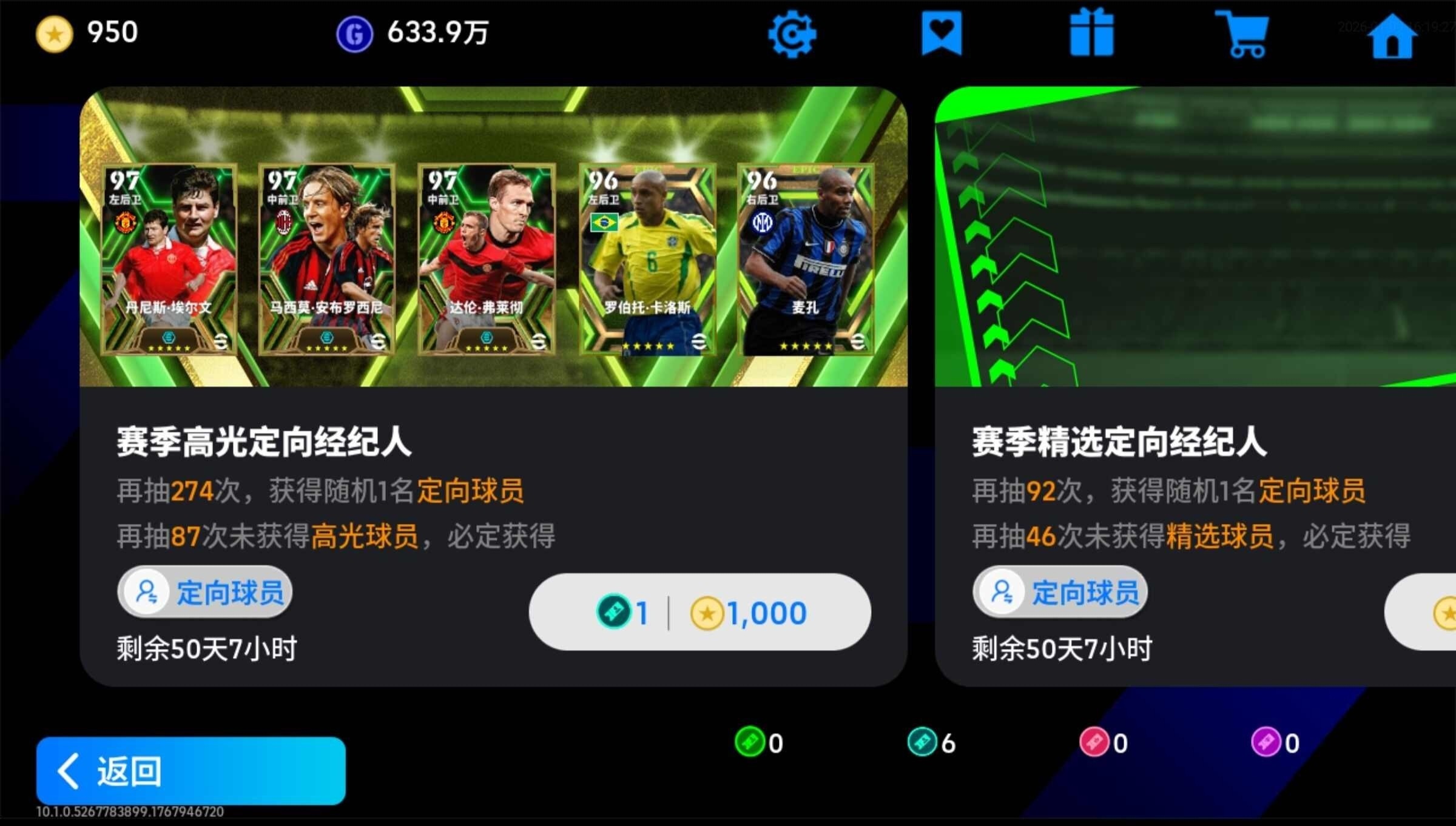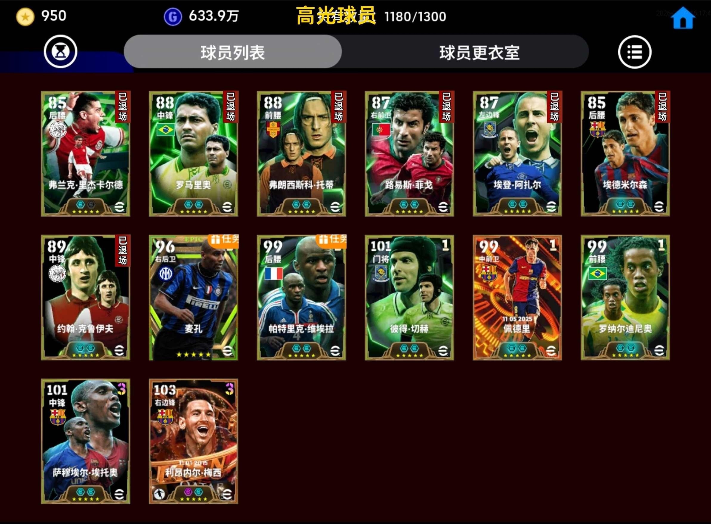 三闪金搓梅西,最强靠山维埃拉,双增埃托奥,切赫,巴西小罗,佩德里,克鲁伊夫,罗马里奥,托蒂,永久卡。