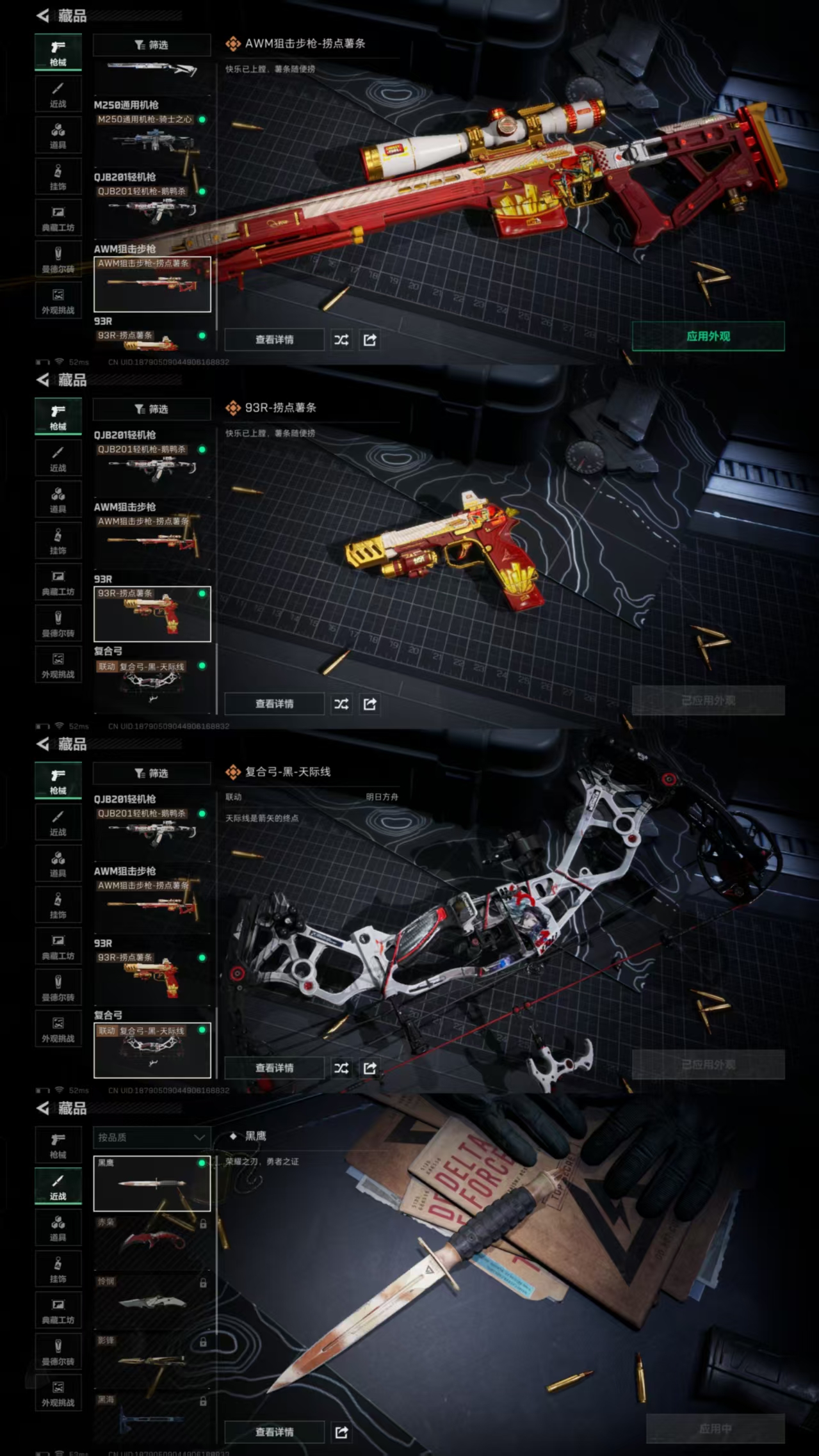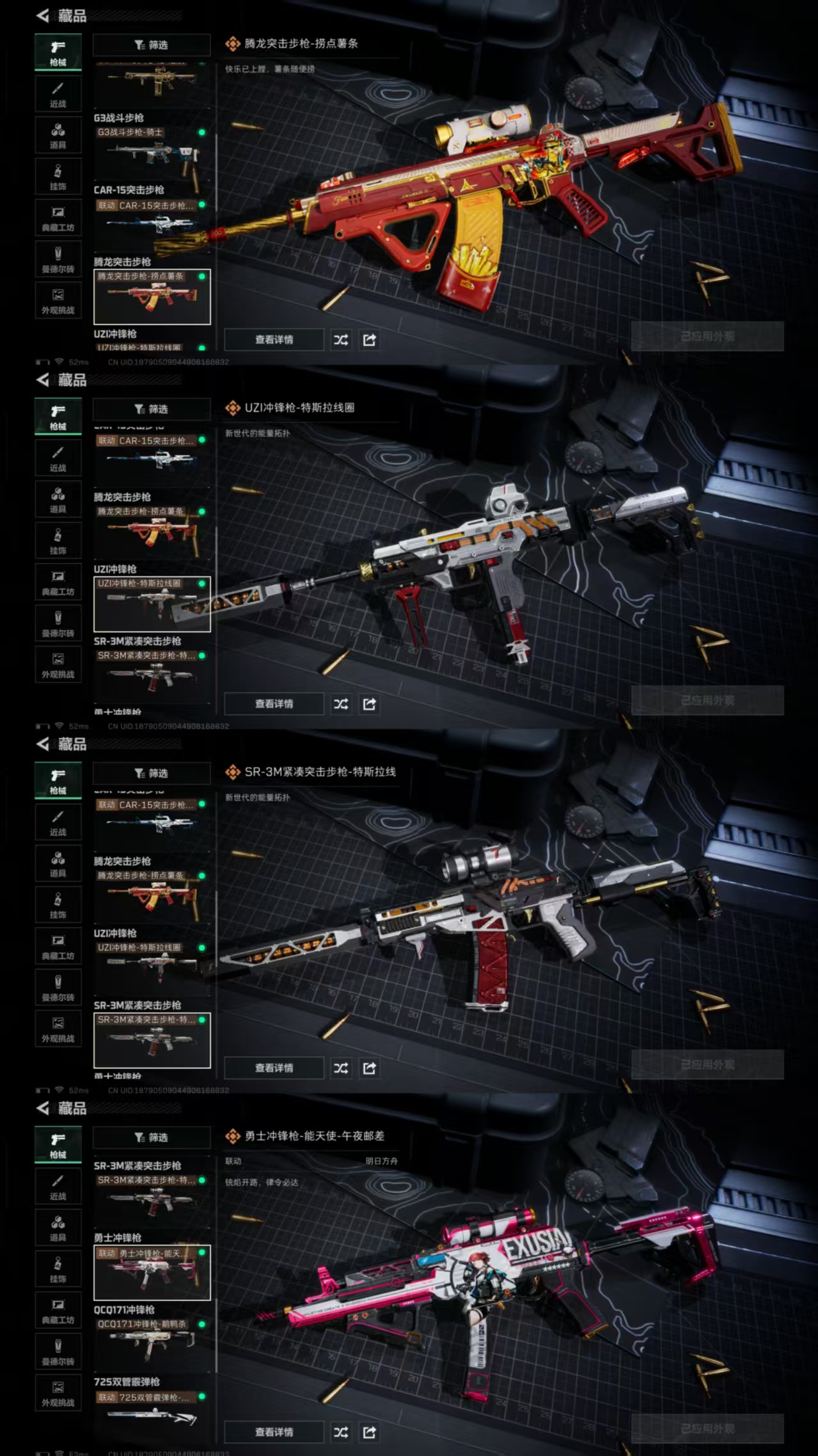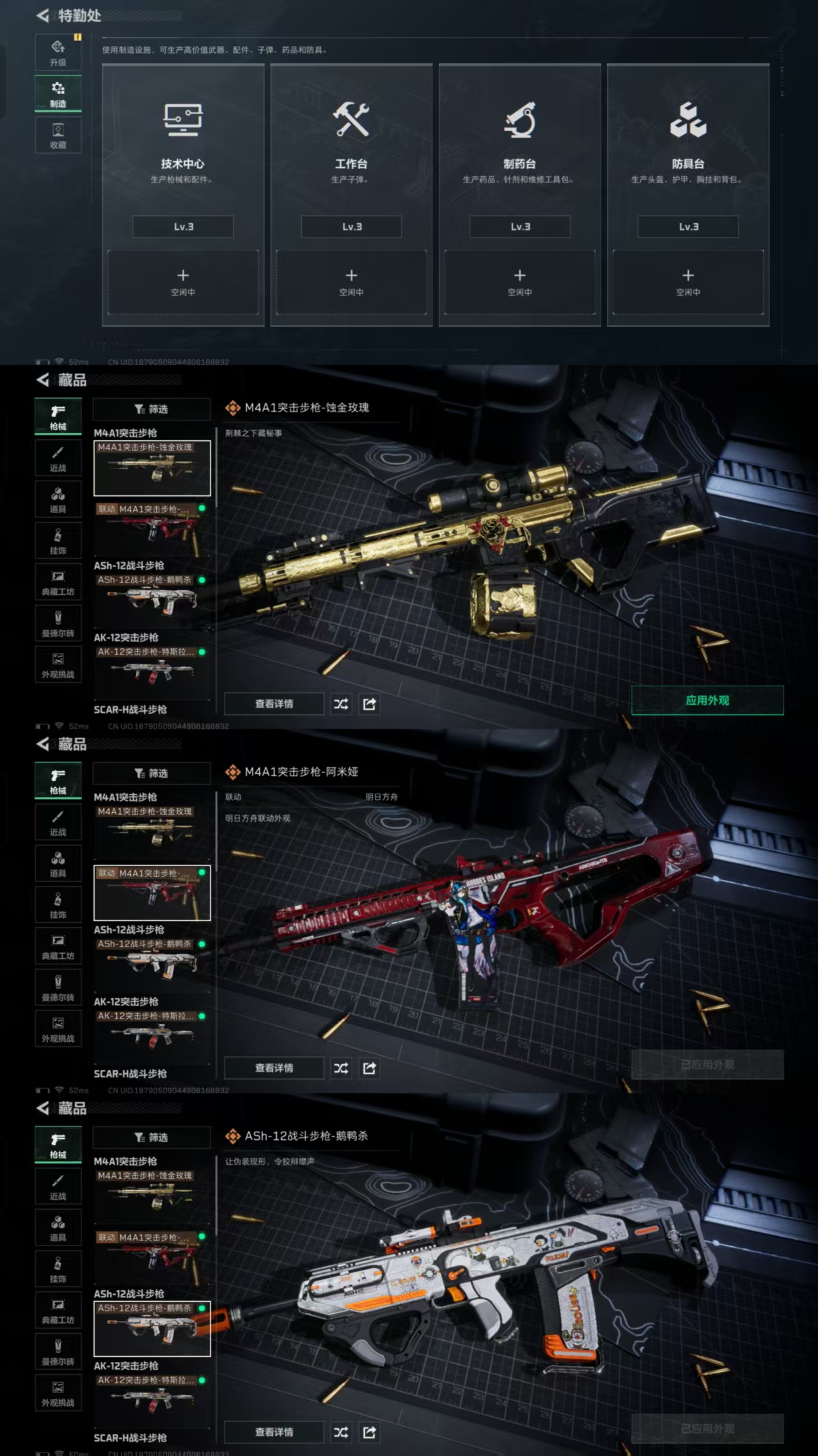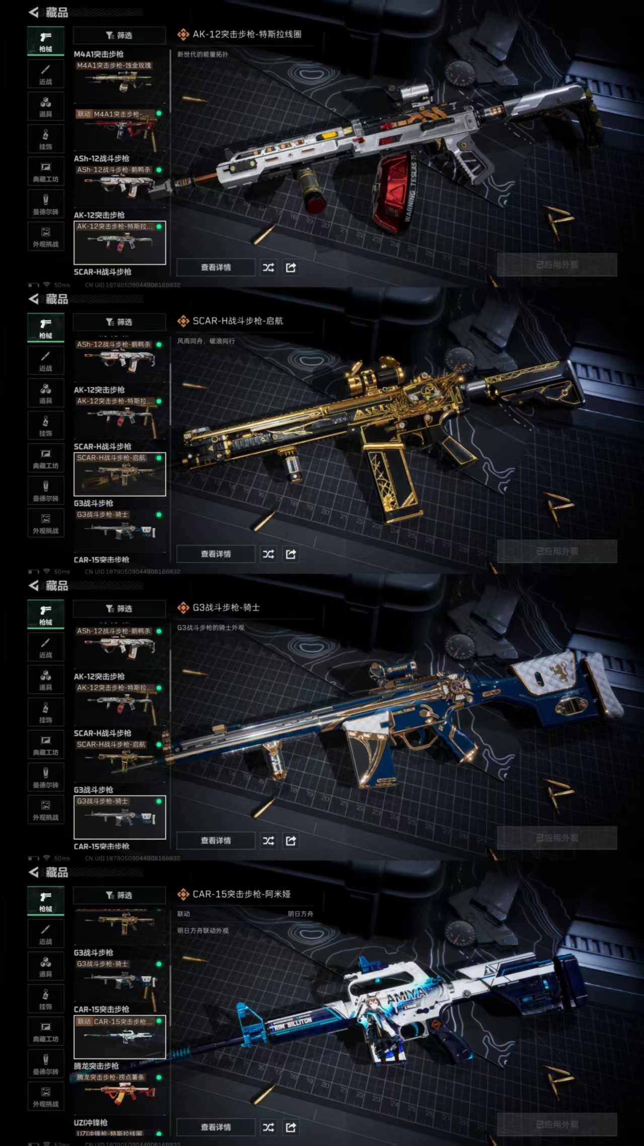 【枪皮】M4A1突击步枪-粉色涂装 M4A1突击步枪-高雅黑 M4A1突击步枪-海色 M4A1突击步枪-阿米娅 M4A1突击步枪-蚀金玫瑰 AKM突击步枪-彩墨喷涂 AKM突击步枪-战术演练 AKM突击步枪-肃杀 QBZ95-1突击步枪-高雅黑 QBZ95-1突击步枪-海浪 QBZ95-1突击步枪-海色 QBZ95-1突击步枪-公平竞技 ASh-12战斗步枪-无