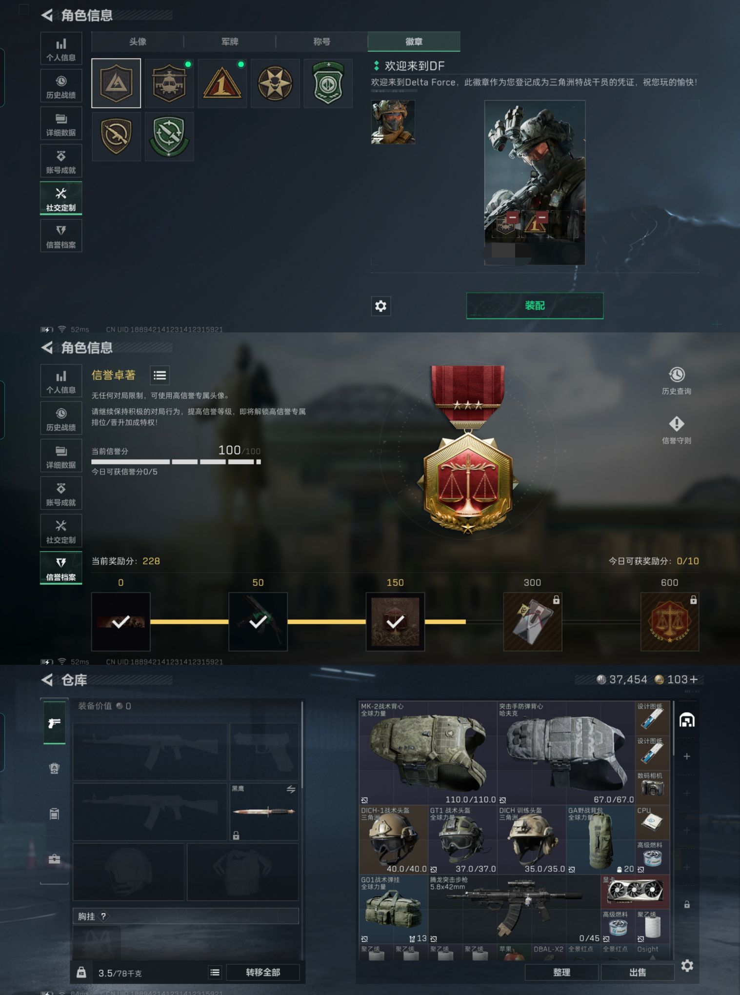 XXSJZ1643三段互通Q-仓库价值16M 哈夫币37454 -烽火地带等级60-烽火地带段位钻石