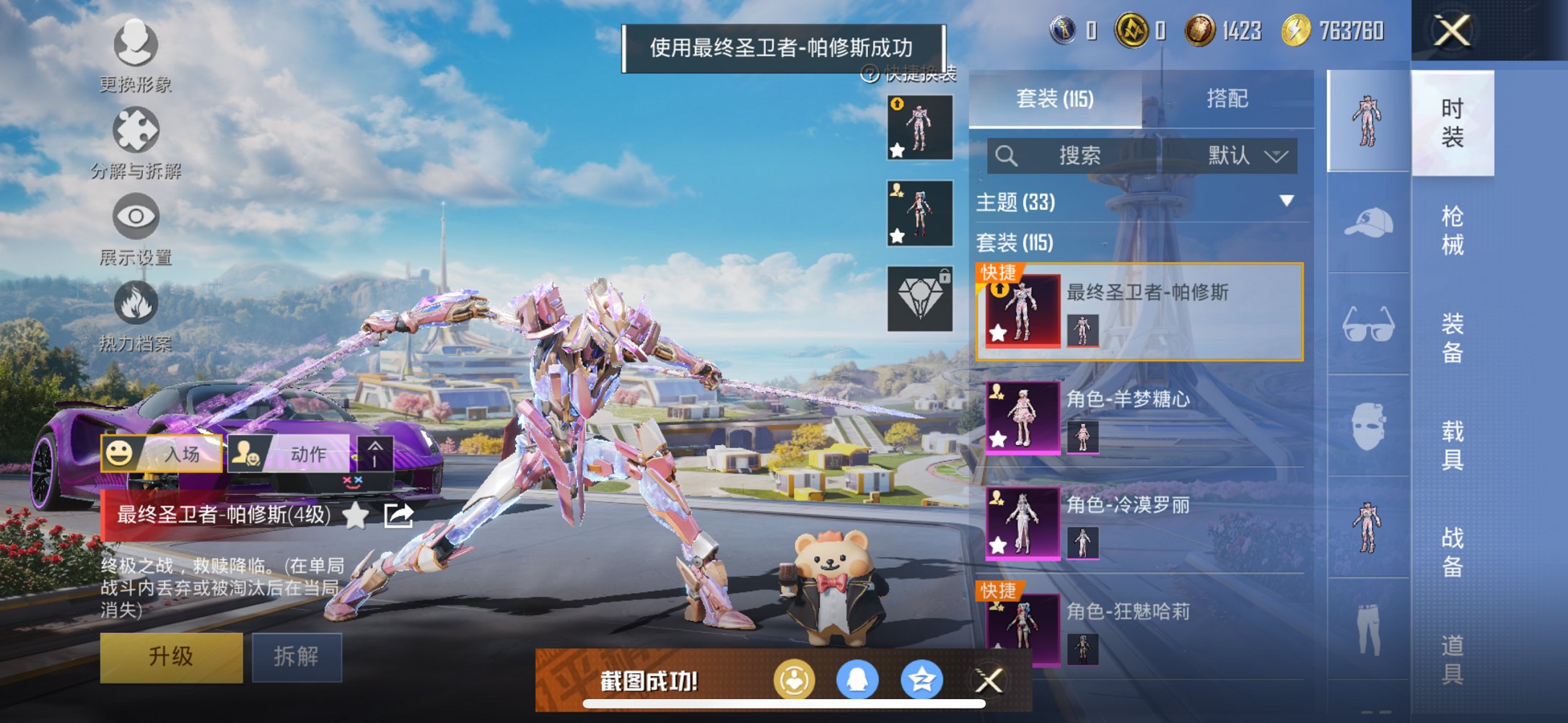 483-【4级红装小丑女1升级车6载具7特效枪6粉装素材号、秒换绑不用等】、苹果Q区-69043热力值-6印记-115套装-185枪皮、【1红装】、最终圣卫者-帕修斯(4级)【6载具】、路特斯EV紫色(1级)、兰博SUV黄色、焰龙咆哮、最终圣卫者摩托车、宝马M4(圣保罗黄)、冰绡玉鳞【1稀有】、奇异狩猎者【6粉装】、狂魅哈莉(小丑女)、梦幻火箭、洛天依、银龙傲海、角色-冷漠罗丽、角色-羊梦糖心【7特效枪】、Vector-最终圣卫者(3级)、MG3-辉羽雀灵(3级)、M416-心之恋语(5级)、S