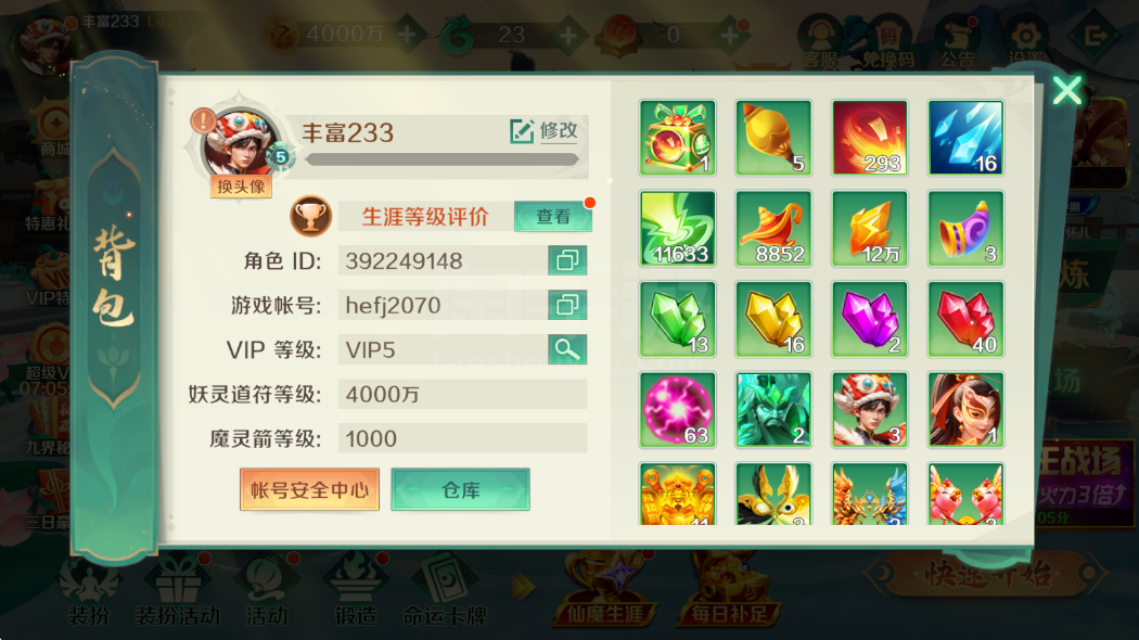 v5 4000万炮 2亿 带关羽 漏出一台
