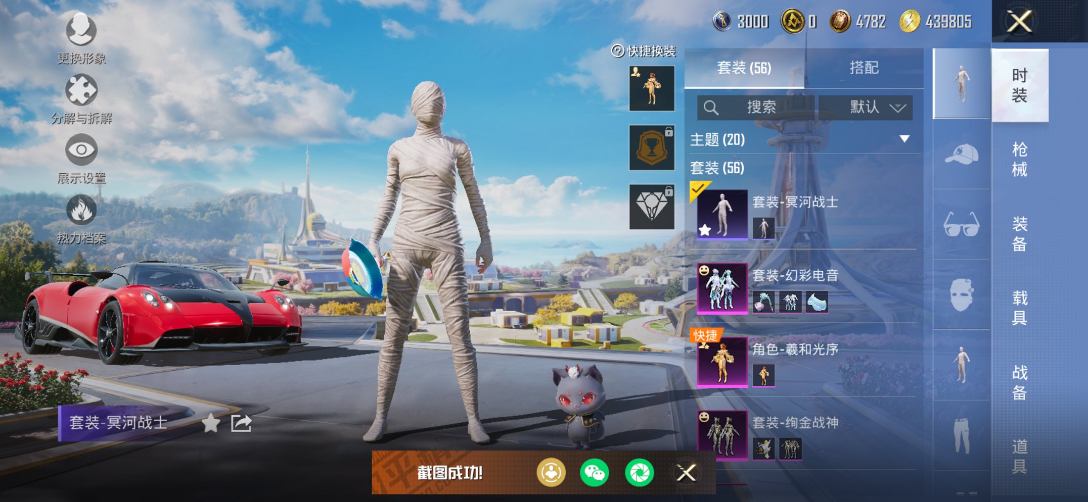 756-【木乃伊绚金战神M4风花雪月6粉装2特效枪1载具身法素材号、V社交、游戏正常】、苹果V区-22417热力值-5印记-56套装-70枪皮、【1载具】、帕加尼imola(光影红)【1稀有】、木乃伊【6粉装】、缤纷油彩(猪脸妹)、绚金战神、金属狂野、放客神游、幻彩电音、角色-羲和光序【2特效枪】、M416-风花雪月(5级)、Kar98K-巳巳如意(5级)【21热门】、浪漫天命、梦魇先生、金羽特工、暗影哥特(红眼罩)、白色伏地魔、SS26特训、SS24特训、Mk47-乌木金纹、UMP45-蓝色火