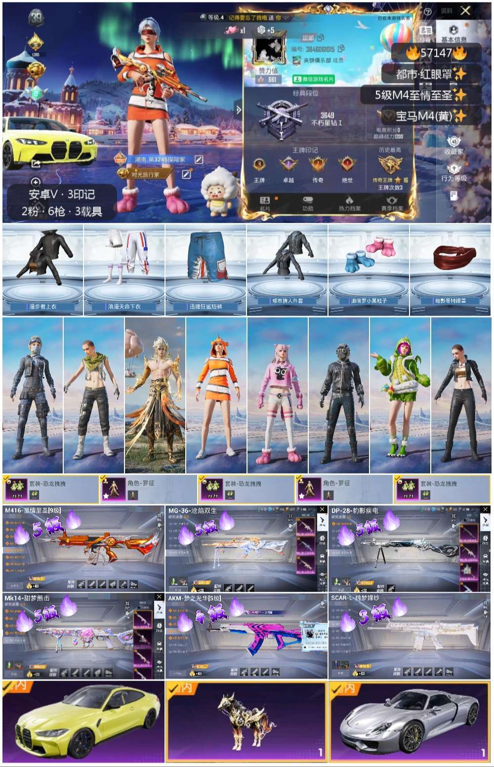 hs57147安卓微-3王牌印记-2粉装-7特效枪-3载具-27769热力值-49套装-85枪皮-