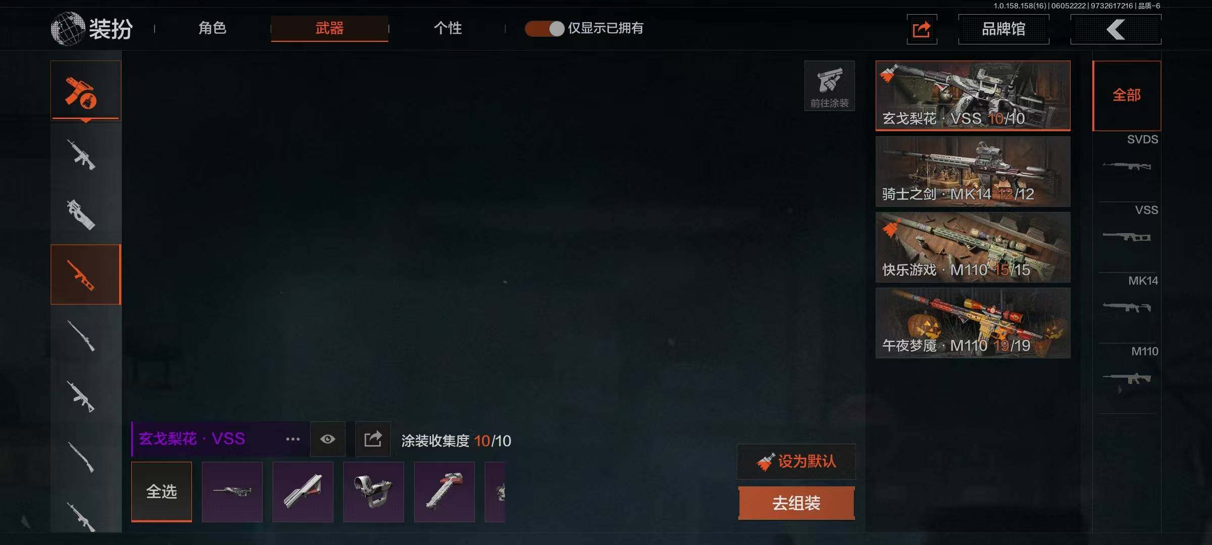 【紫色枪皮】:白貂·F57,玄戈梨花·VSS,玄戈梨花·MPX,来战·AKM