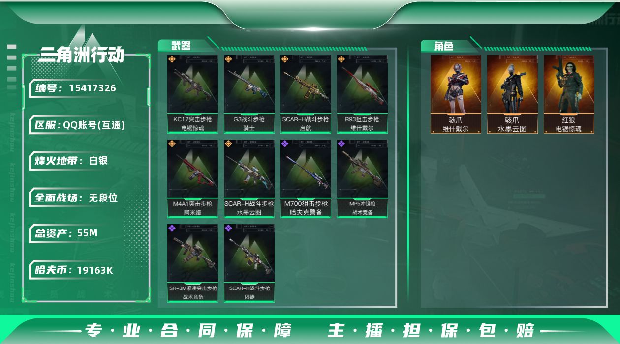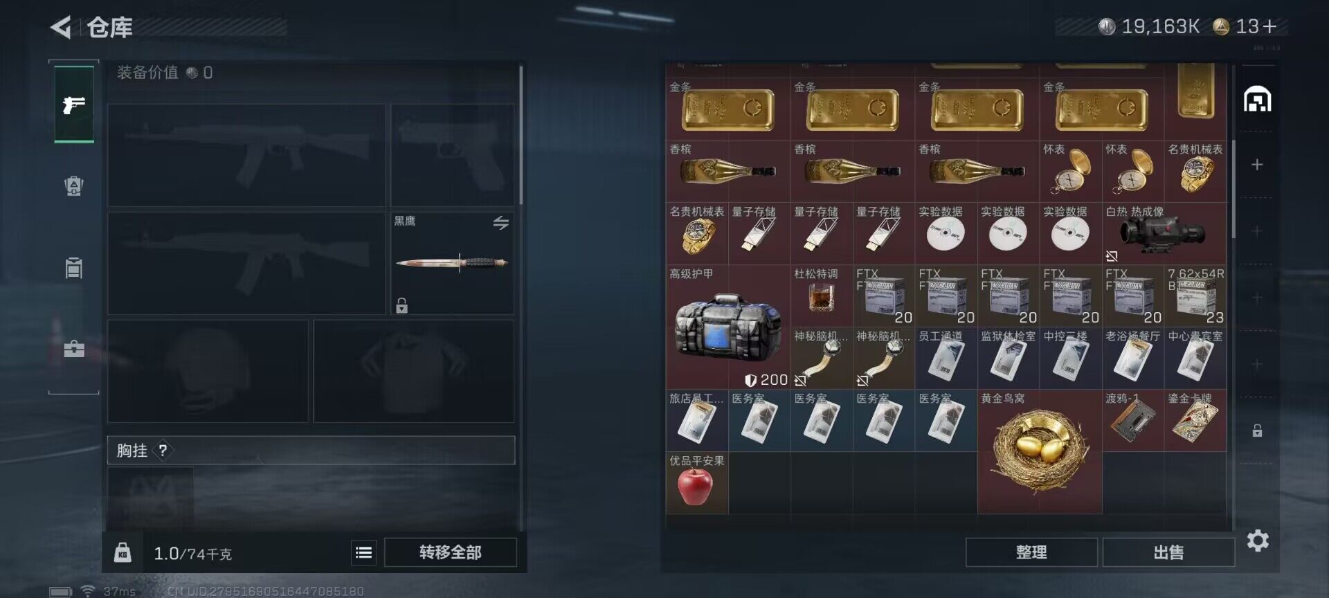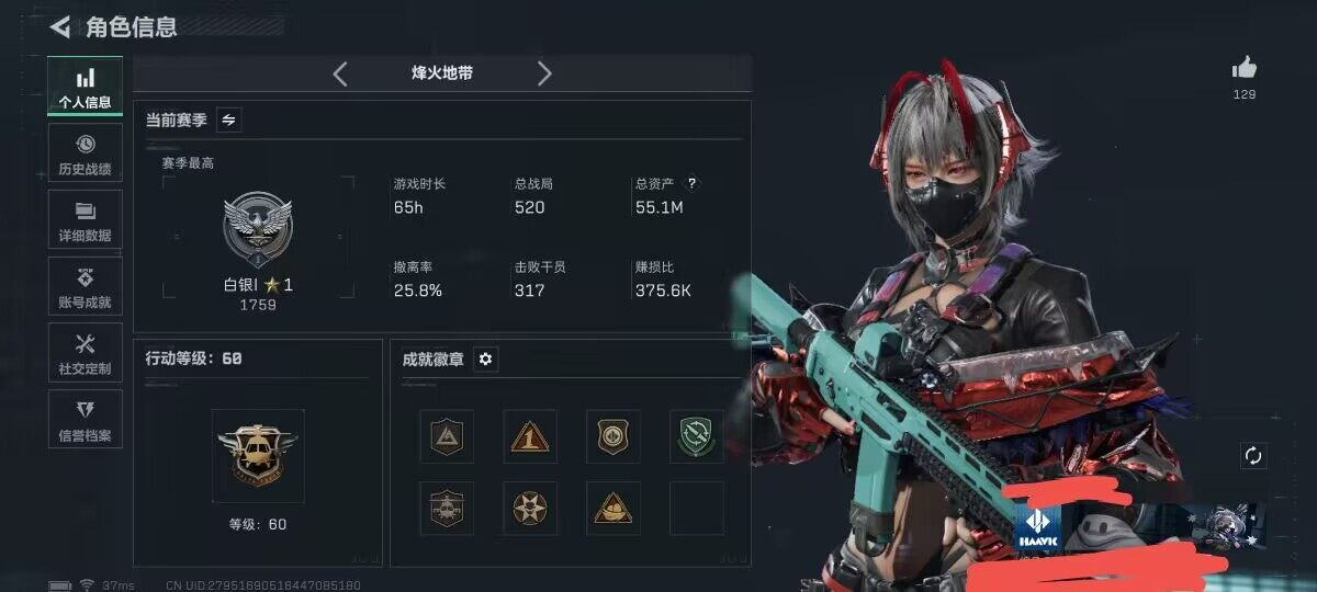总资产(M):55M/哈夫币(K):19163K/哈夫币(K):19163K/全面战场等级:4_段位